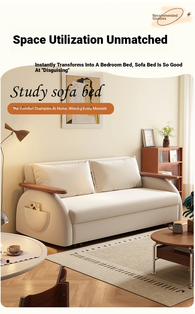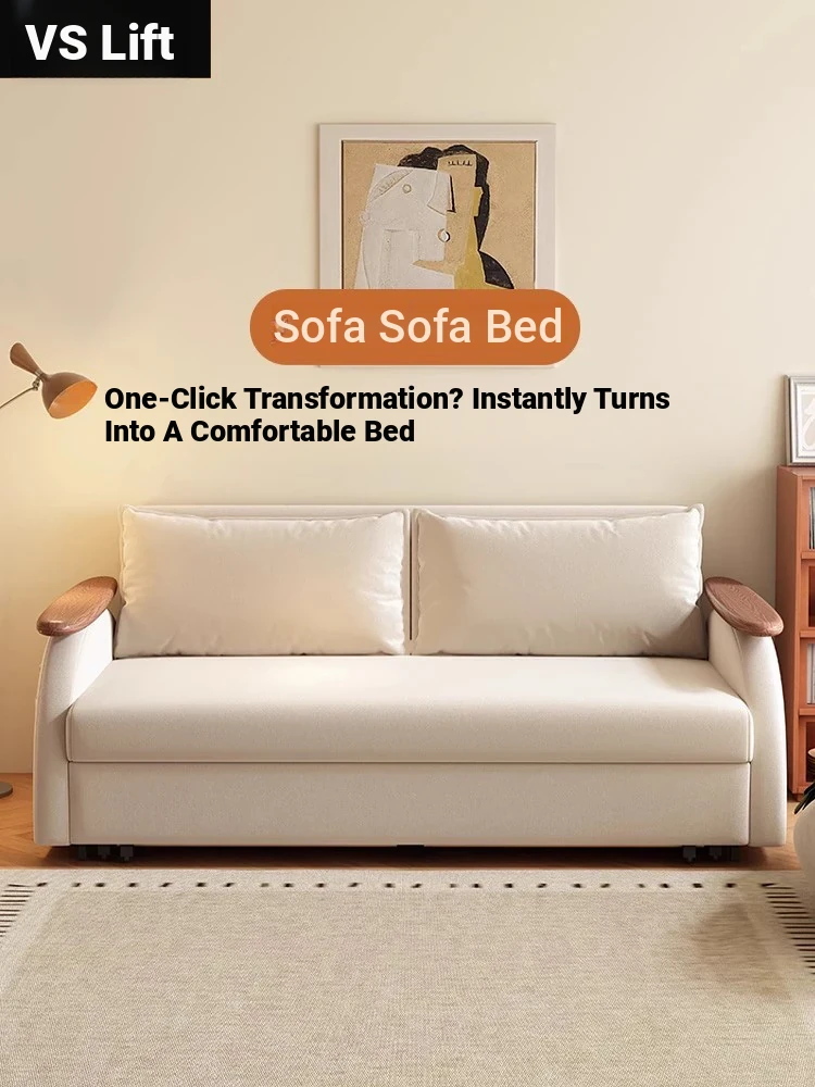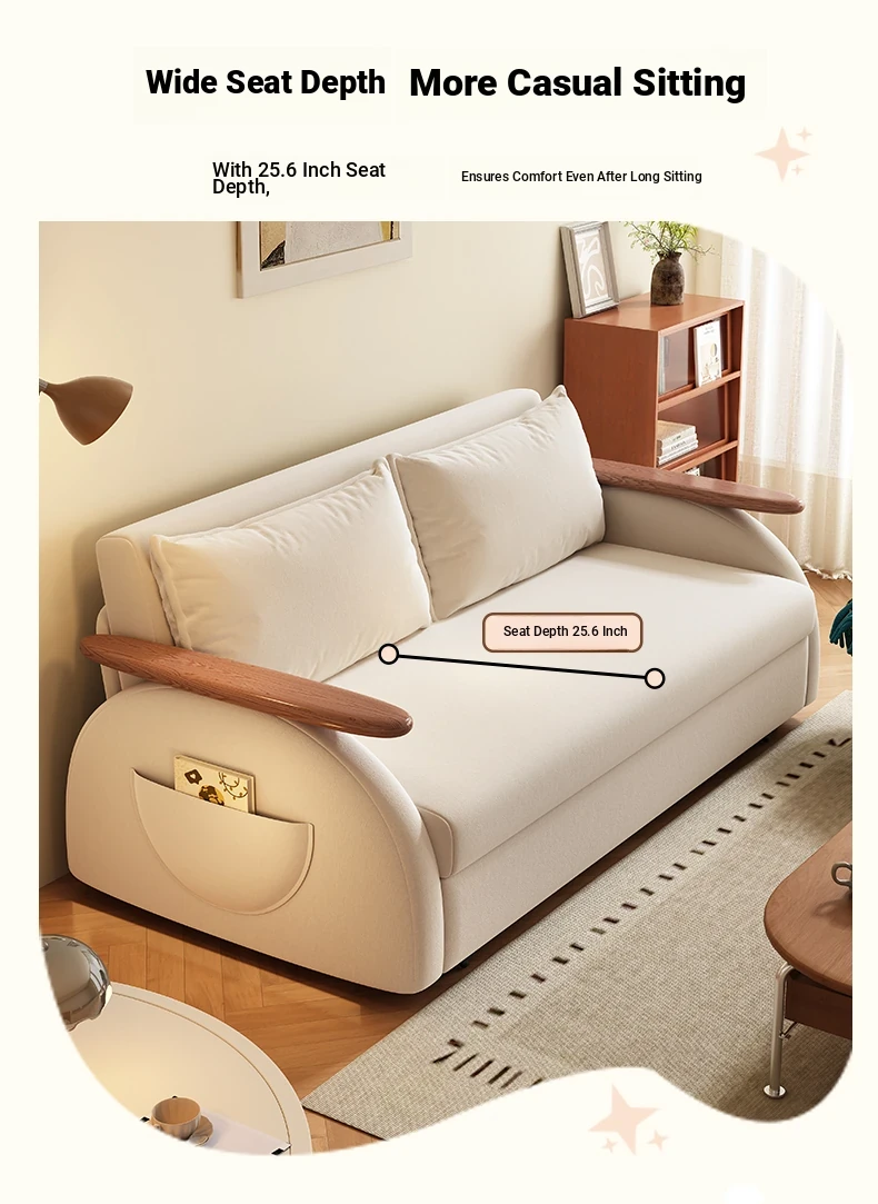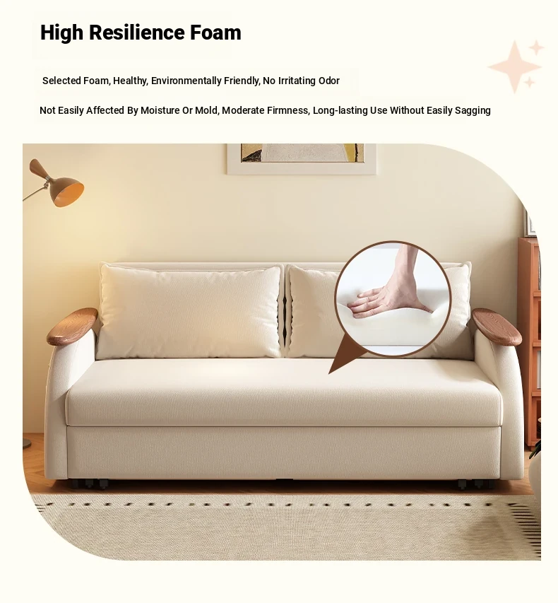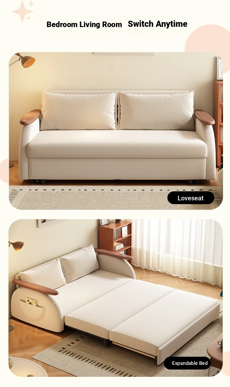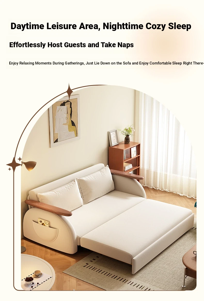 Elevate Creamy Solid Wood Foldable Sofa Bed - 2025 New Model for Living Room & Study, Versatile 2-in-1 Expandable Double Sofa, Perfect for Space-Saving Comfort!