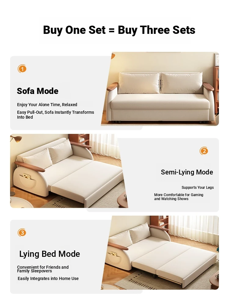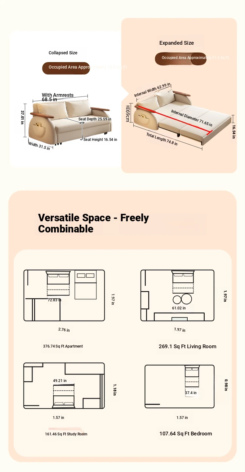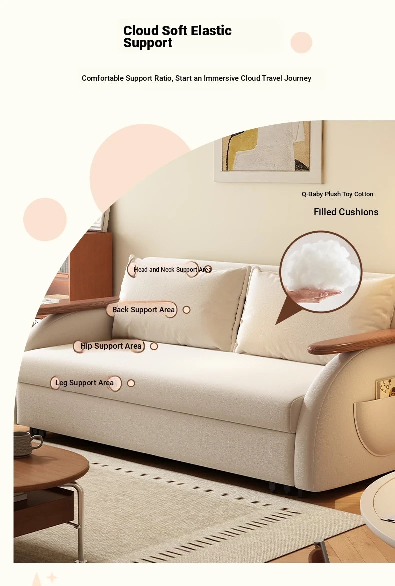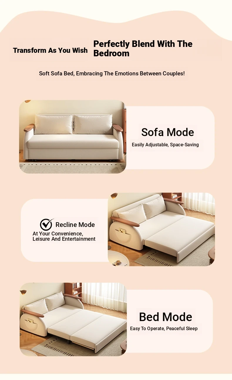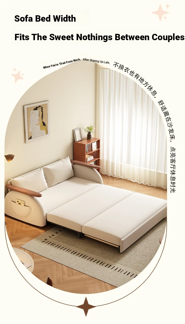 Elevate Creamy Solid Wood Foldable Sofa Bed - 2025 New Model for Living Room & Study, Versatile 2-in-1 Expandable Double Sofa, Perfect for Space-Saving Comfort!