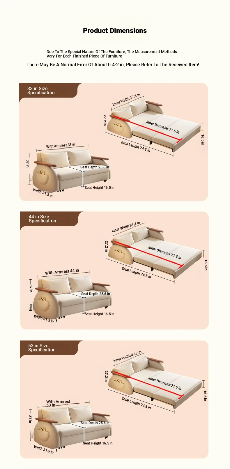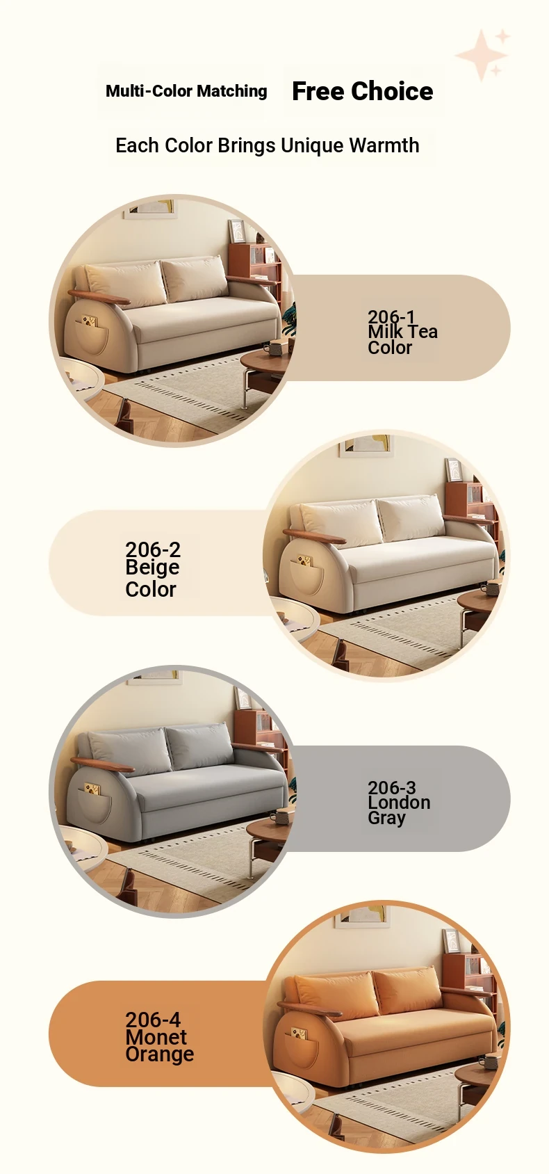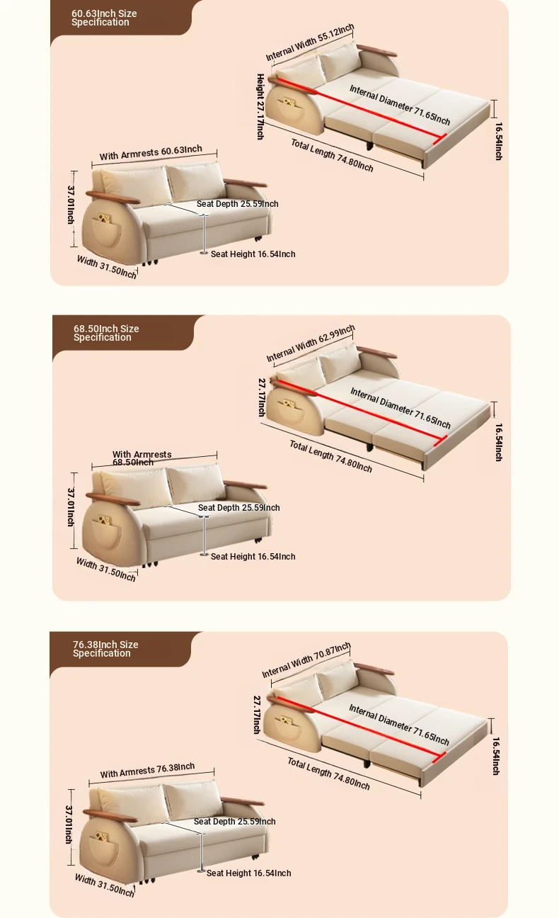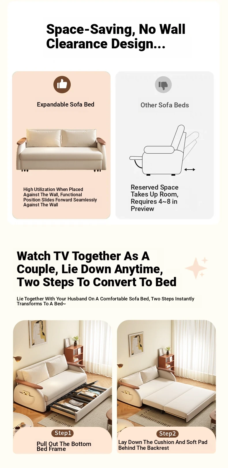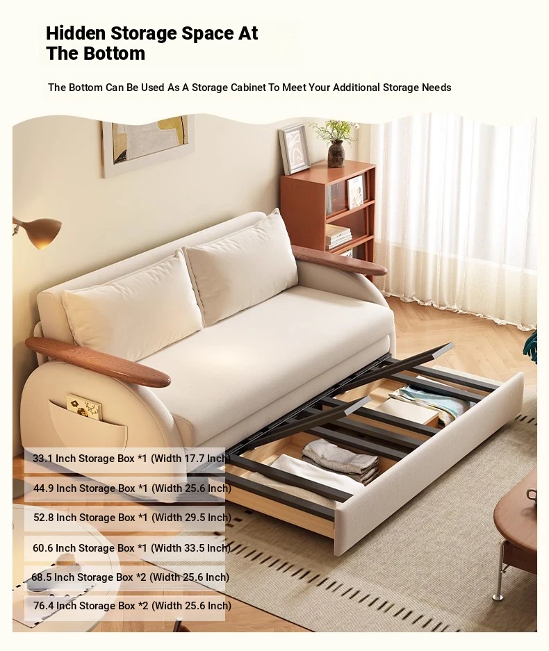 Elevate Creamy Solid Wood Foldable Sofa Bed - 2025 New Model for Living Room & Study, Versatile 2-in-1 Expandable Double Sofa, Perfect for Space-Saving Comfort!