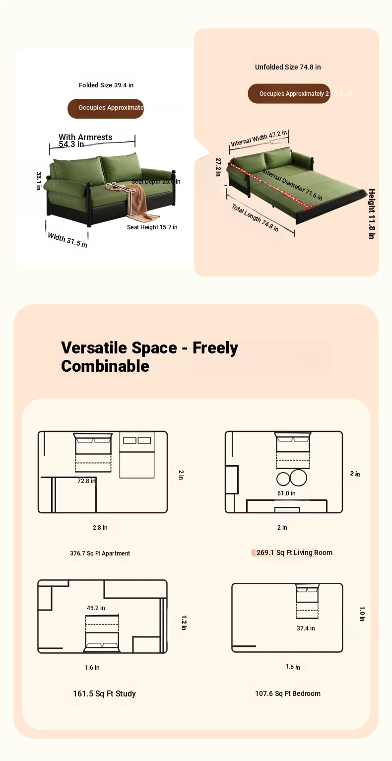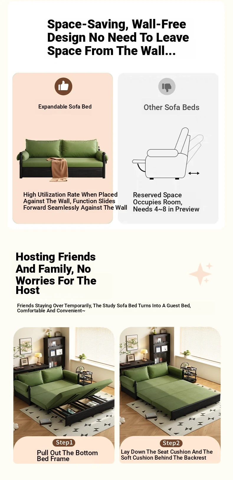 Elevate Solid Wood Sofa Bed - Modern Minimalist Multifunctional Folding Design for Small Spaces, Perfect for Home Office & Storage, Ideal for Cozy Living, Single Bed Solution