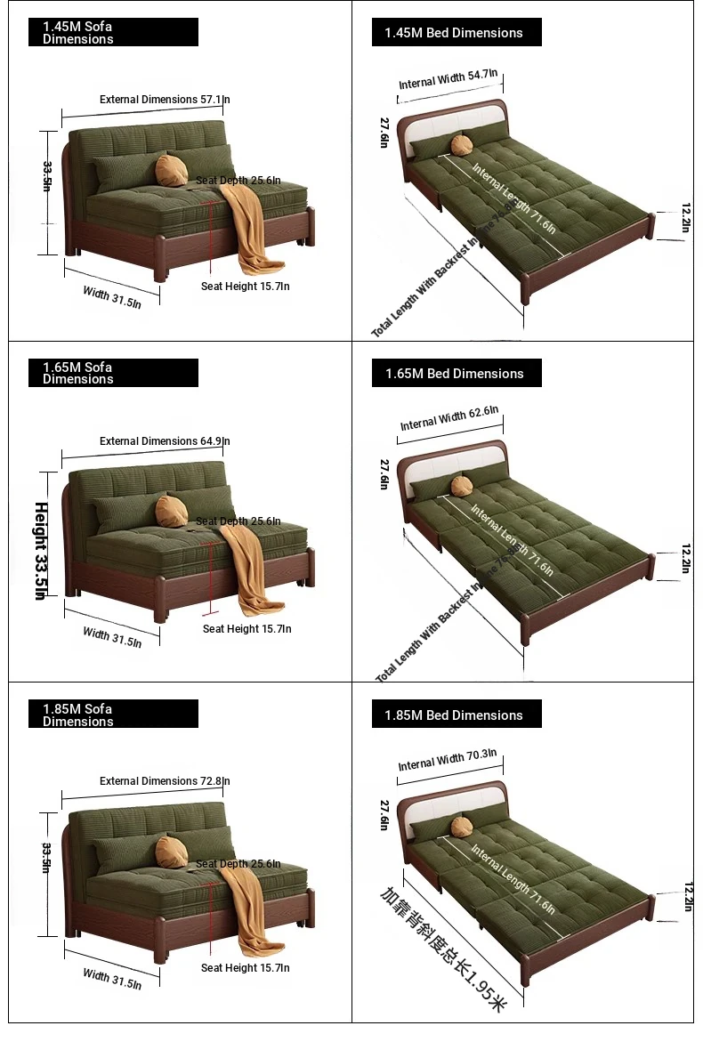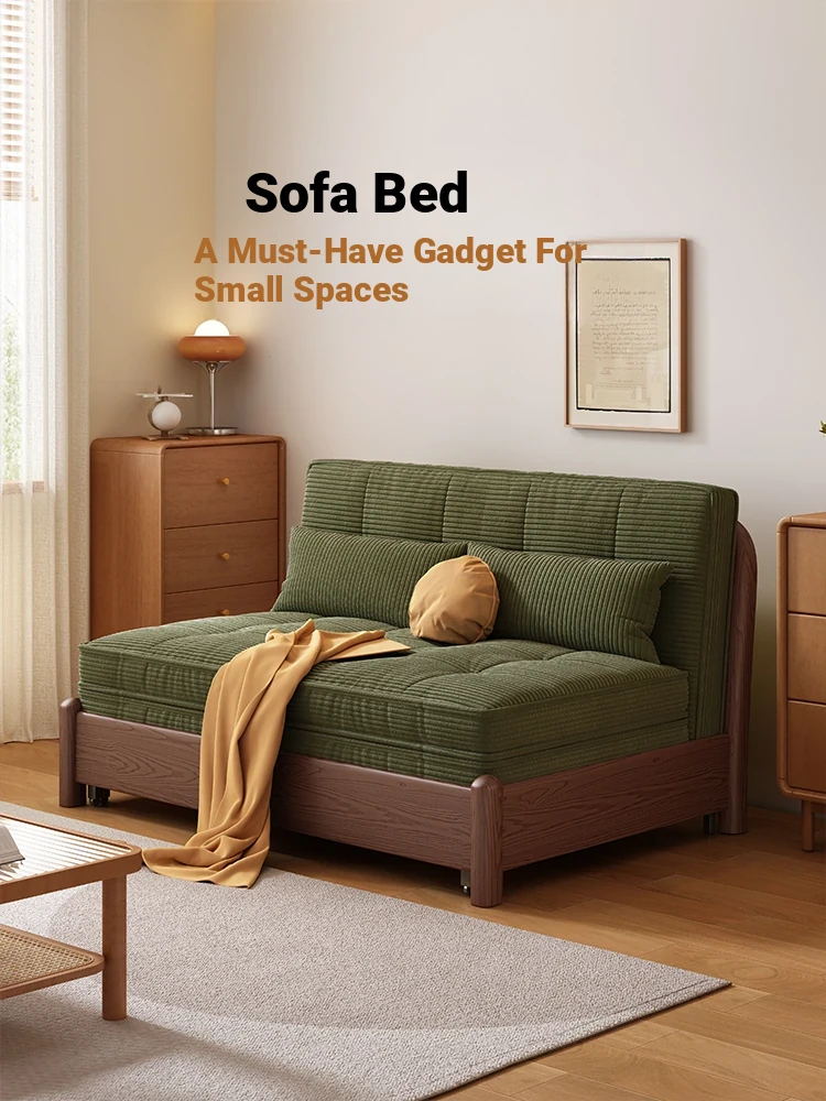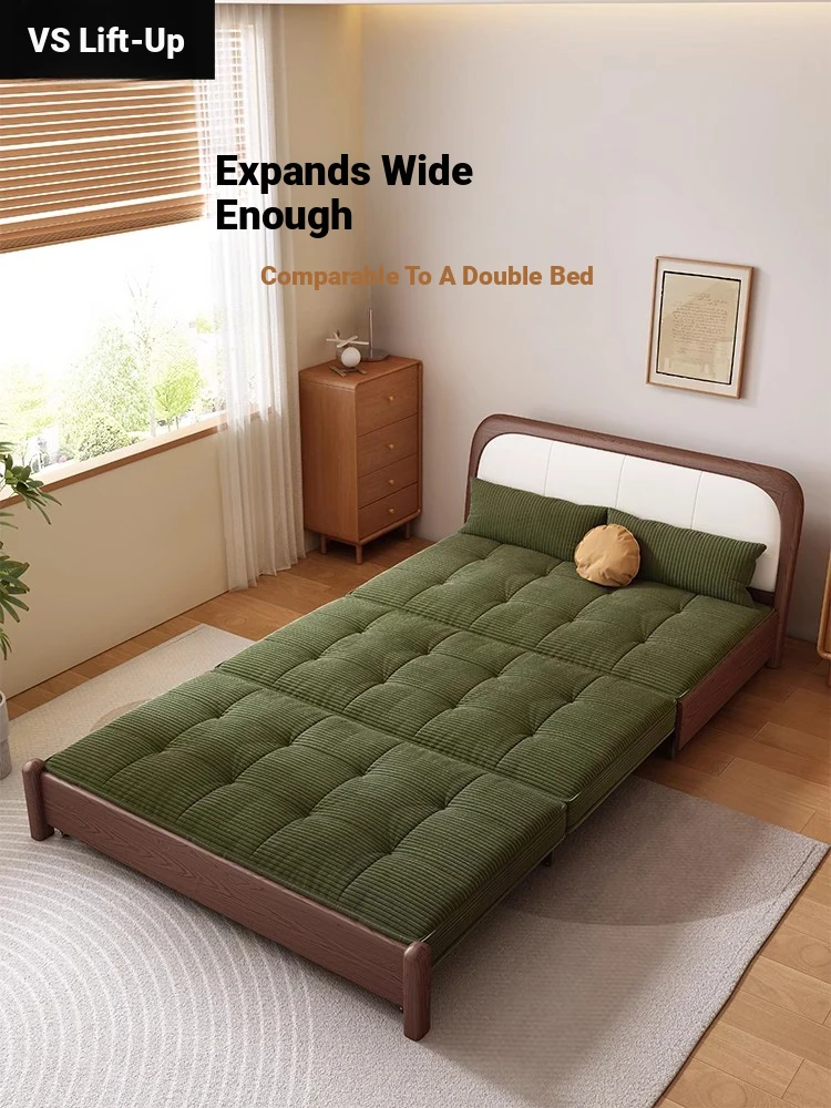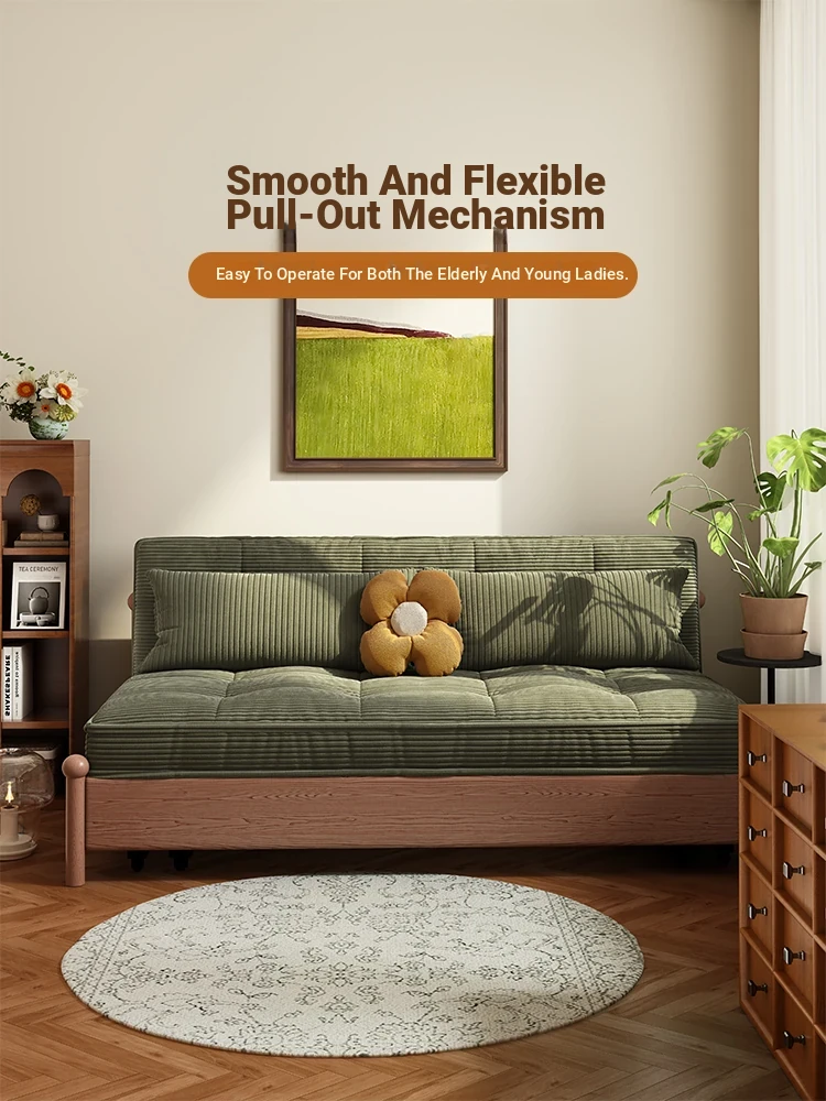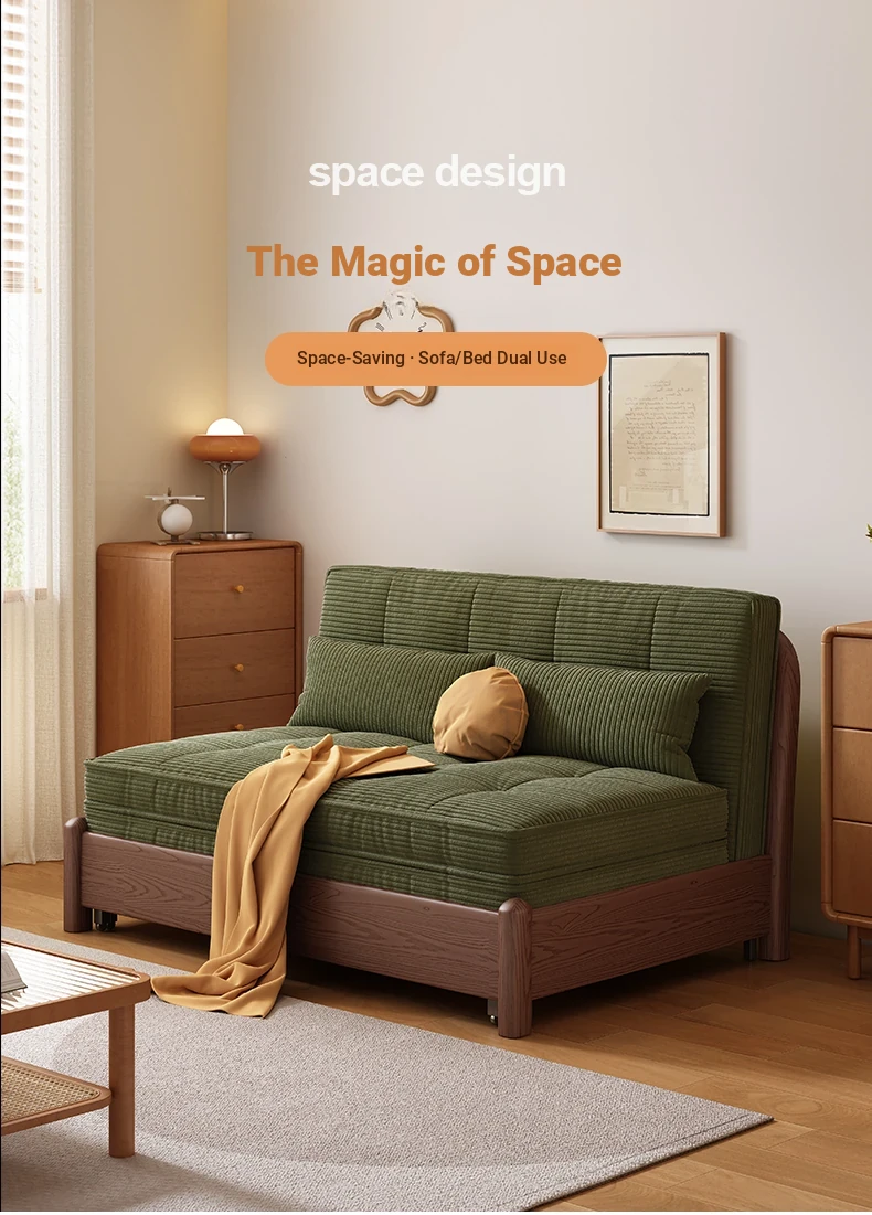 Elevate Your Space: 2025 New Modern Minimalist Foldable Solid Wood Sofa Bed with Luxurious Corduroy - Perfect Multi-Functional Solution for Small Living Rooms!