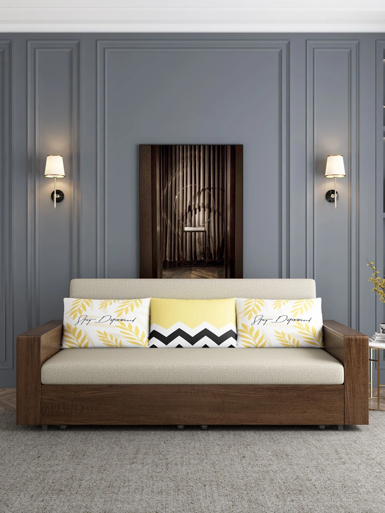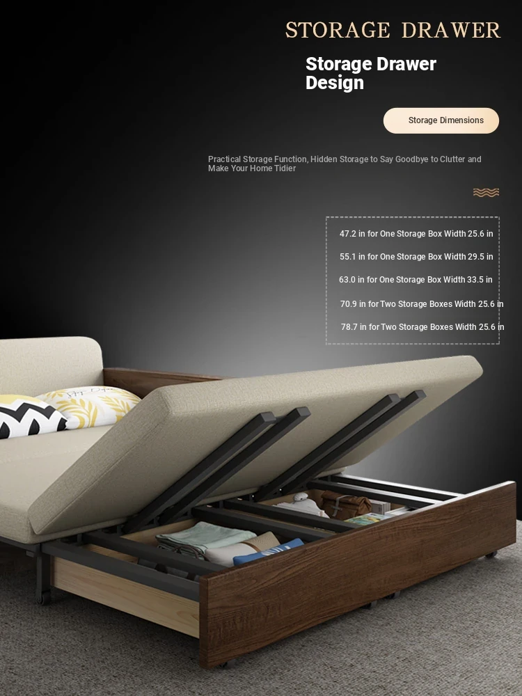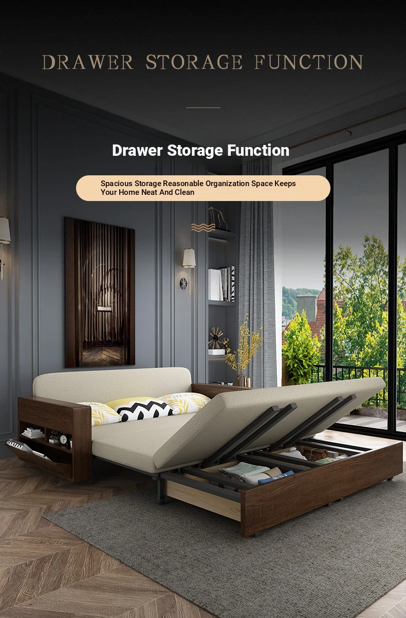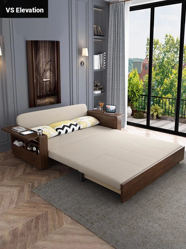 Elevate Your Space: Foldable Sofa Bed - Multi-Functional Solid Wood Design for Small Living Rooms, Simplistic Pull-Out Fabric Style, Perfect for Couples or Singles!