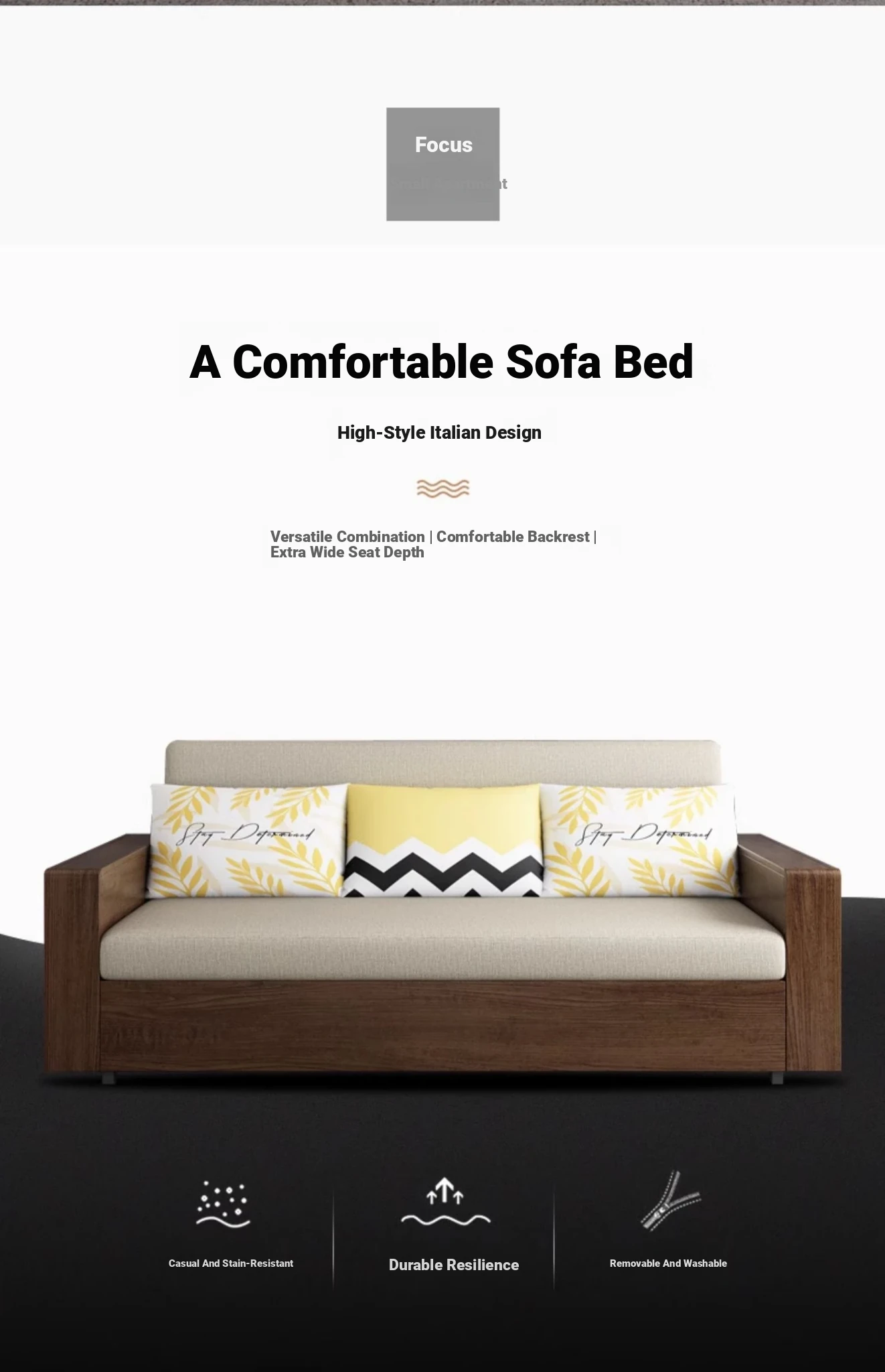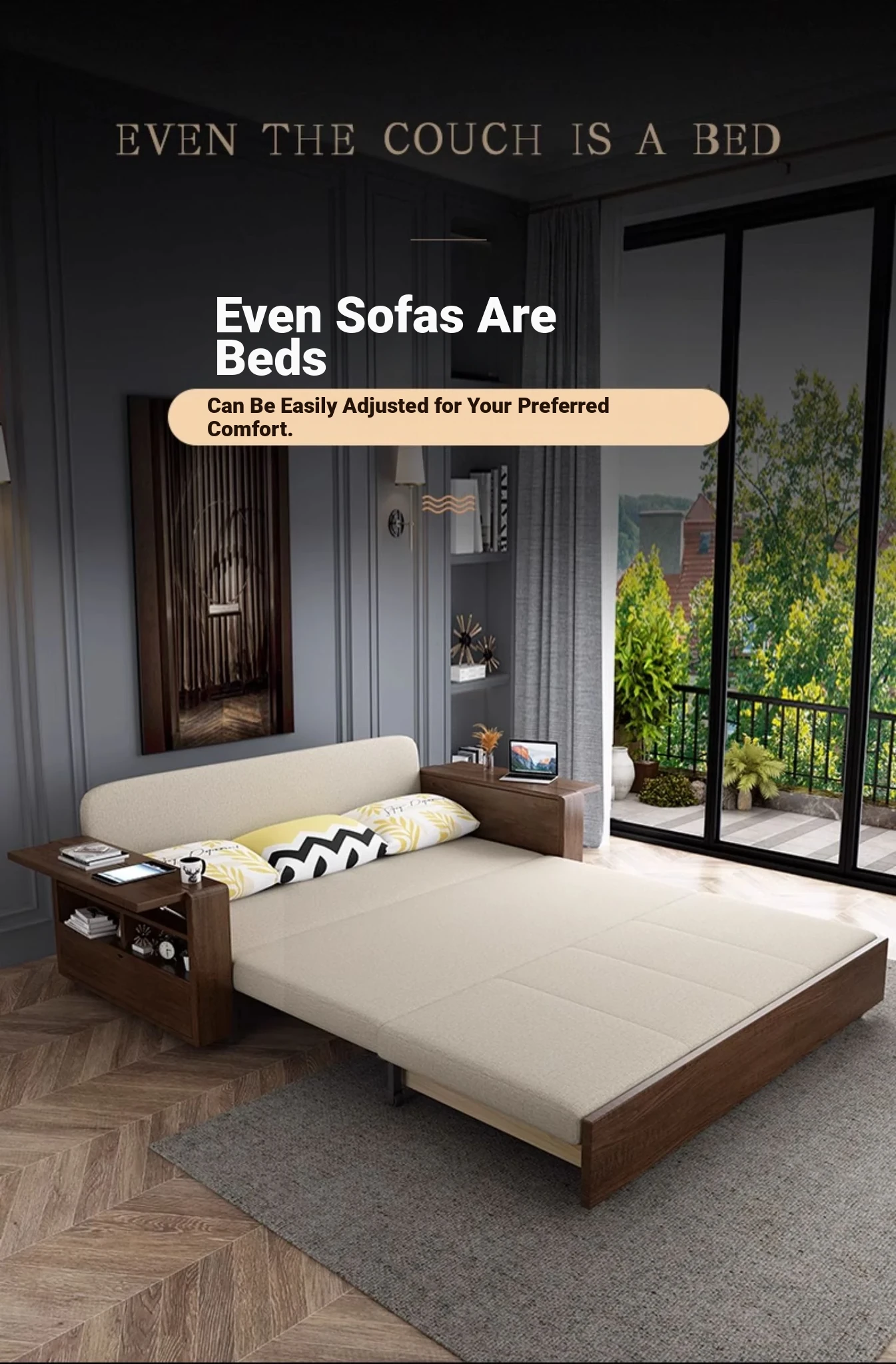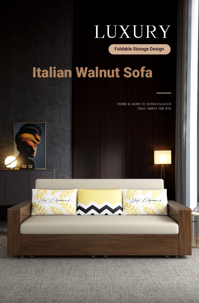 Elevate Your Space: Foldable Sofa Bed - Multi-Functional Solid Wood Design for Small Living Rooms, Simplistic Pull-Out Fabric Style, Perfect for Couples or Singles!