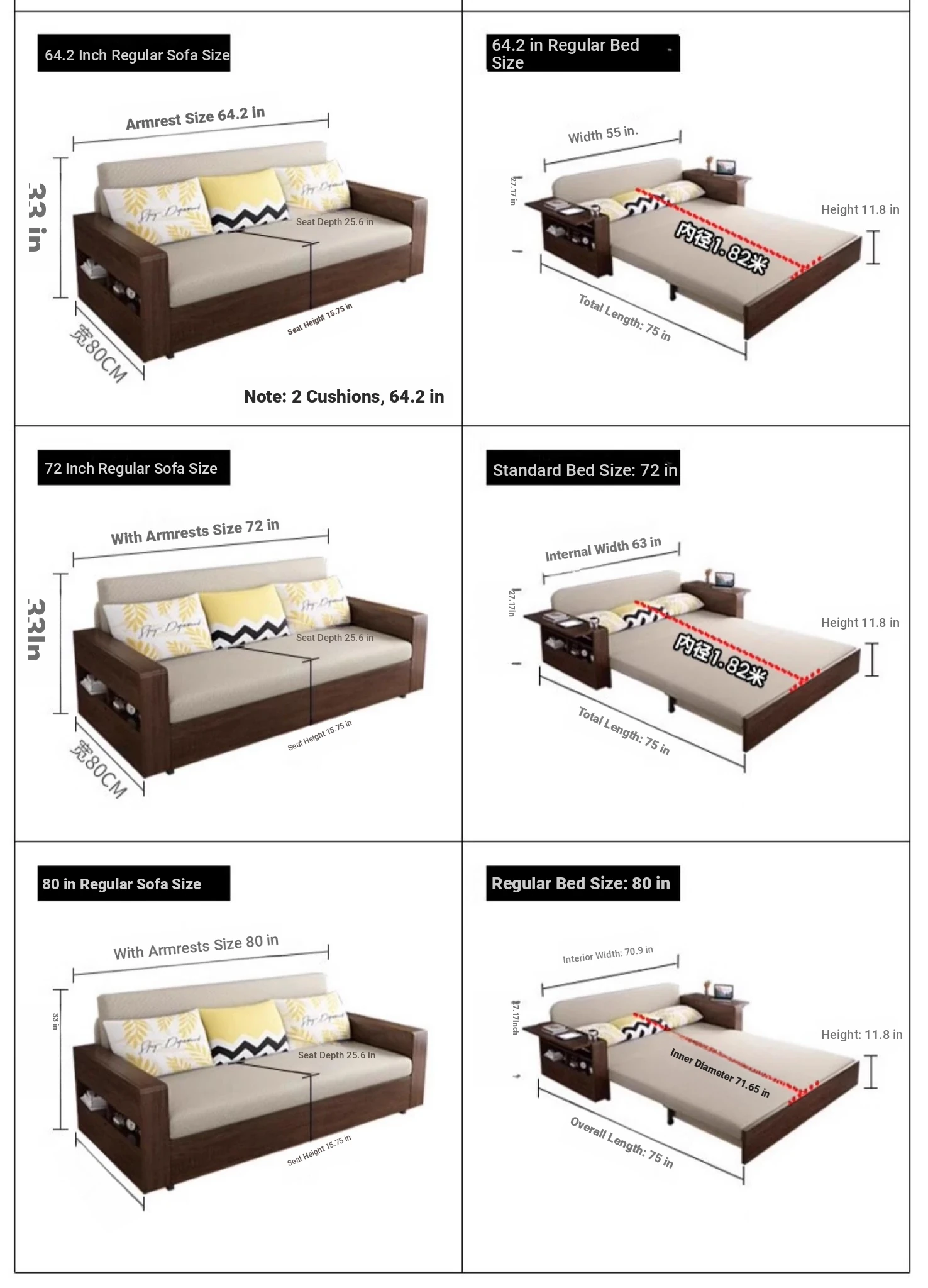 79.92in powder-free sponge [breathable cotton linen] with storage