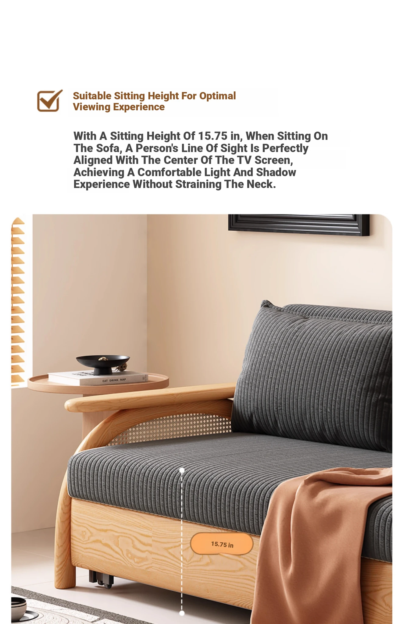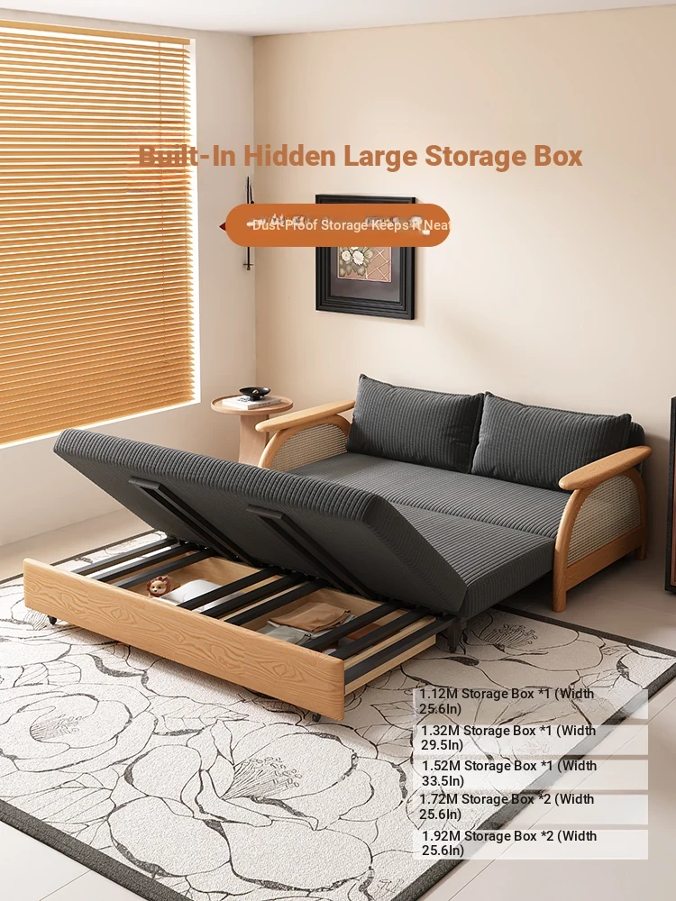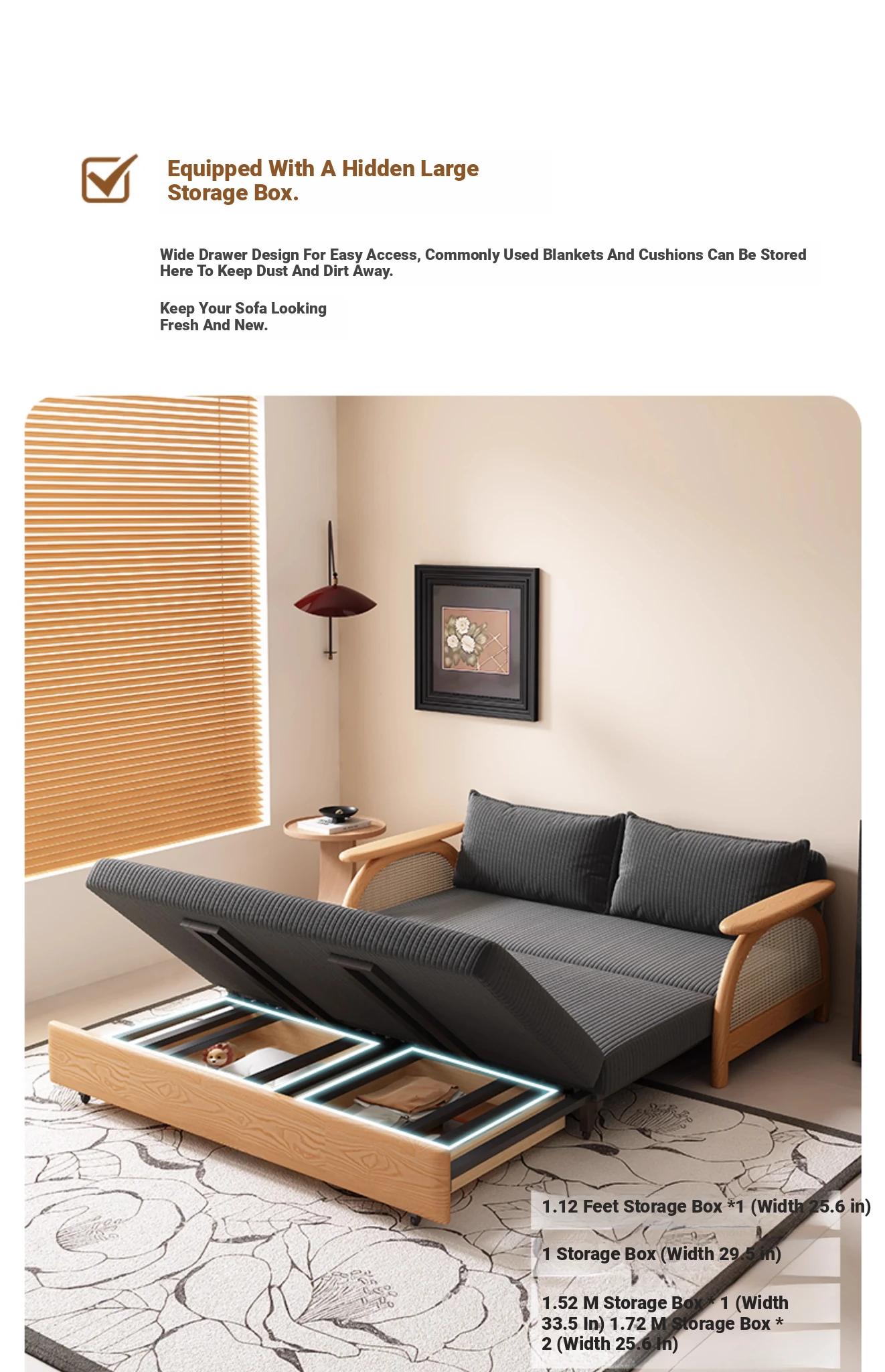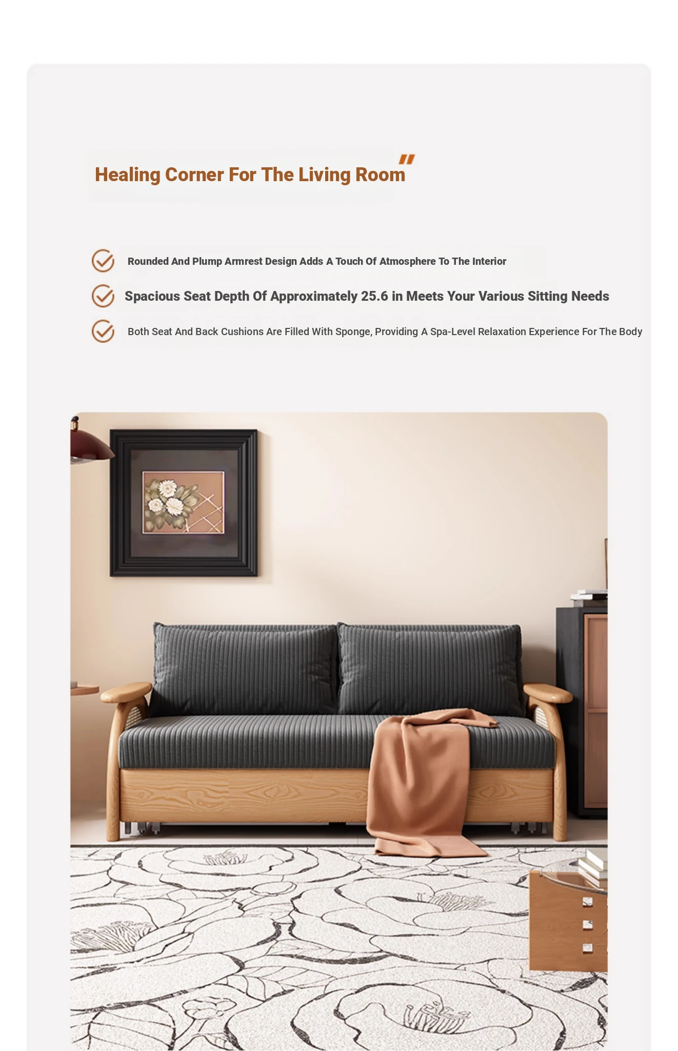 Elevate Your Space: Japanese-Style Multifunctional Foldable Sofa Bed with Storage - Ideal for Small Apartments, Featuring Cozy Corduroy and Durable Solid Wood for Comfort and Style.