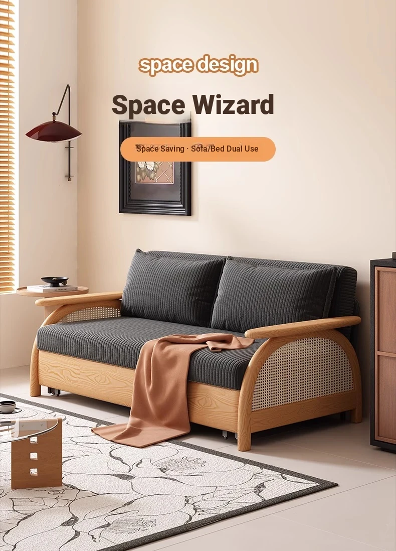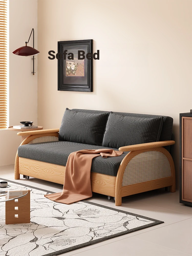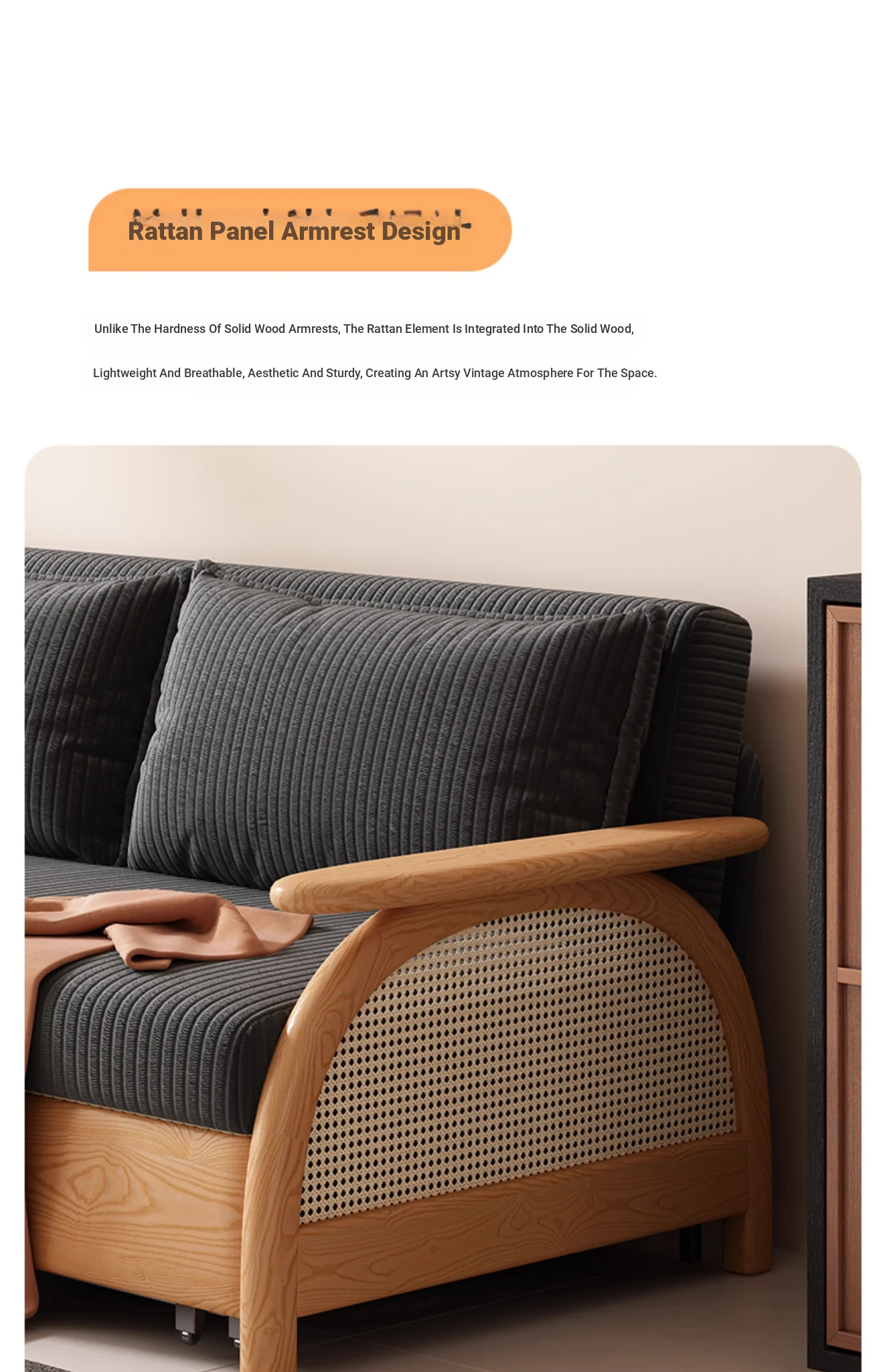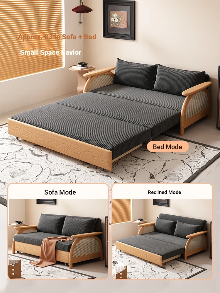 Elevate Your Space: Japanese-Style Multifunctional Foldable Sofa Bed with Storage - Ideal for Small Apartments, Featuring Cozy Corduroy and Durable Solid Wood for Comfort and Style.