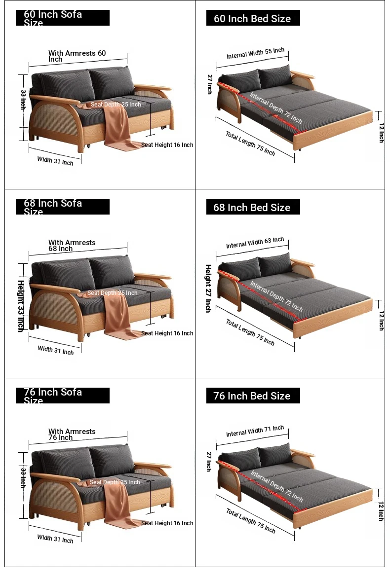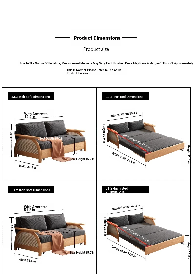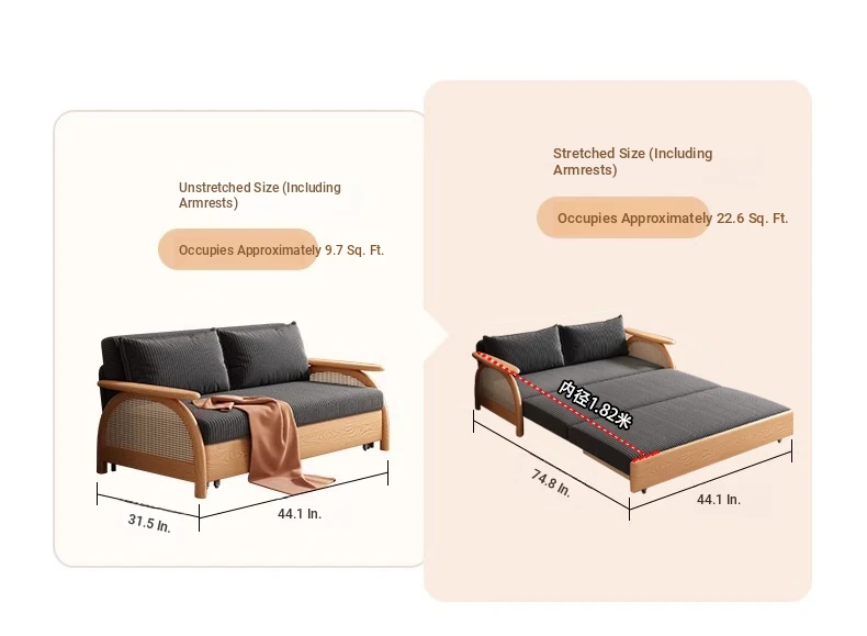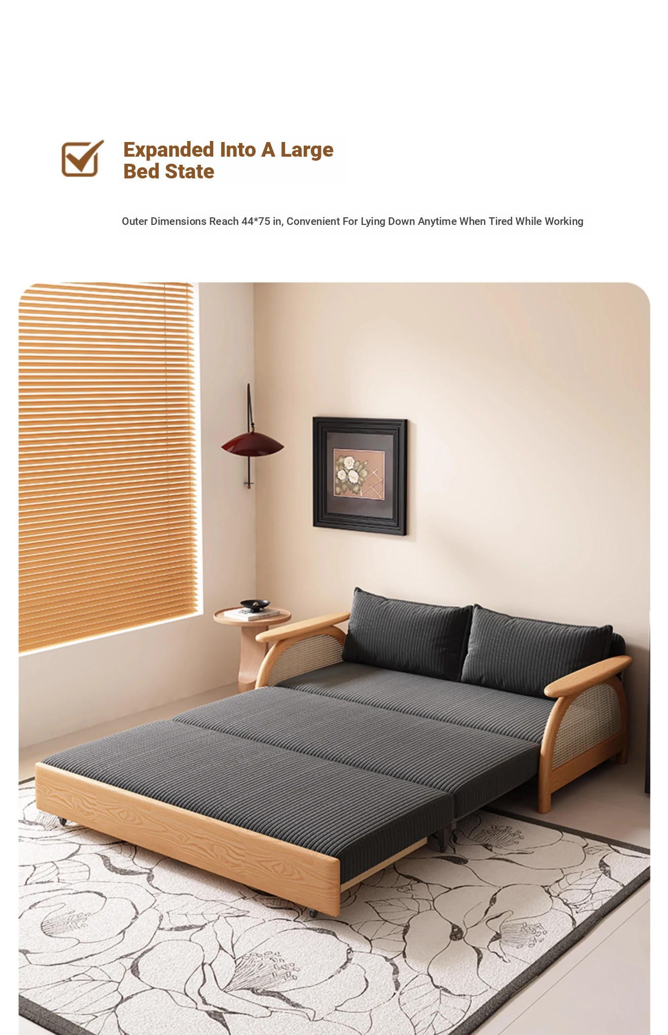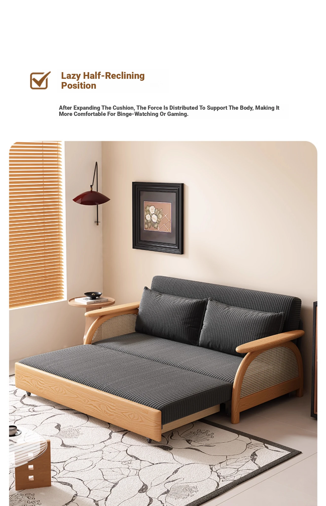 Elevate Your Space: Japanese-Style Multifunctional Foldable Sofa Bed with Storage - Ideal for Small Apartments, Featuring Cozy Corduroy and Durable Solid Wood for Comfort and Style.