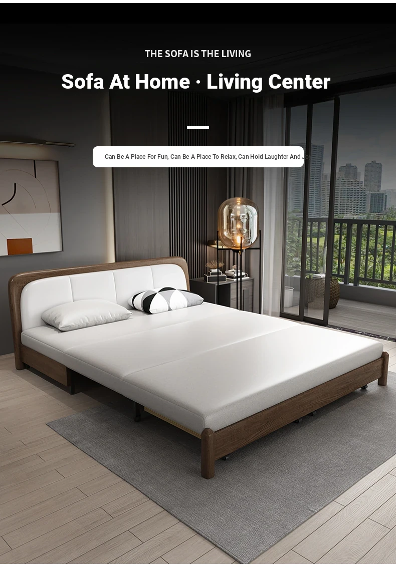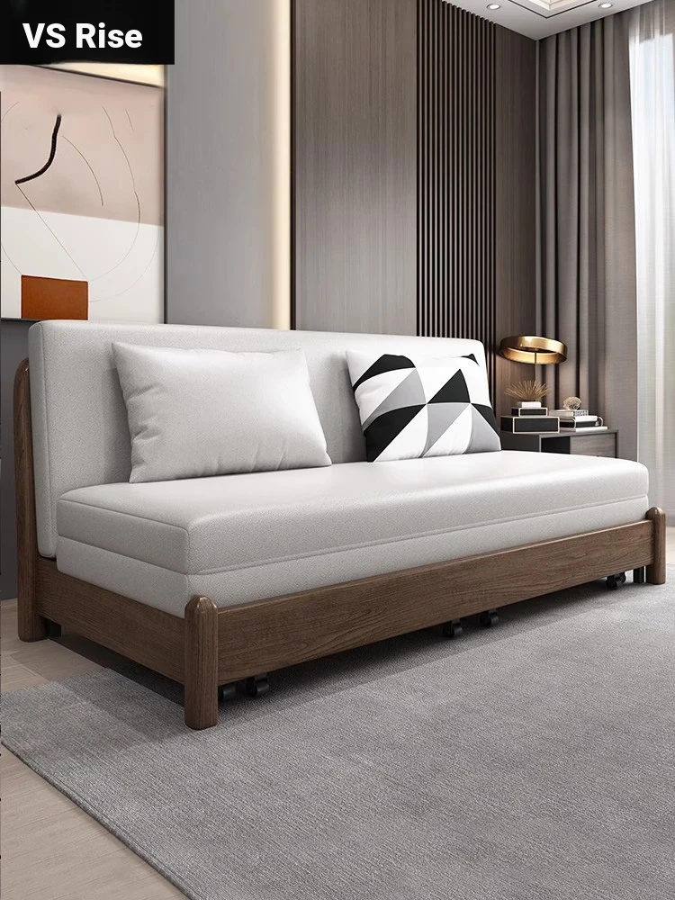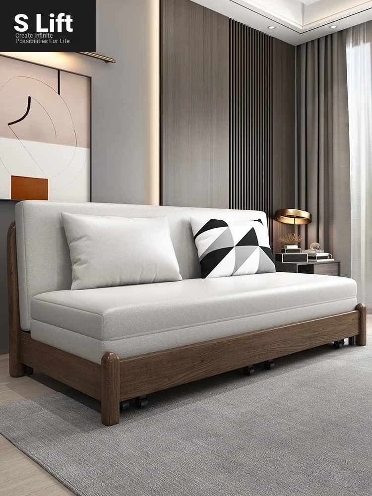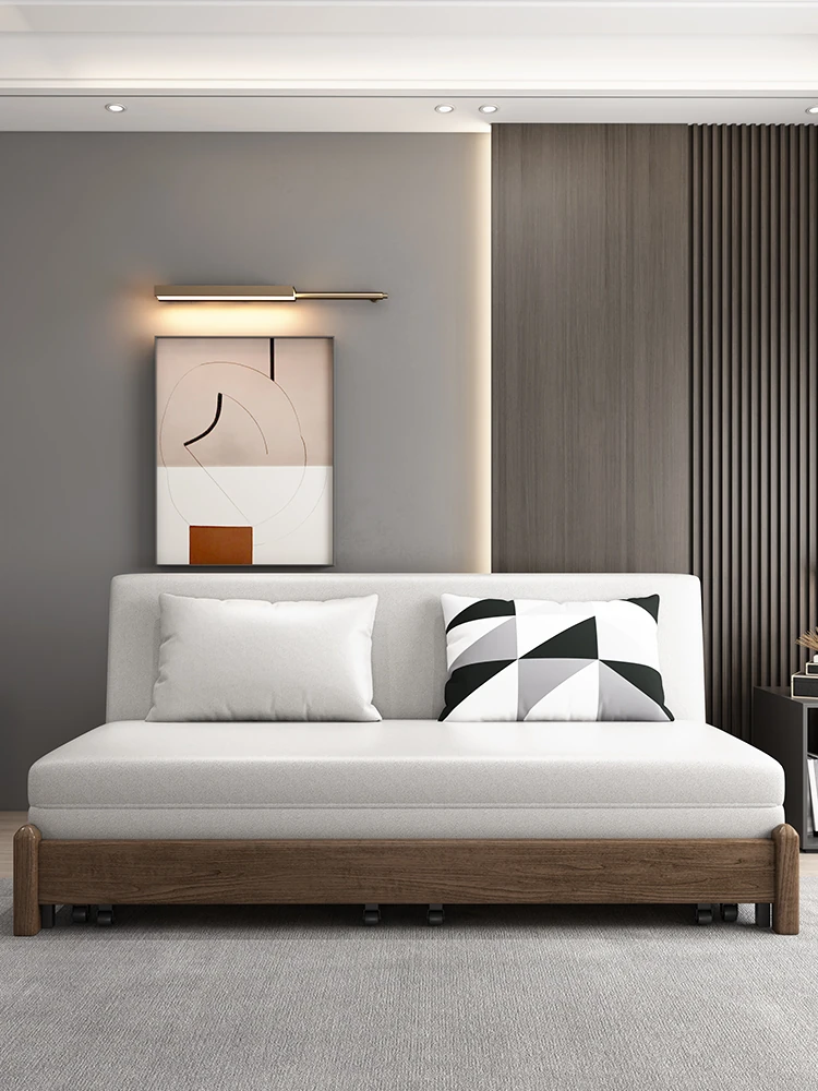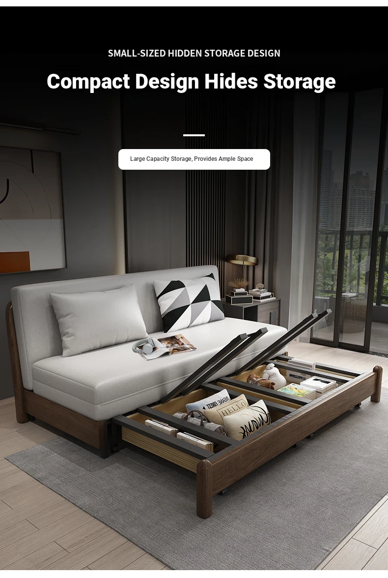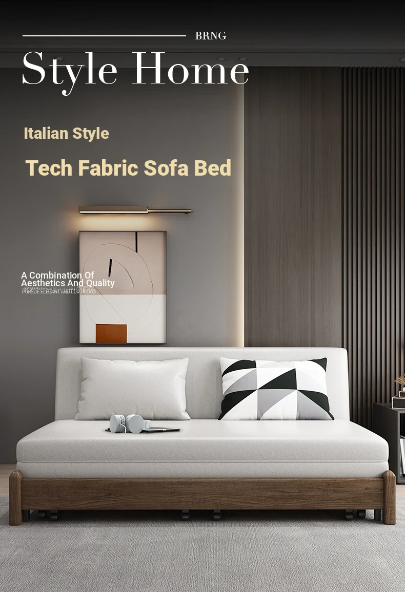 Elevate Your Space: Multifunctional Italian-Style Solid Wood Sofa Bed with Tech Fabric - Foldable and Perfect for Small Living Rooms, Ideal for Couples!