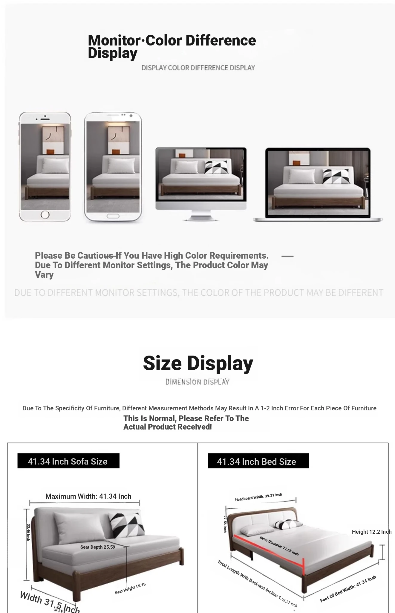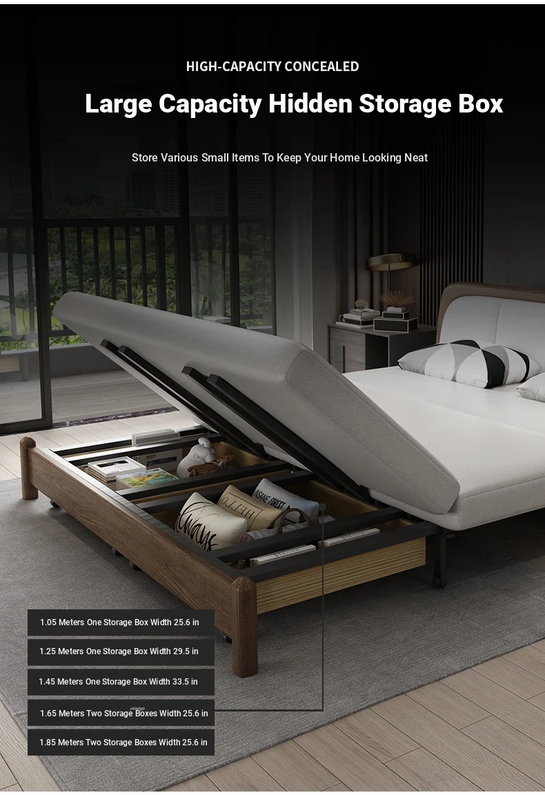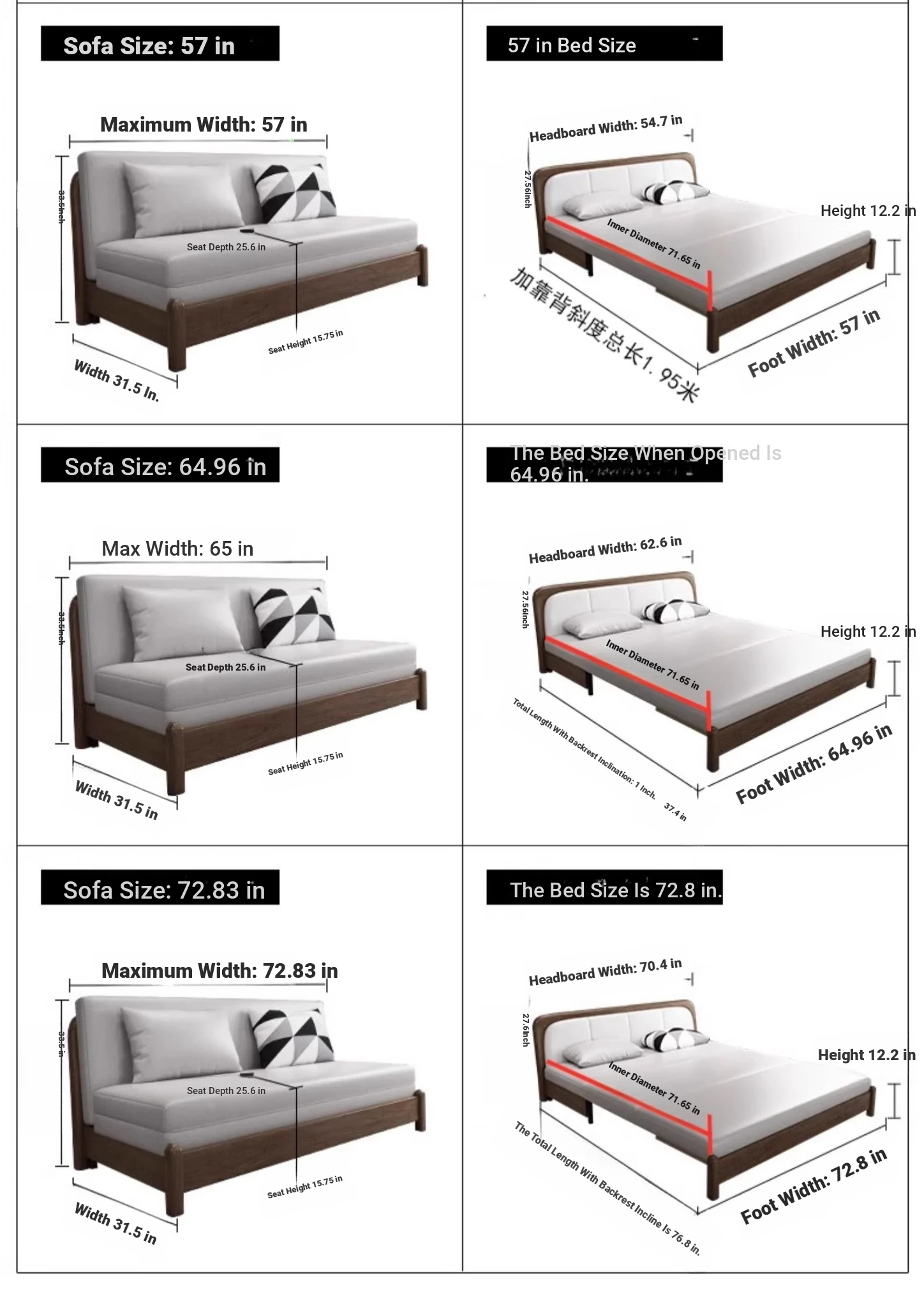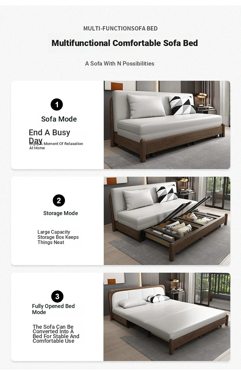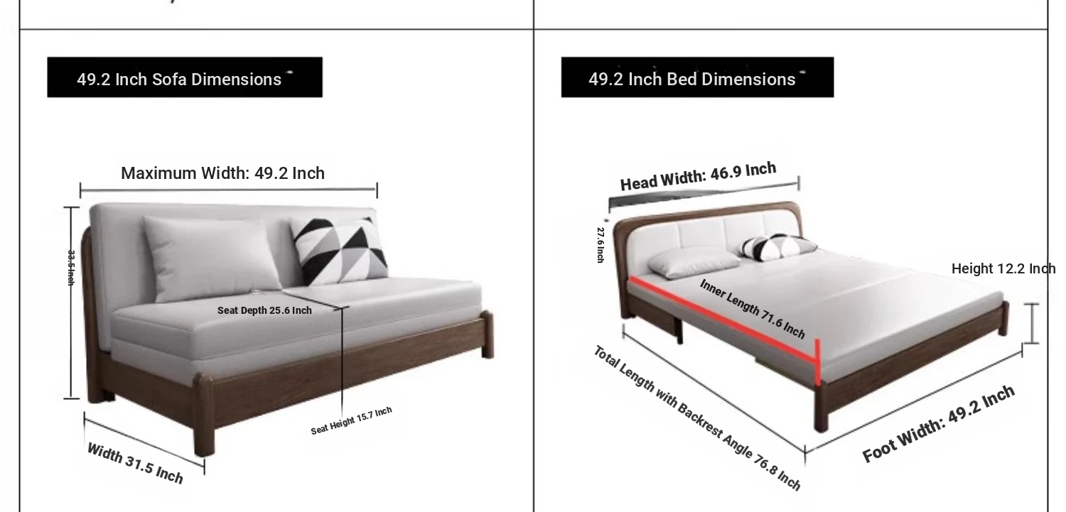 Elevate Your Space: Multifunctional Italian-Style Solid Wood Sofa Bed with Tech Fabric - Foldable and Perfect for Small Living Rooms, Ideal for Couples!