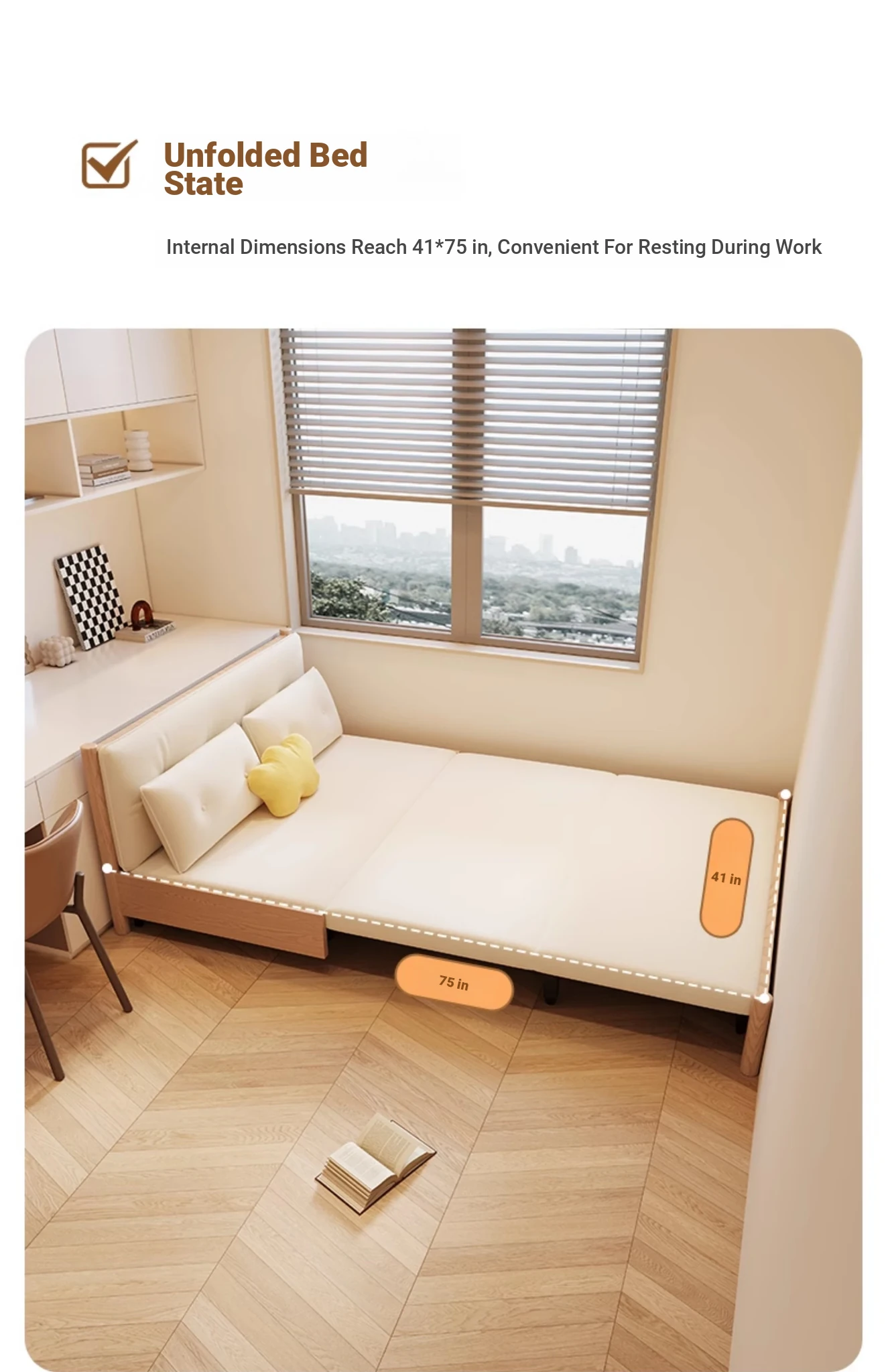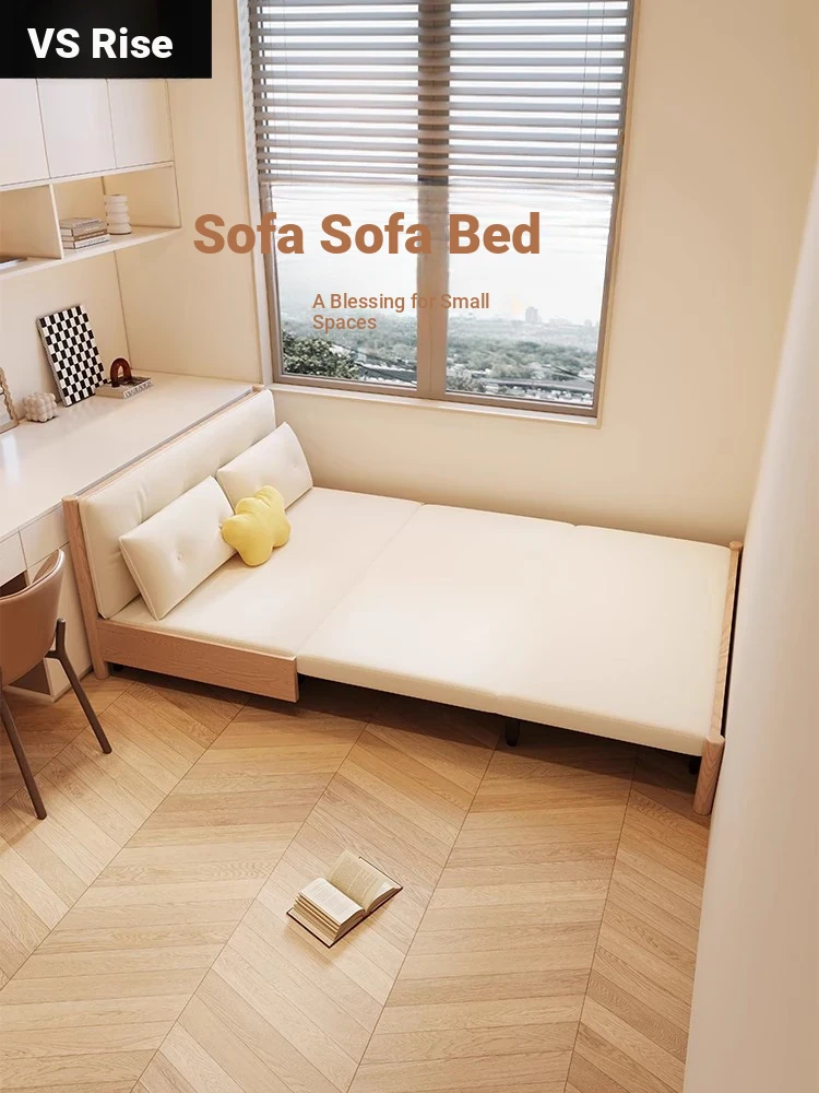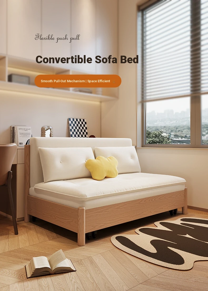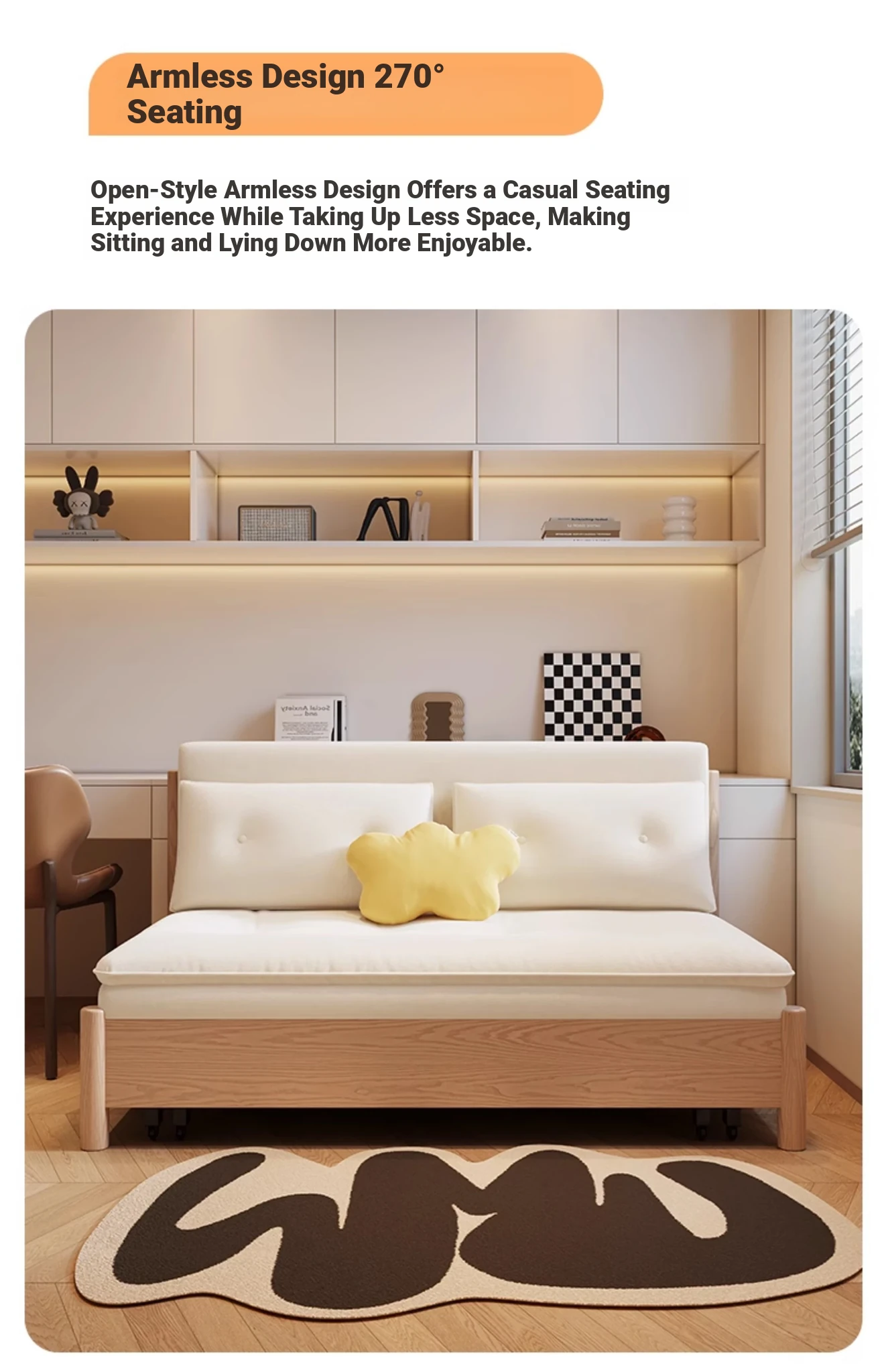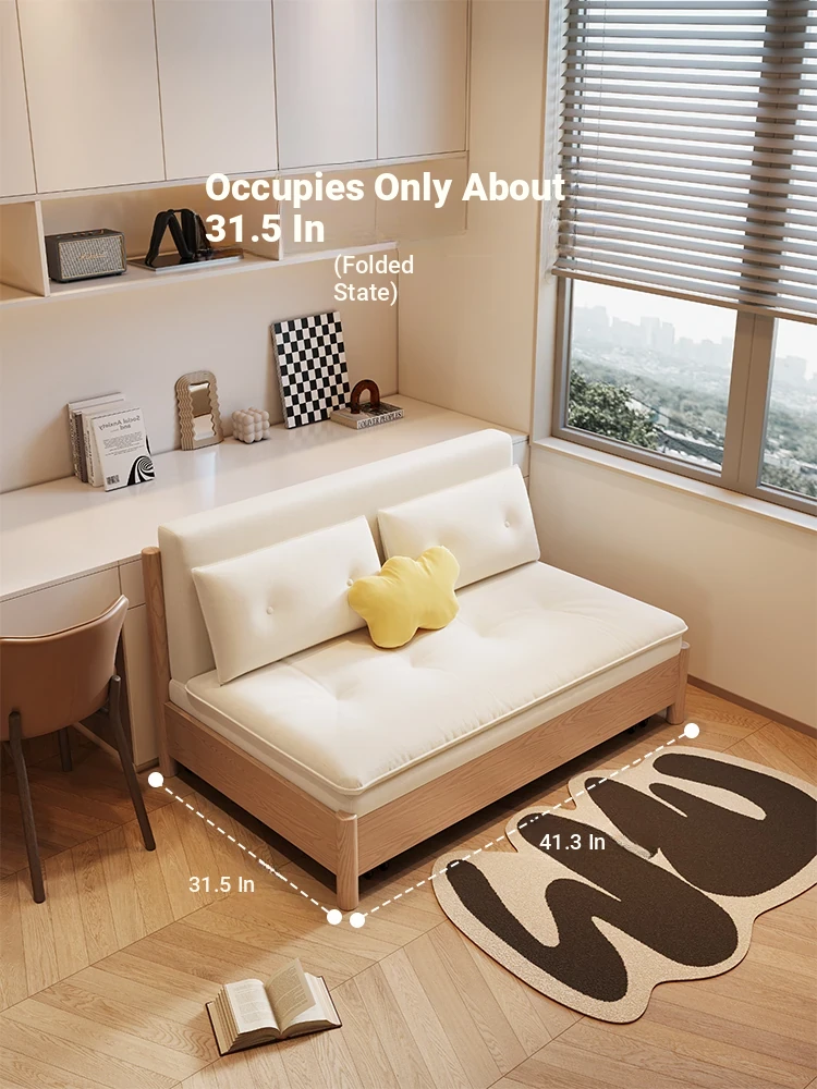 Elevate Your Space: Stylish Folding Solid Wood Sofa Bed – Versatile and Compact for Small Living Rooms and Balconies, Trendy Minimalist Design, Perfect Multi-Functional Solution for Modern Homes!