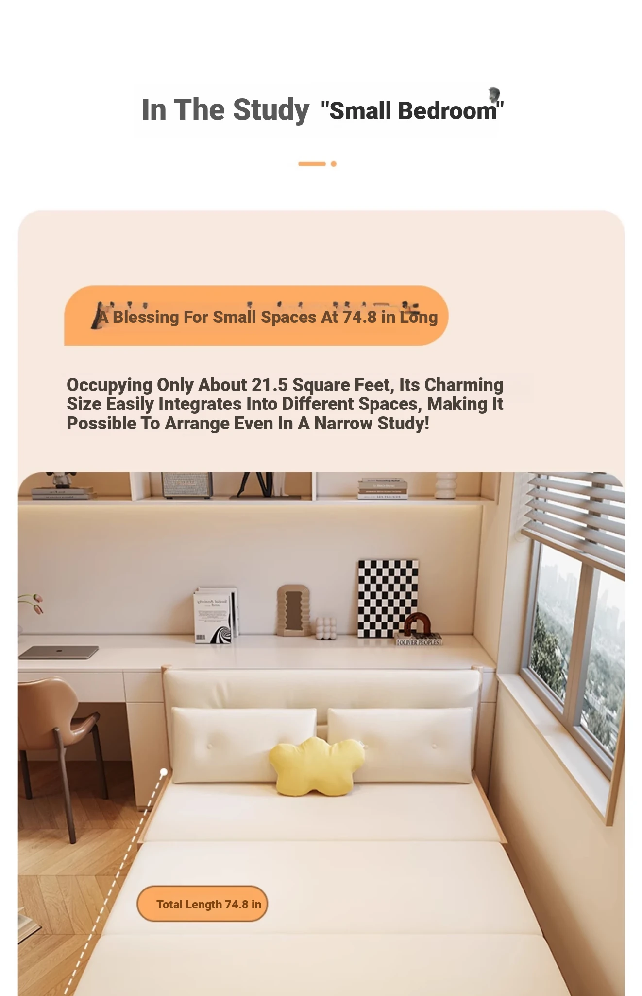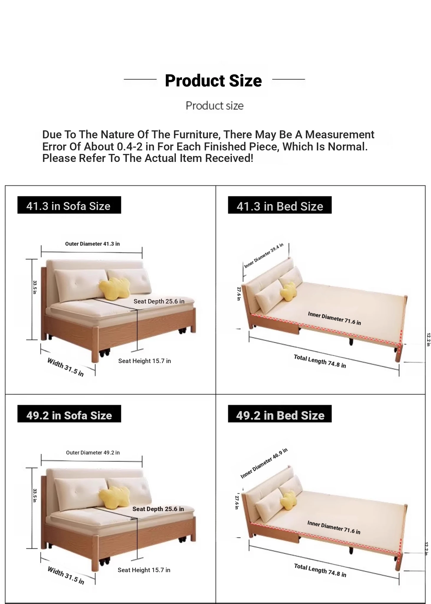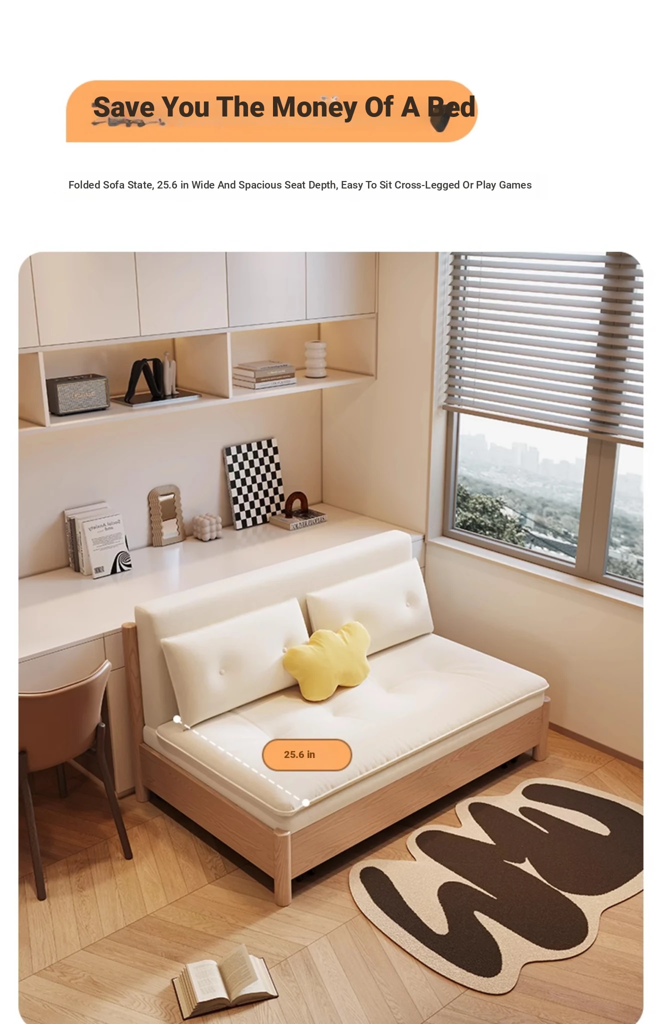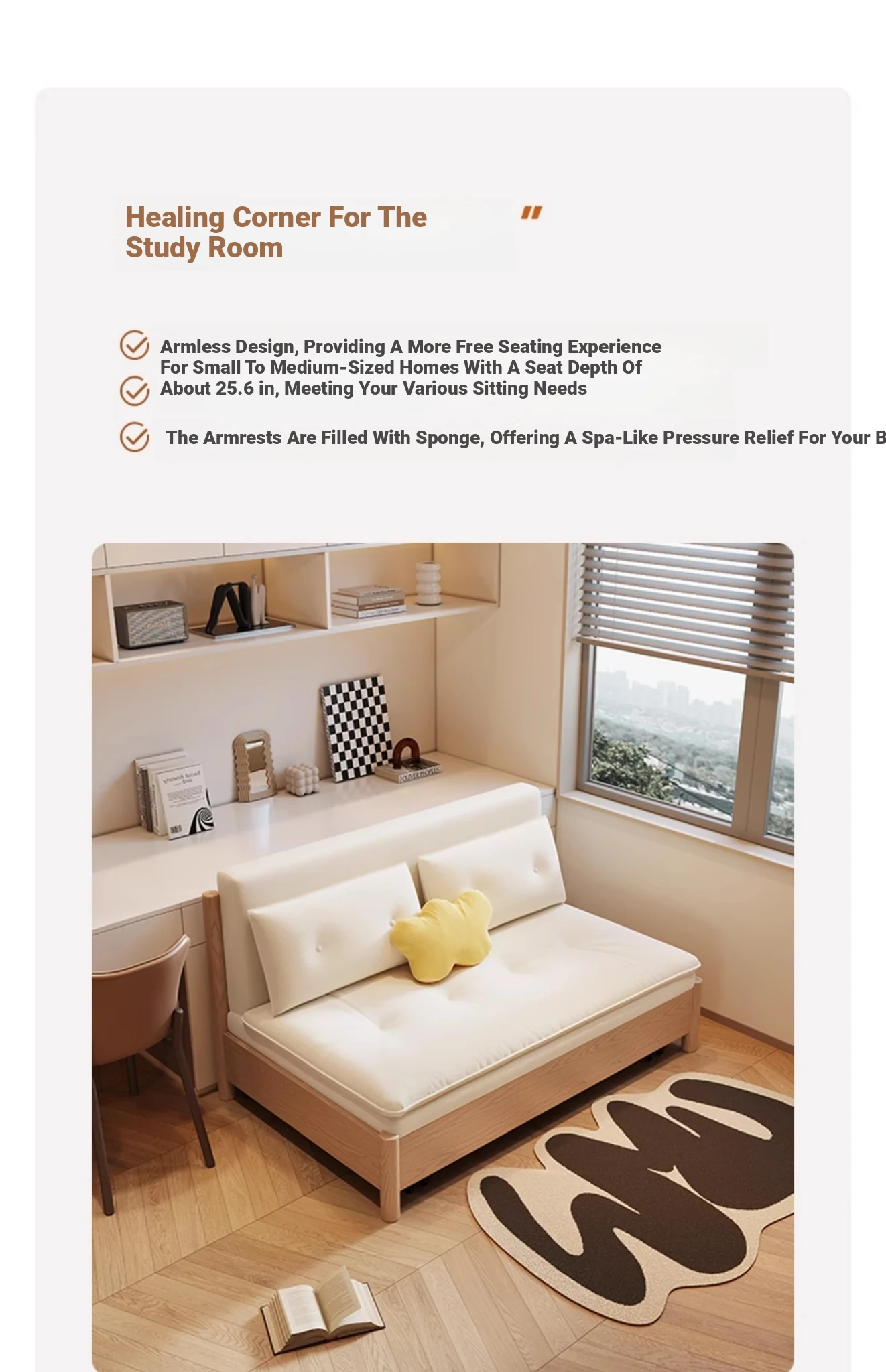 Elevate Your Space: Stylish Folding Solid Wood Sofa Bed – Versatile and Compact for Small Living Rooms and Balconies, Trendy Minimalist Design, Perfect Multi-Functional Solution for Modern Homes!