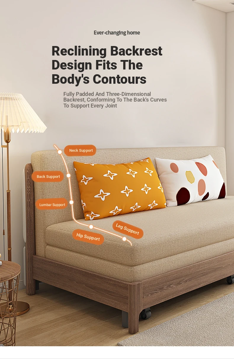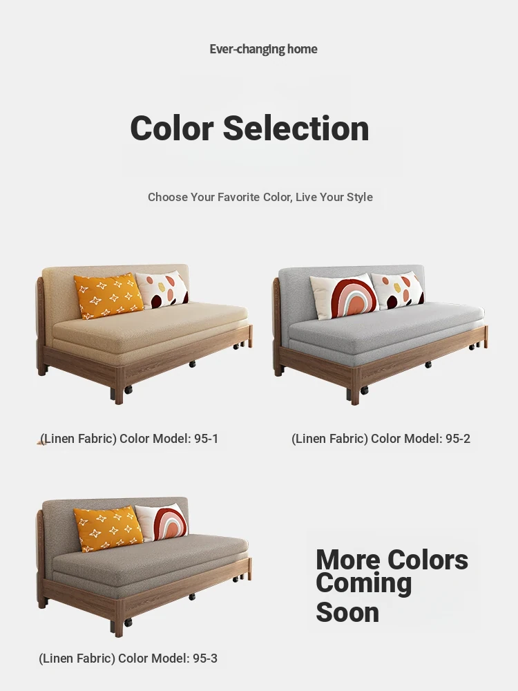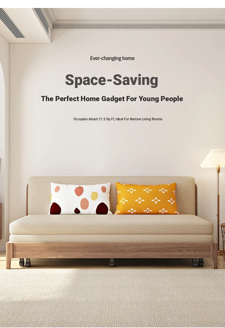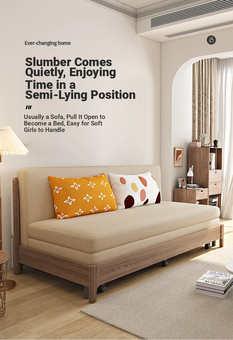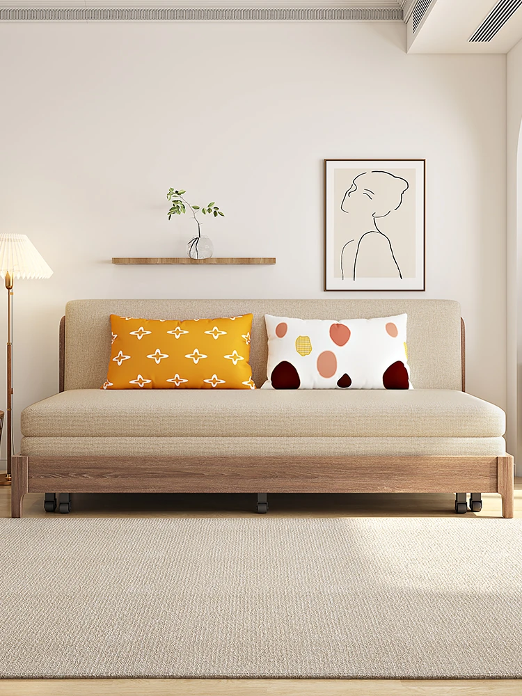 Elevate Your Space: Versatile Solid Wood Sofa Bed - Stylish and Compact Design for Small Living Rooms, New Minimalist Dual-Use Fabric Sofa with Pull-Out Function for Couples.