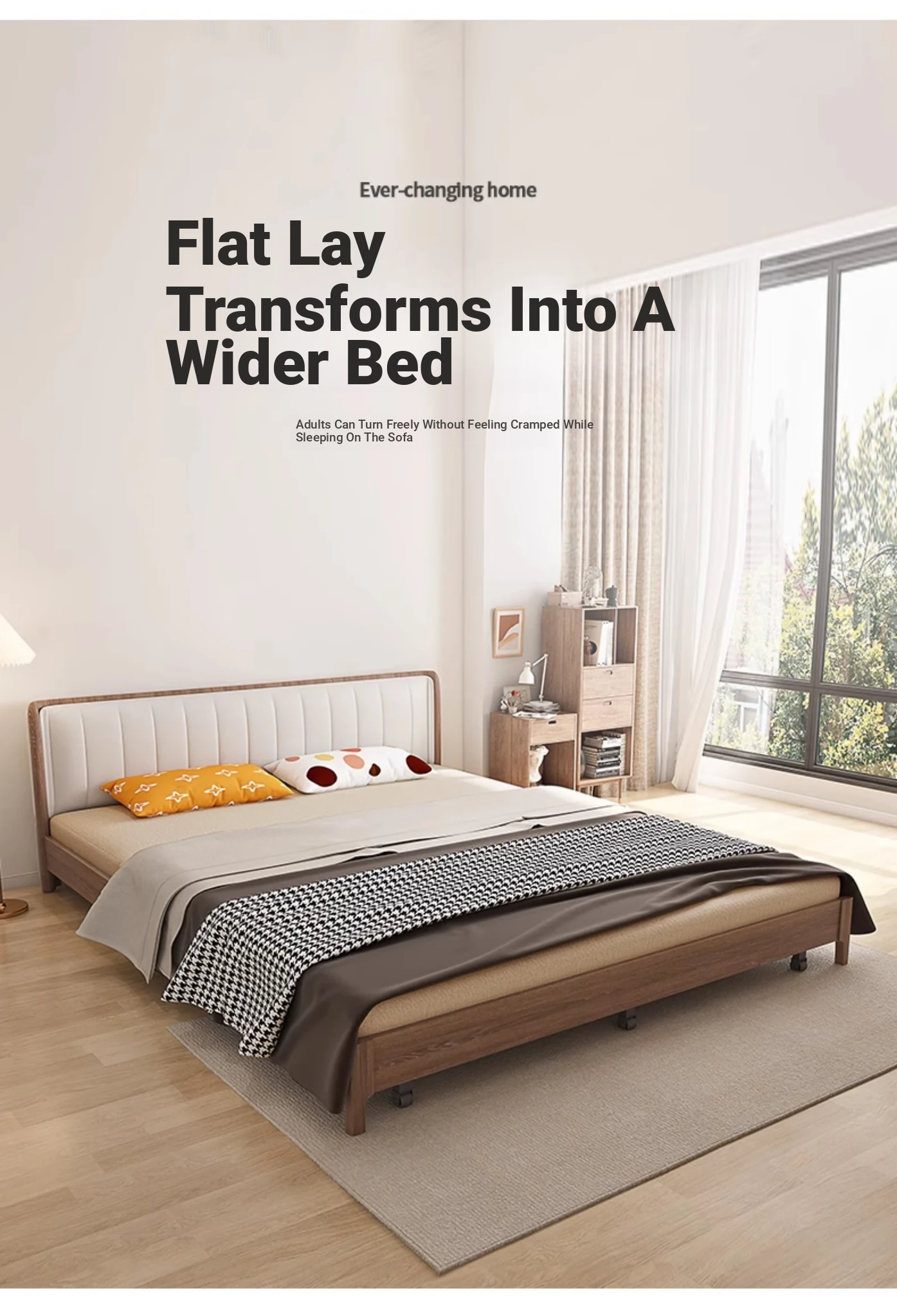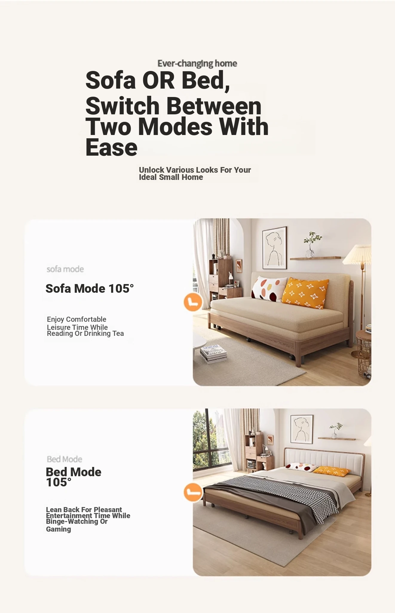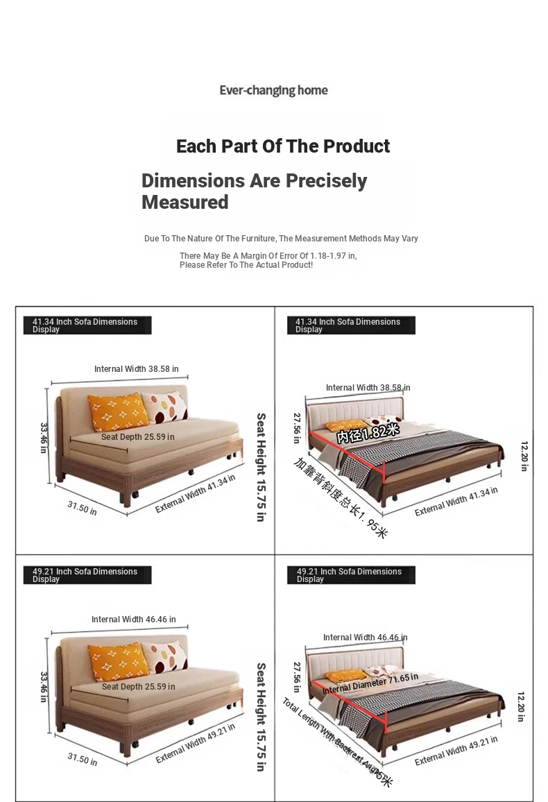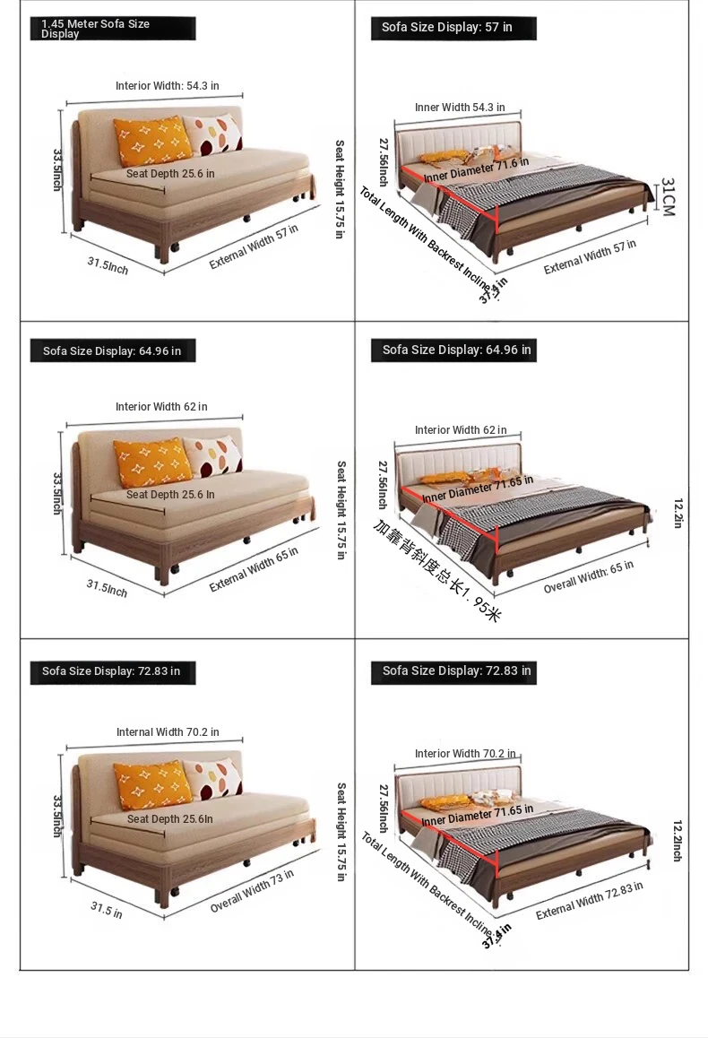 Elevate Your Space: Versatile Solid Wood Sofa Bed - Stylish and Compact Design for Small Living Rooms, New Minimalist Dual-Use Fabric Sofa with Pull-Out Function for Couples.
