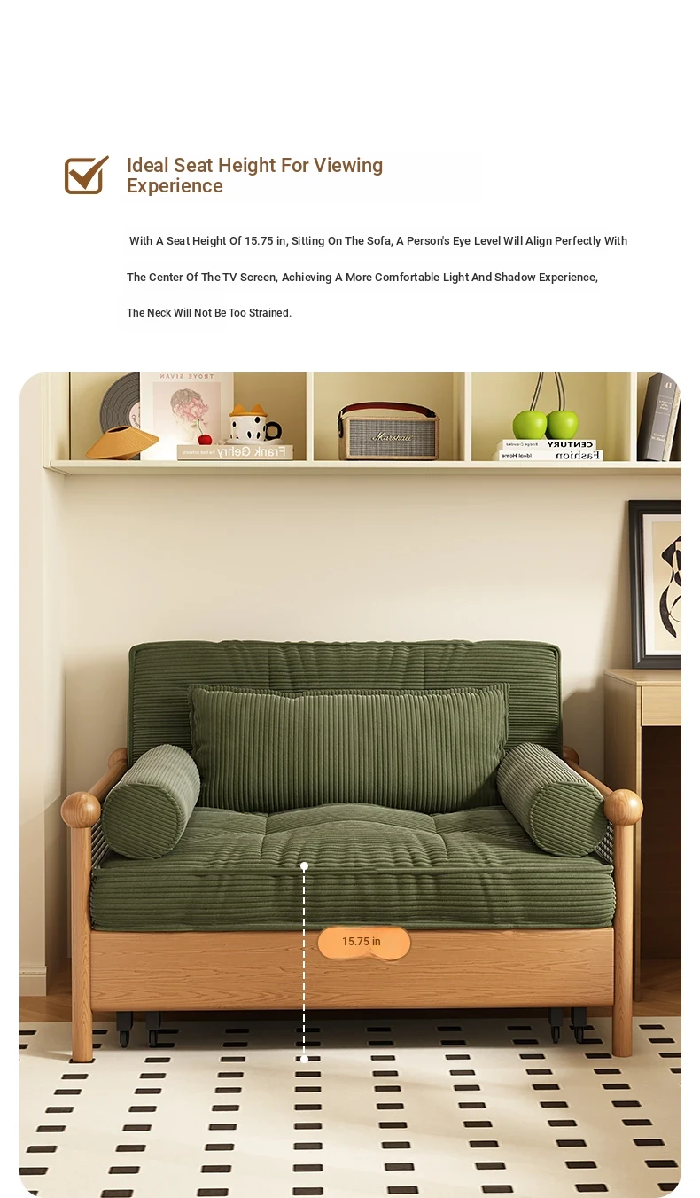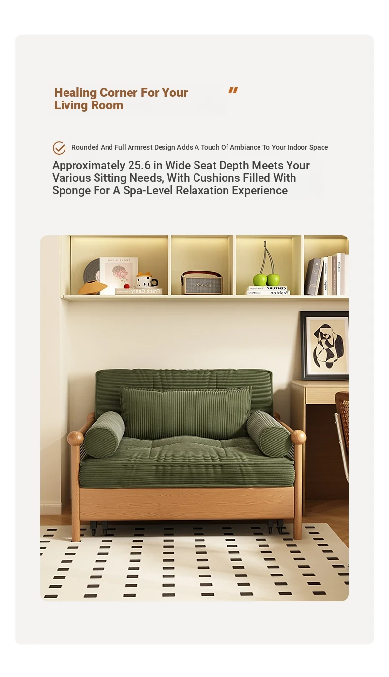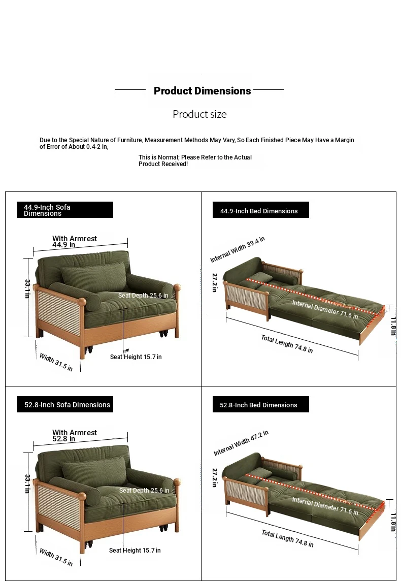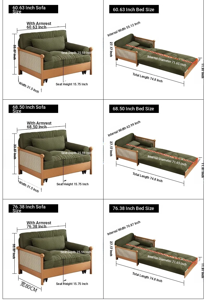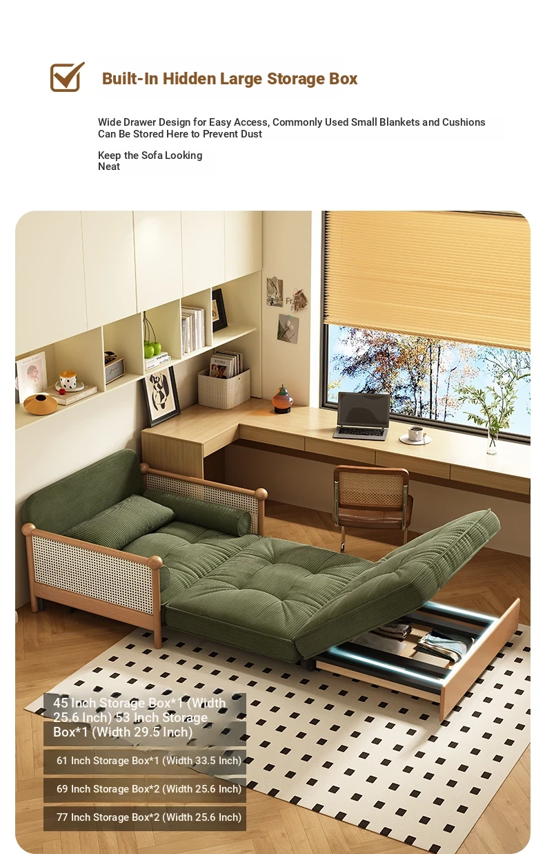 Elevate Your Space with Our Versatile Solid Wood Sofa Bed - Foldable, Expandable, and Perfect for Small Living Rooms or Balconies! Stylish Rattan and Fabric Design for Double Comfort and Functionality.