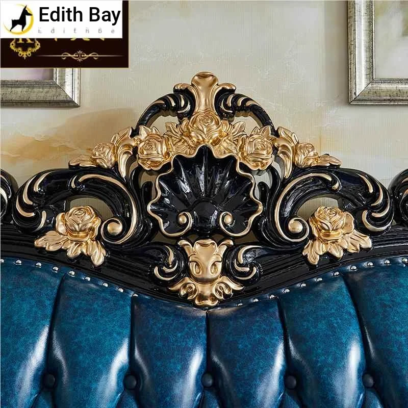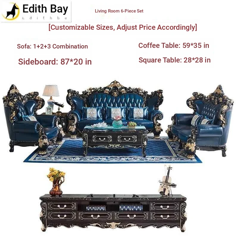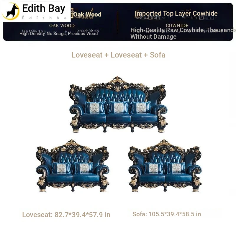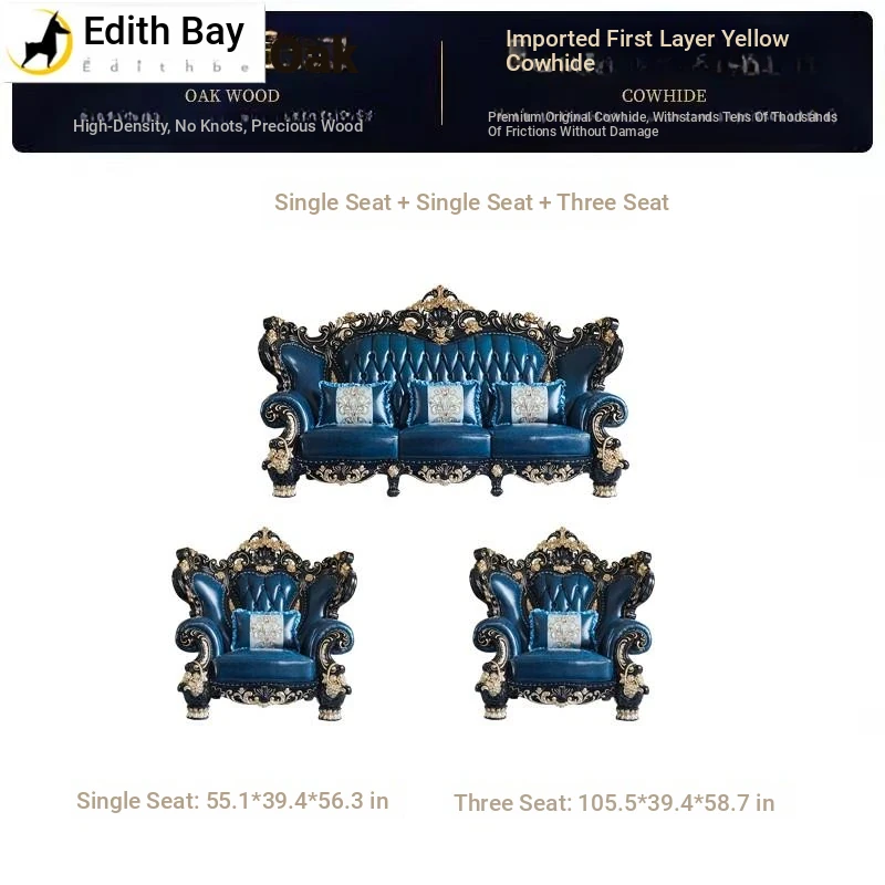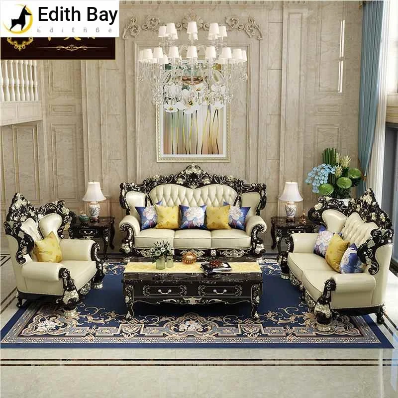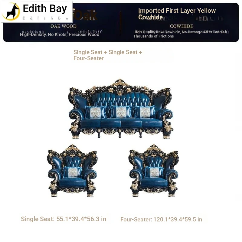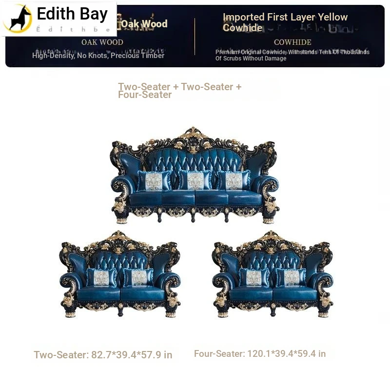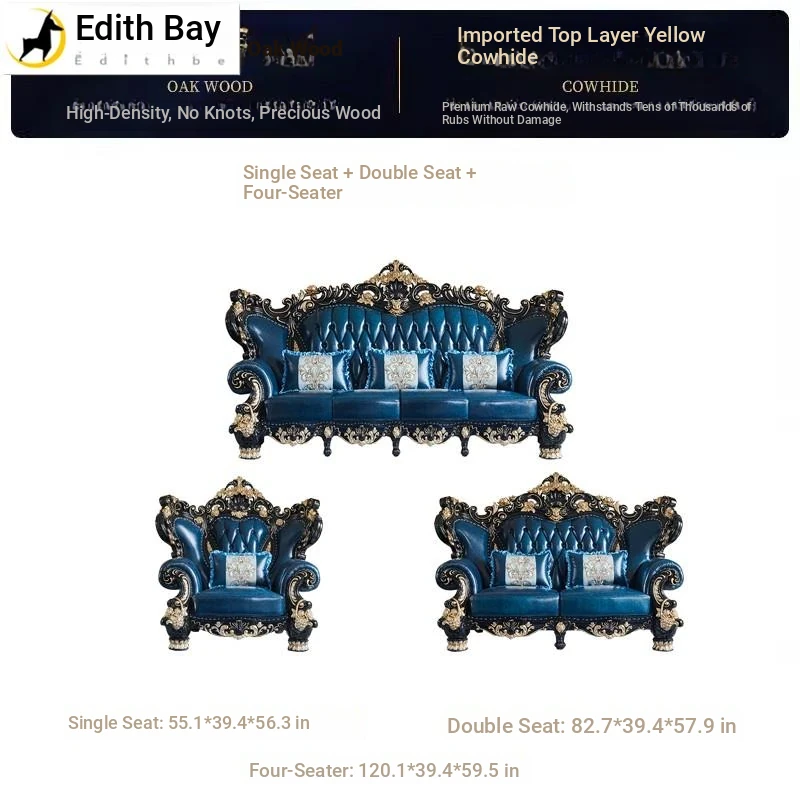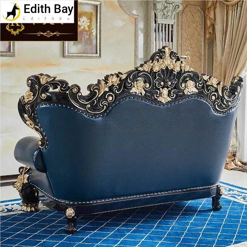 Foshan Direct Sale of European Style Black Walnut Genuine Leather Sofa Set - Luxurious Solid Wood Carved for Spacious Villas and Living Rooms
