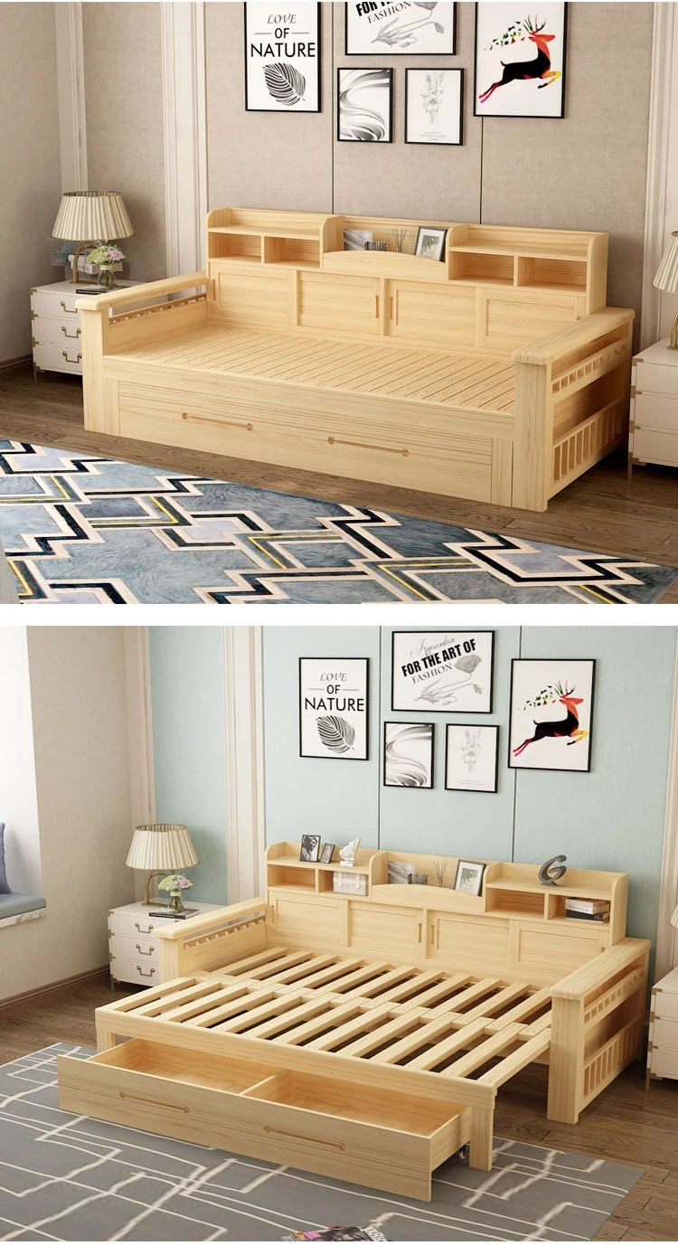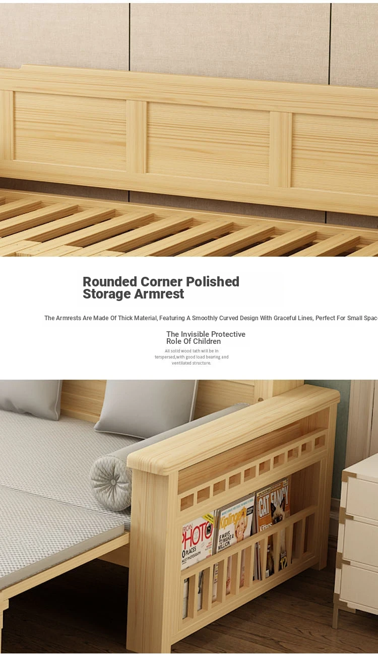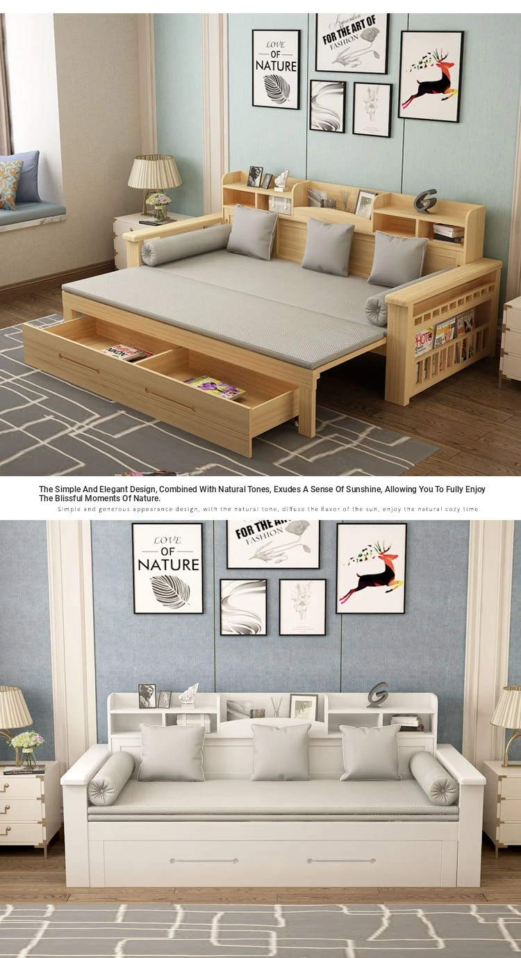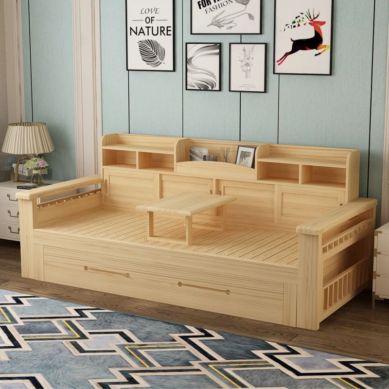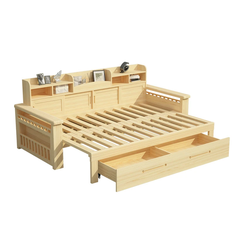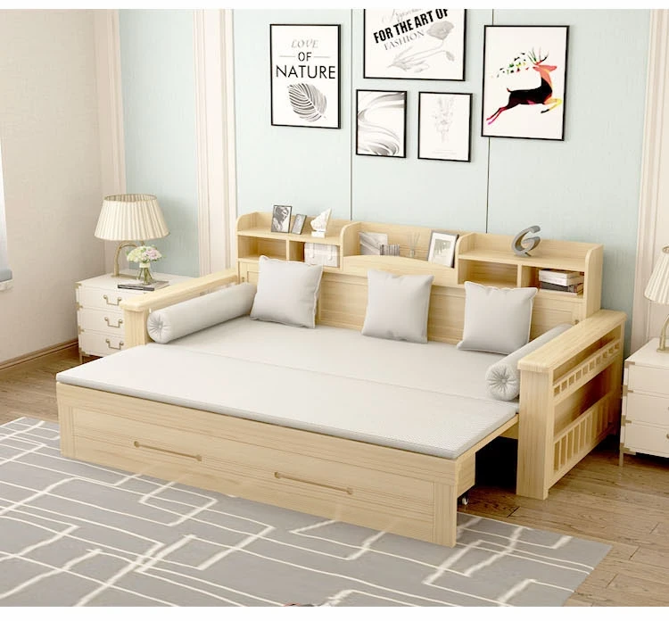 Hong Kong Free Shipping: Foldable Solid Wood Sofa Bed - Modern Minimalist Multi-Functional Design with Storage Cabinet for Small Living Rooms