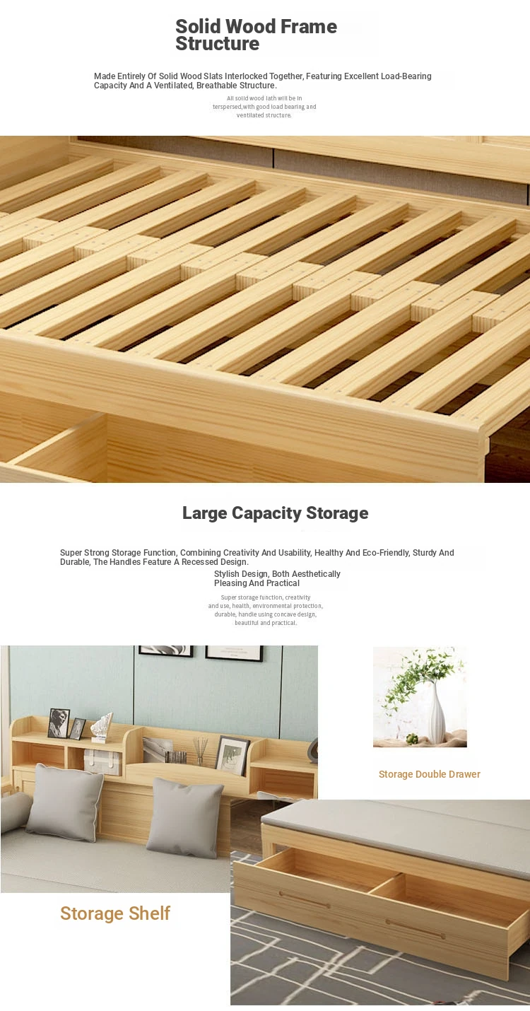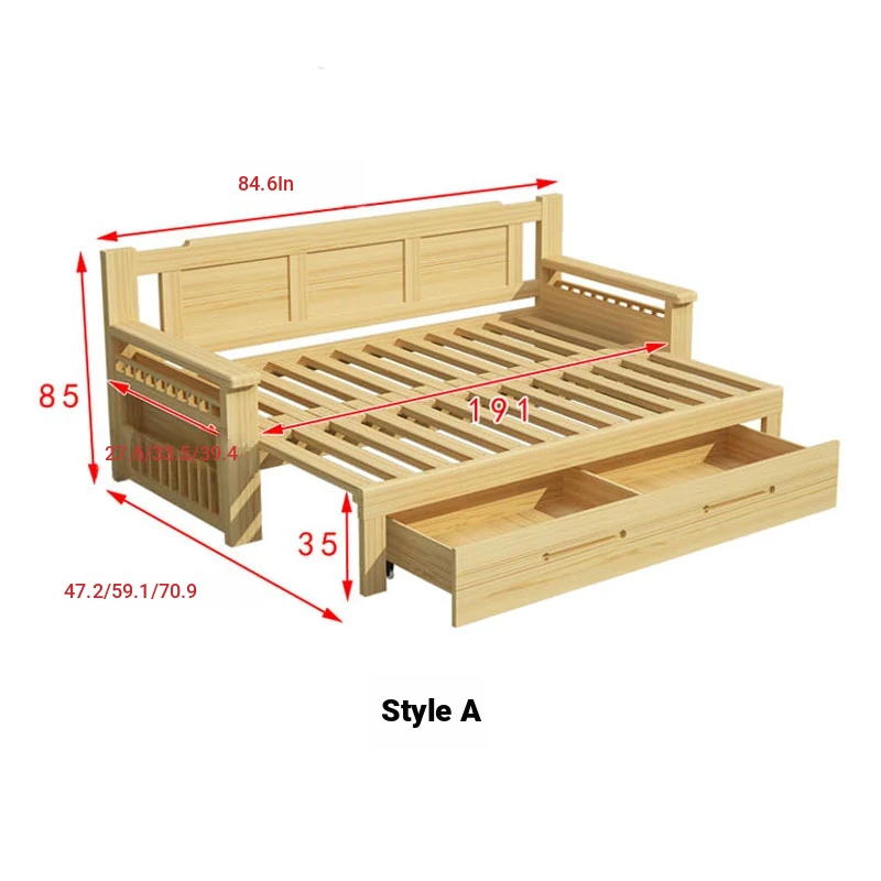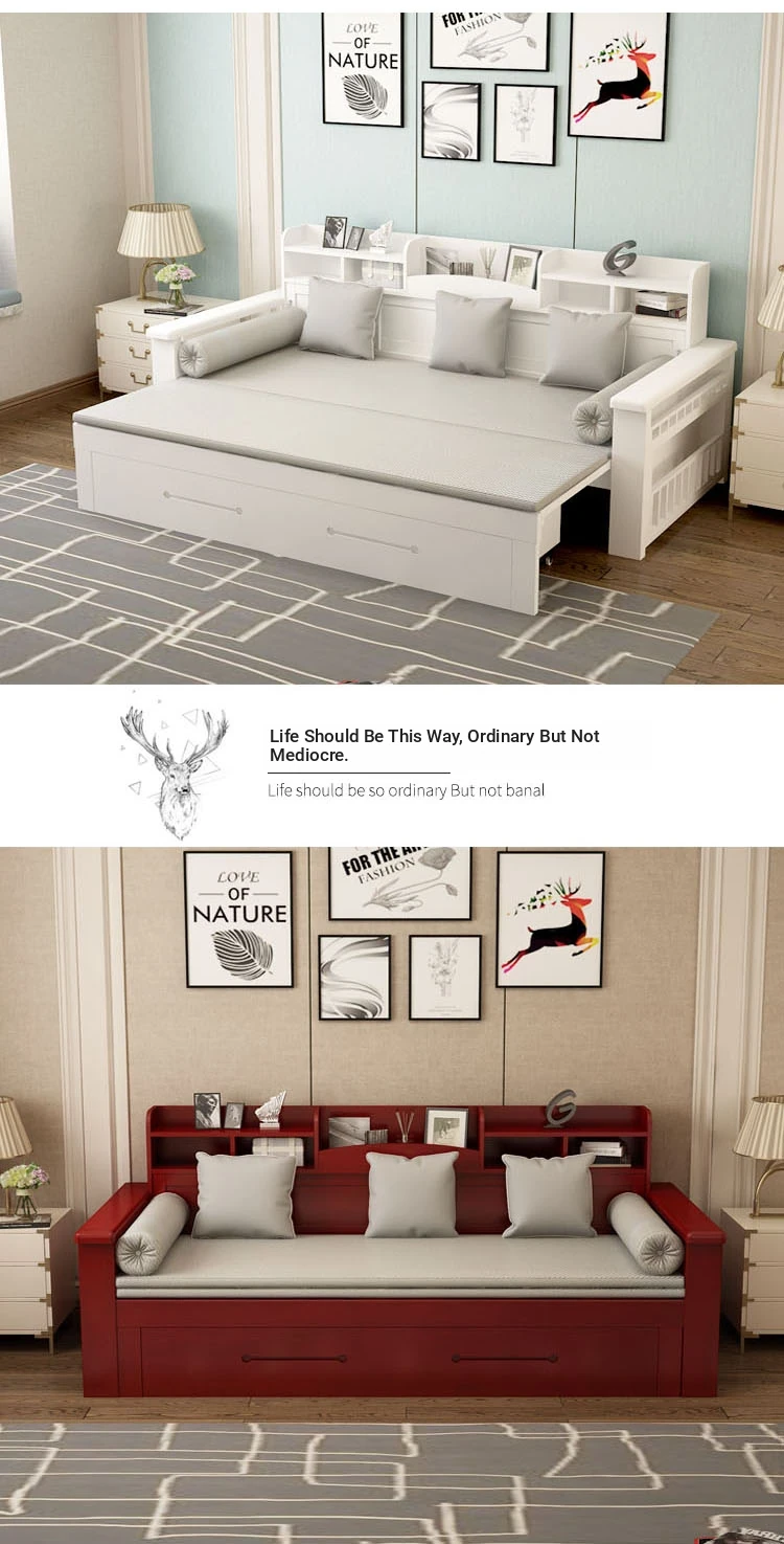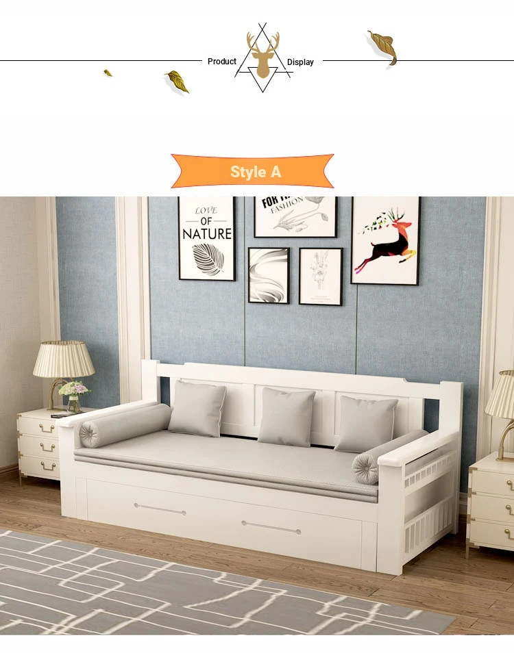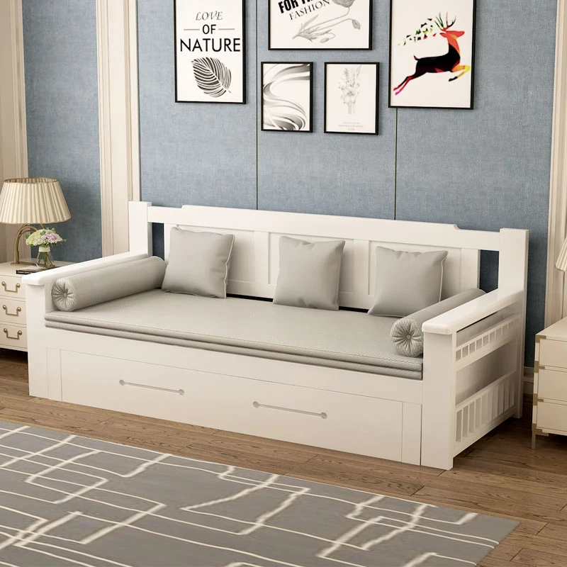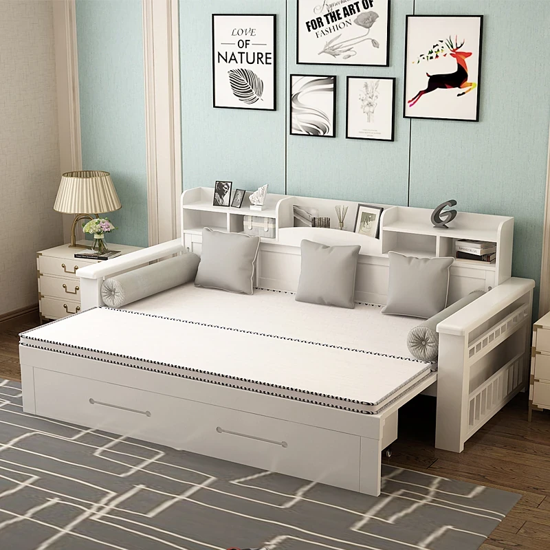 Hong Kong Free Shipping: Foldable Solid Wood Sofa Bed - Modern Minimalist Multi-Functional Design with Storage Cabinet for Small Living Rooms