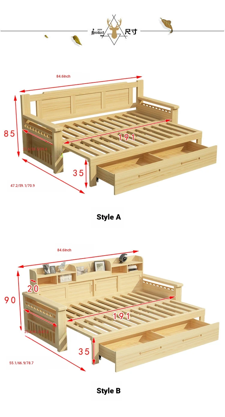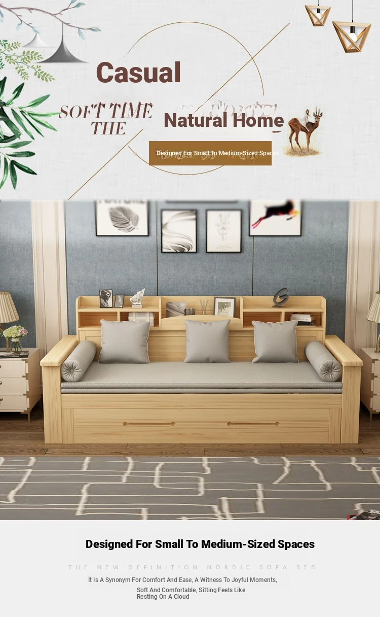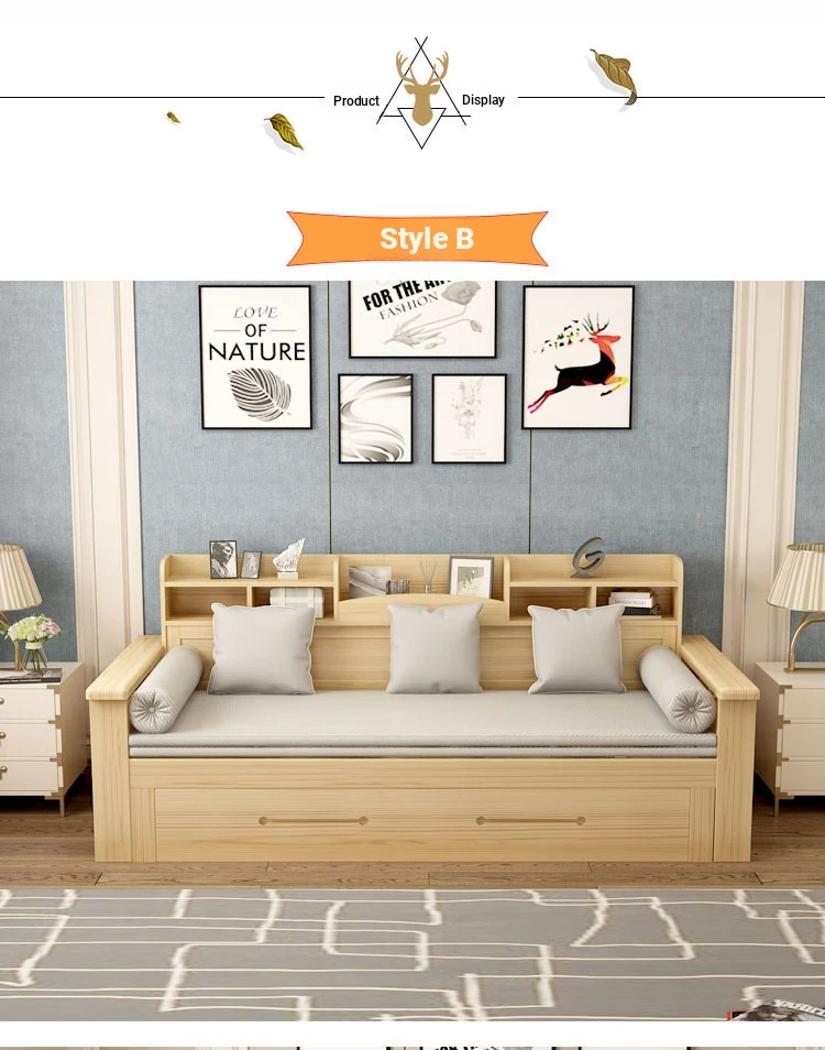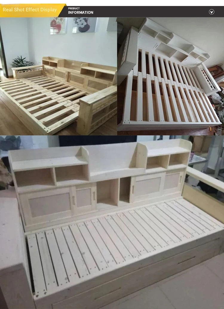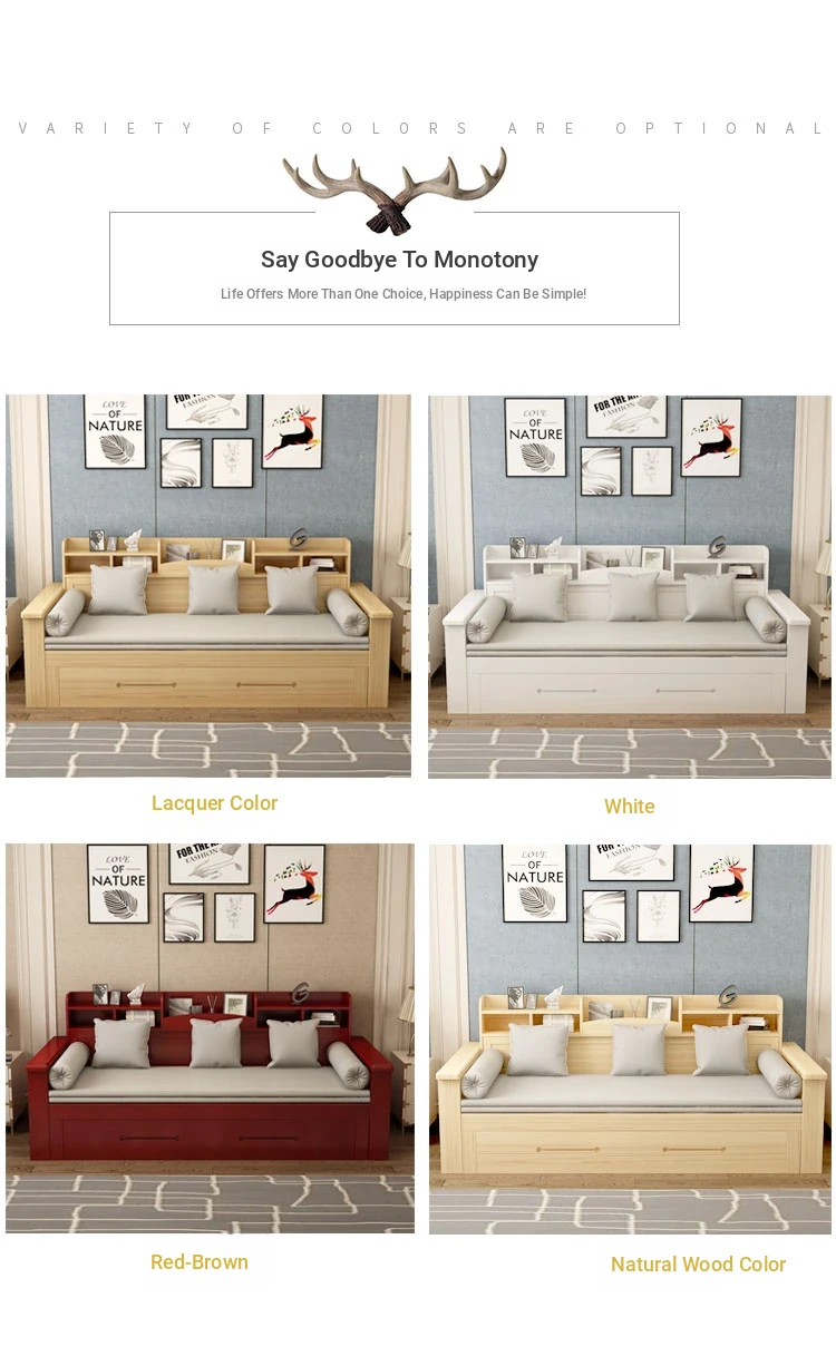 Hong Kong Free Shipping: Foldable Solid Wood Sofa Bed - Modern Minimalist Multi-Functional Design with Storage Cabinet for Small Living Rooms