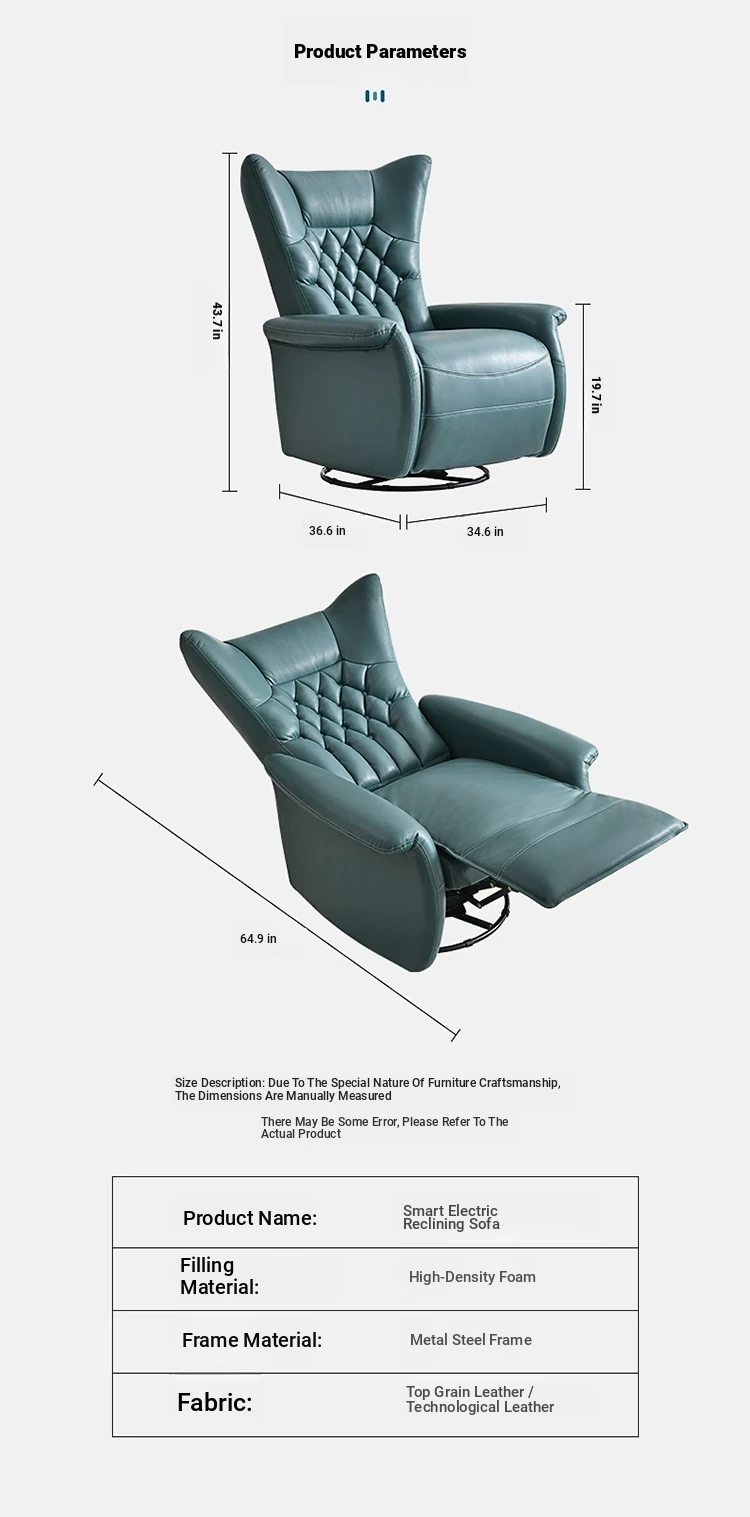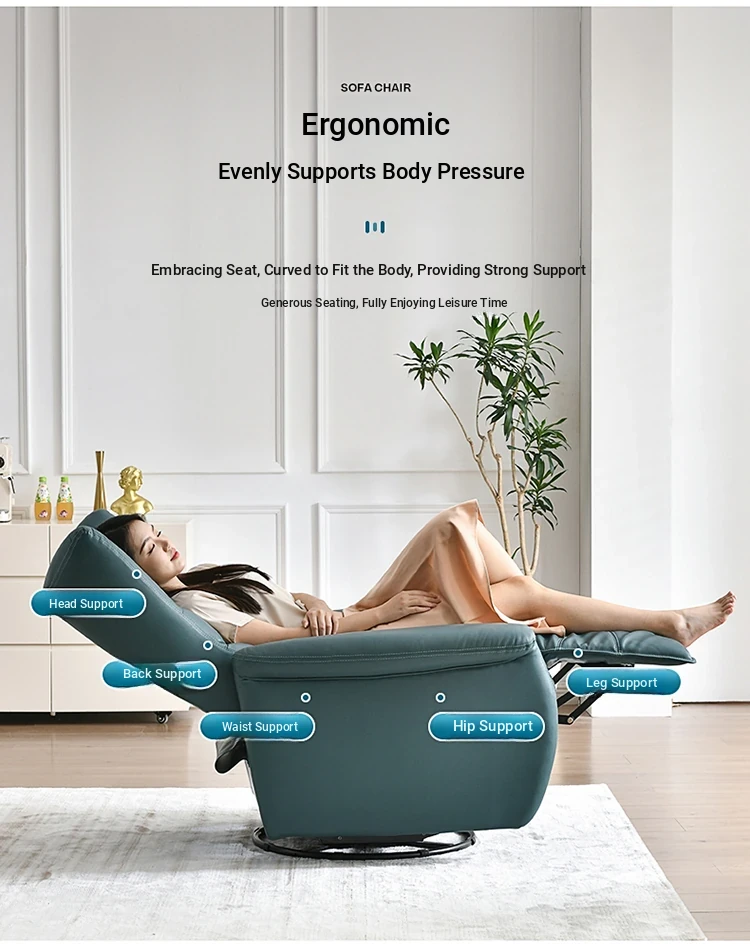 Imported German Electric Recliner Sofa Chair - Modern Minimalist Luxury Design, Genuine Leather, Multi-Functional Rotating Lounger Perfect for Relaxation