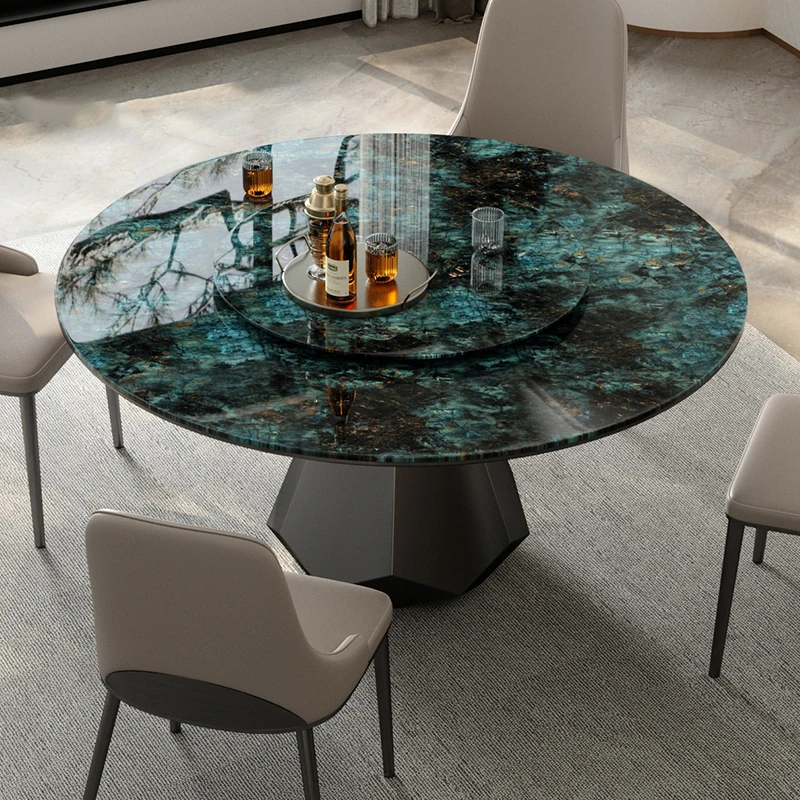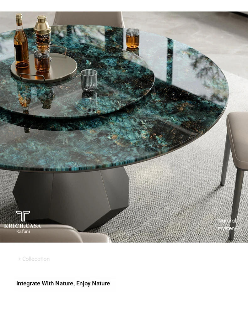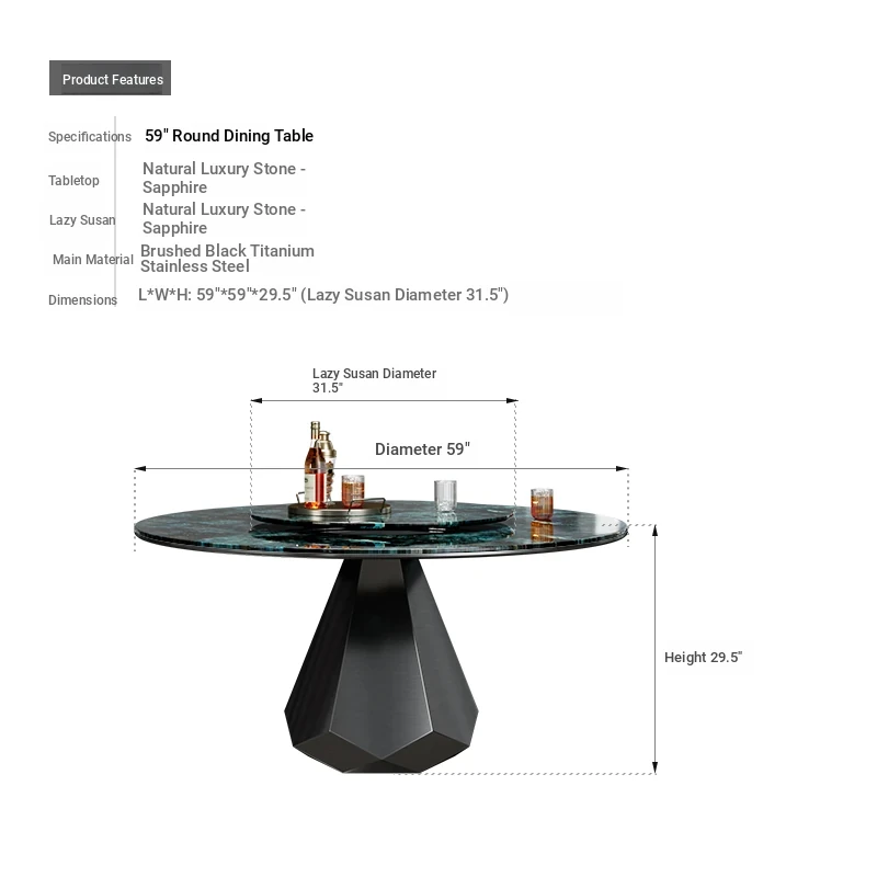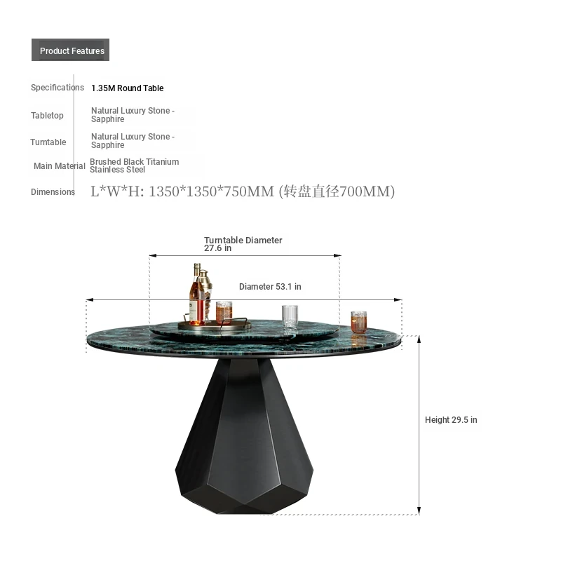 [Natural Luxury Stone Sapphire] 53.15 in Dining Table (Black Titanium Alloy)