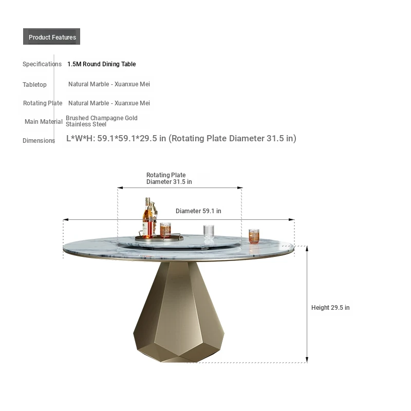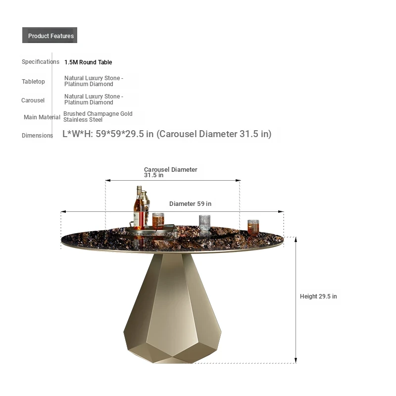 [Natural Luxury Stone Platinum Diamond] 59.06 in Dining Table (Champagne Gold)
