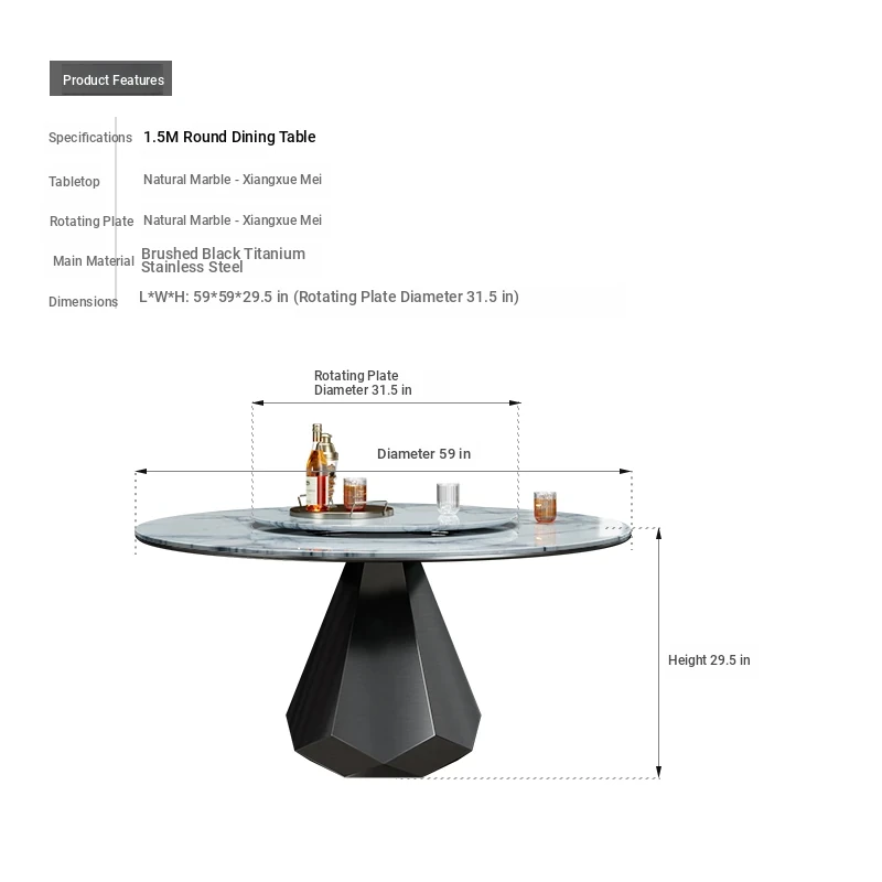 [Natural Luxury Stone Platinum Diamond] 59.06 in Dining Table (Black Titanium Alloy)