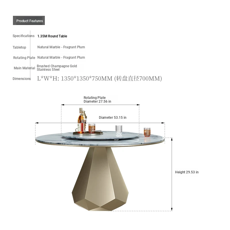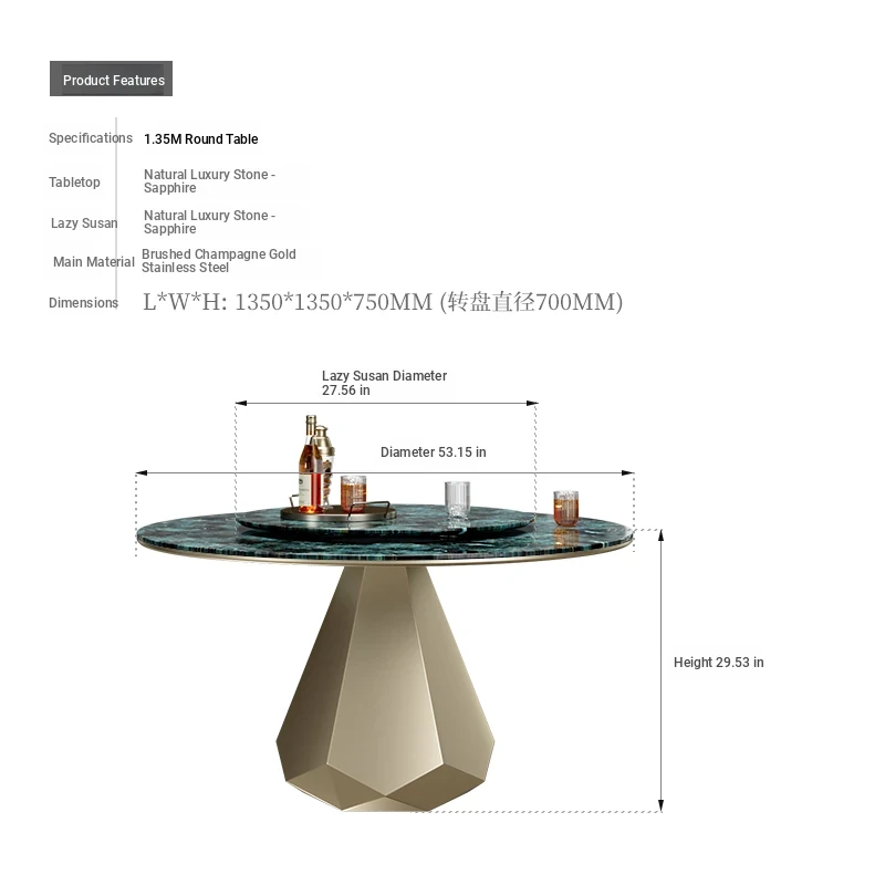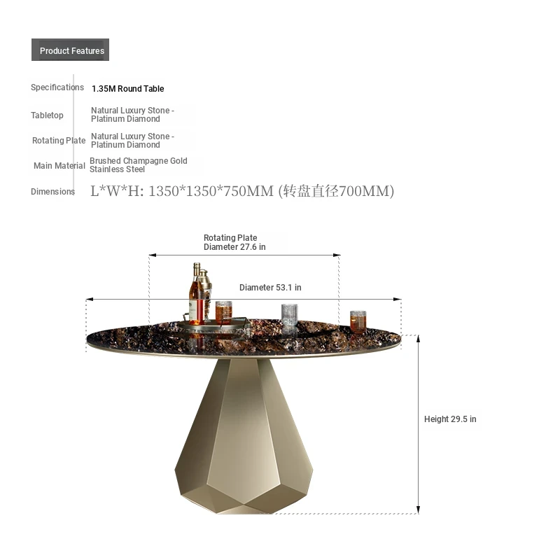 [Natural Luxury Stone Platinum Diamond] 53.15 in Dining Table (Champagne Gold)
