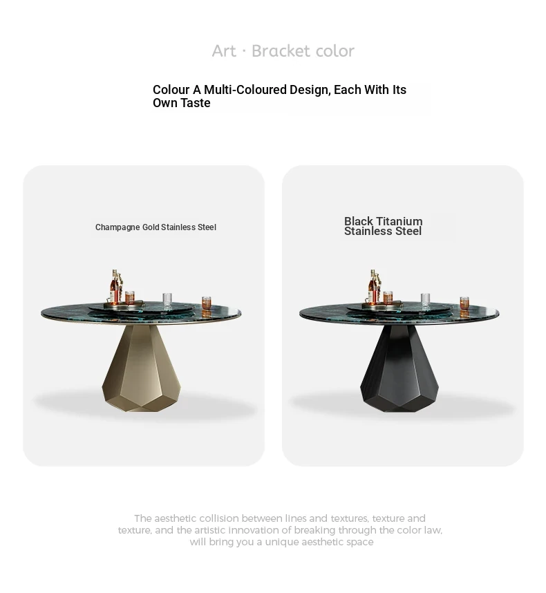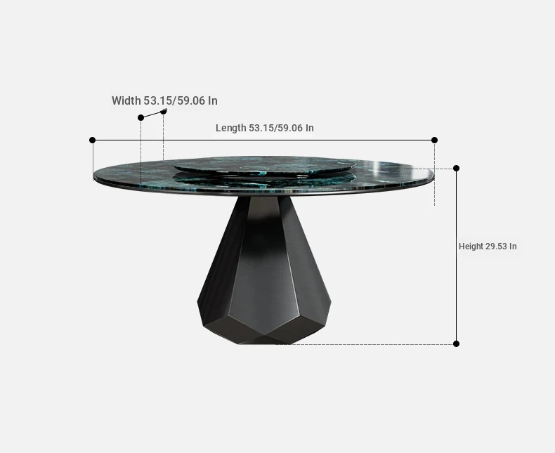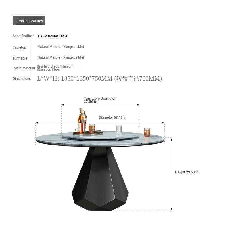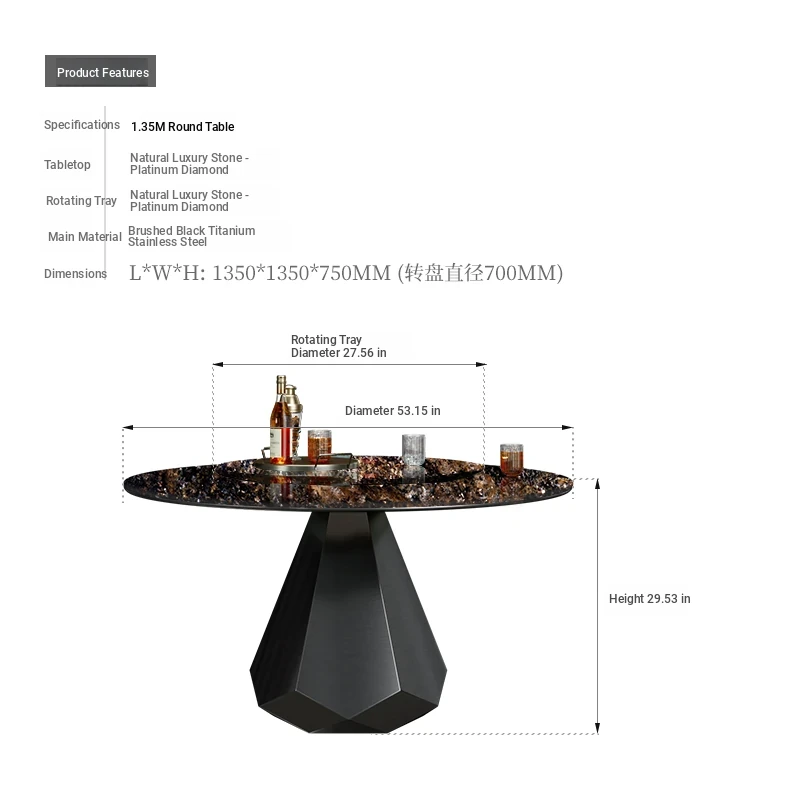 [Natural Luxury Stone Platinum Diamond] 53.15 in Dining Table (Black Titanium Alloy)