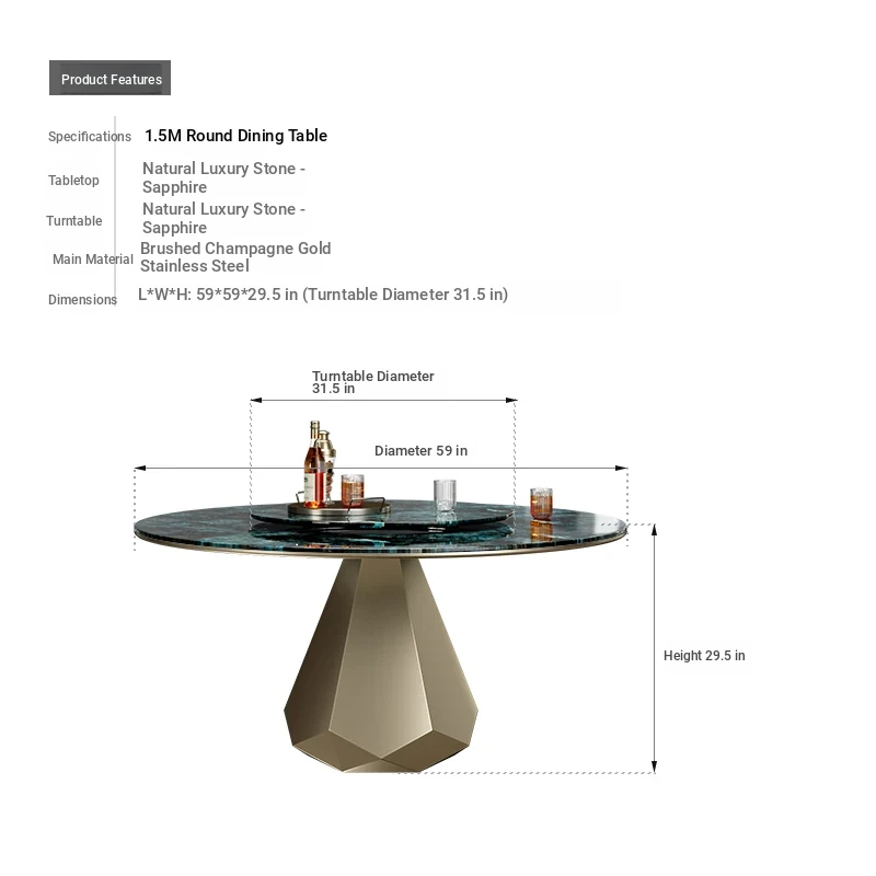 [Natural Luxury Stone Sapphire] 59.06 in Dining Table (Champagne Gold)