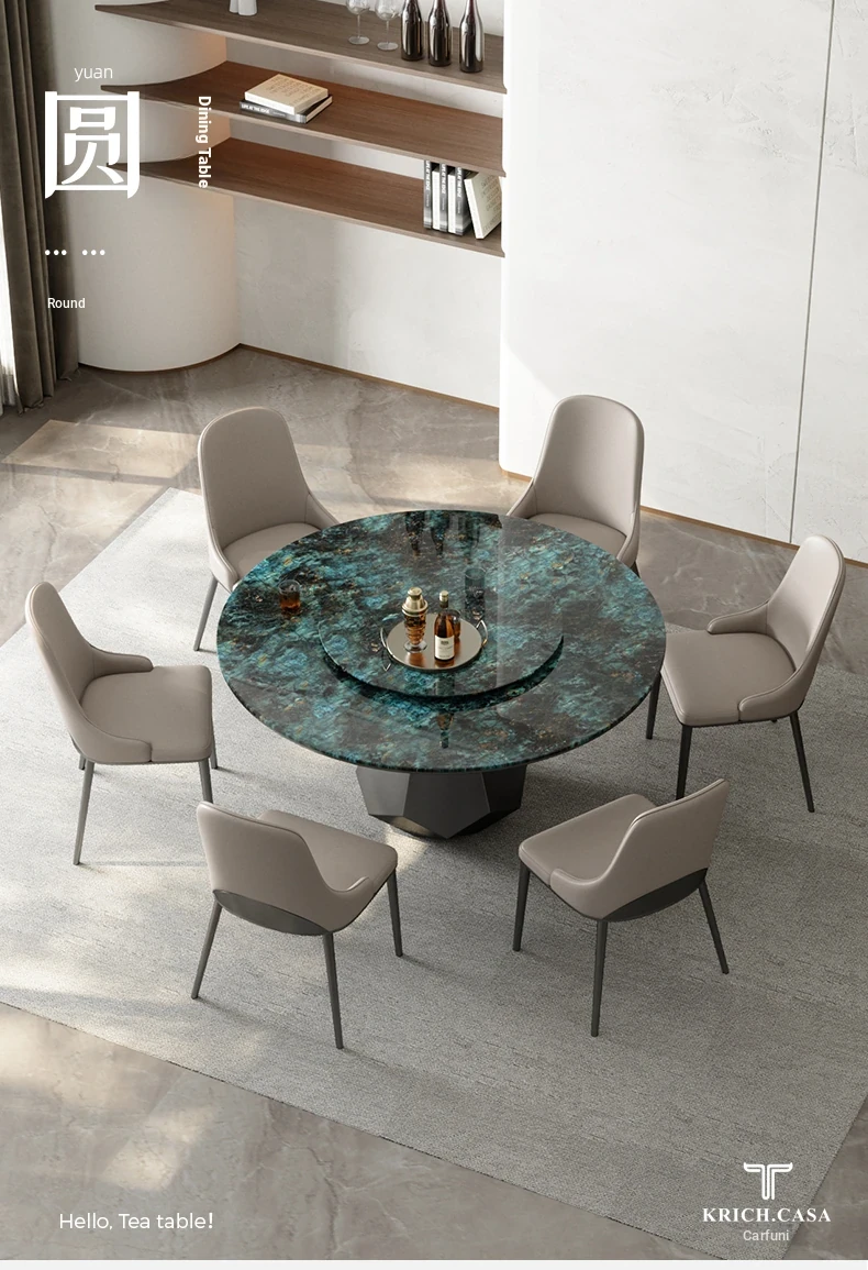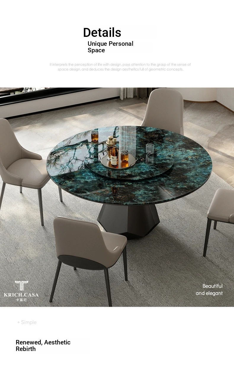 Italian Luxury Natural Marble Dining Table and Chair Set - Elegant Round Dining Table for Upscale Villas - 2023 Restaurant Furniture Collection