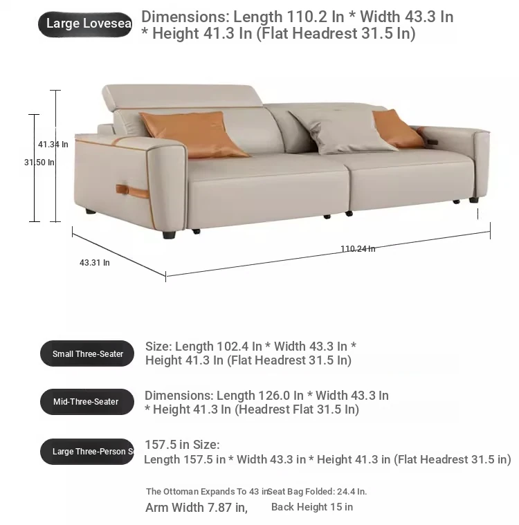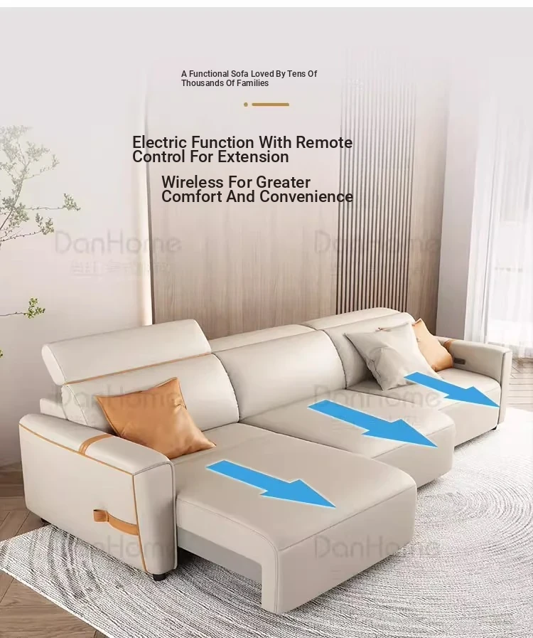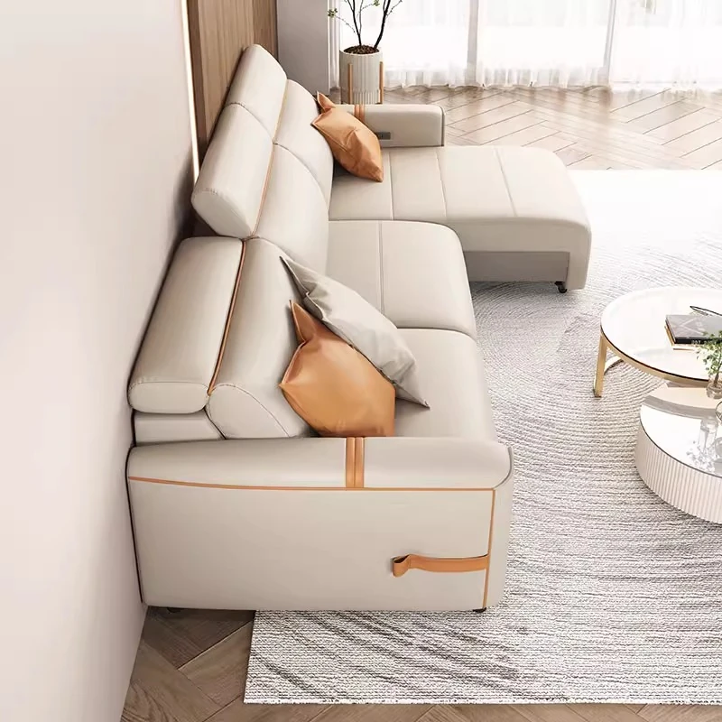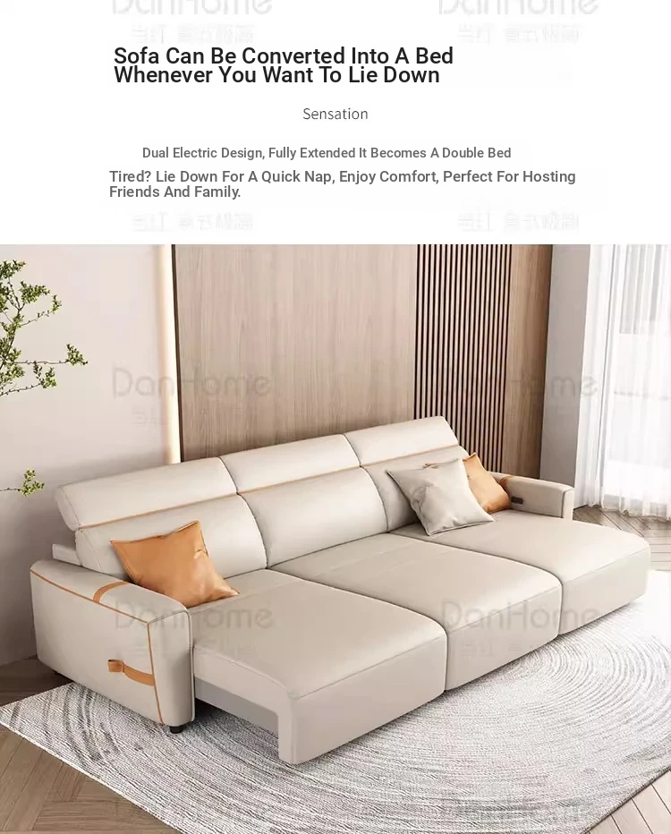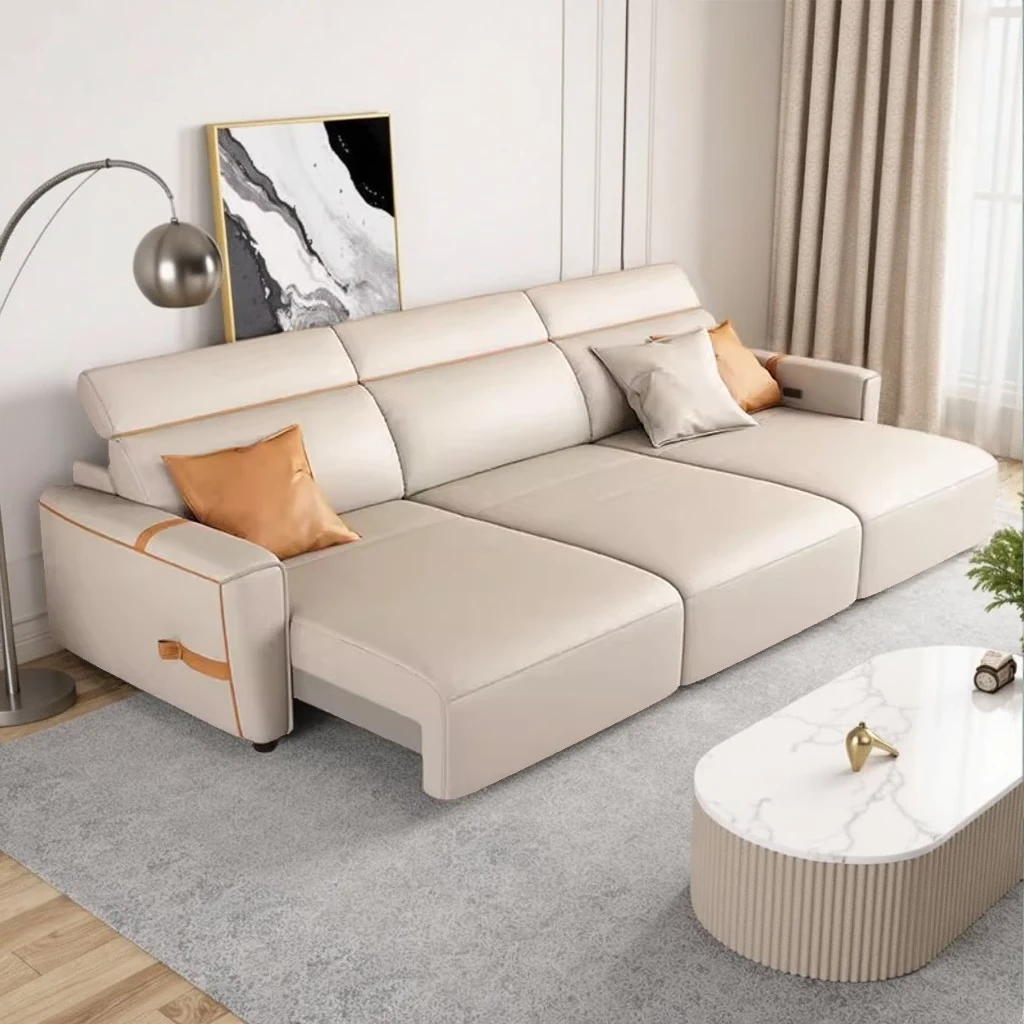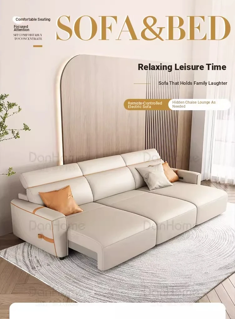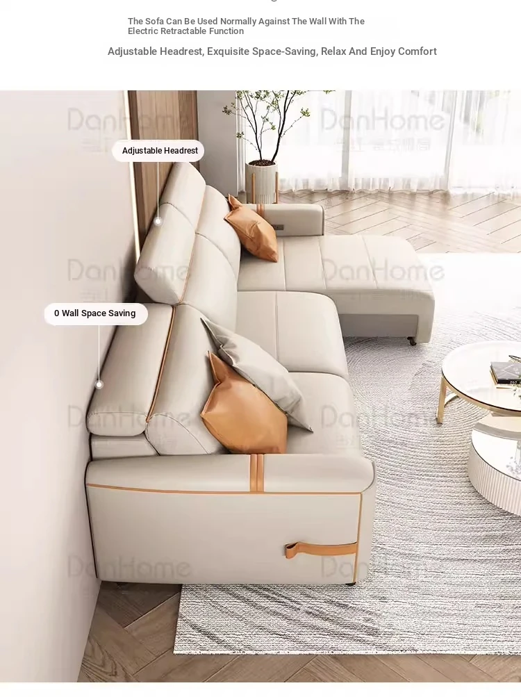 Italian Minimalist Electric Leather Sofa for Small Spaces - Wall-Mounted, Zero Clearance, and Retractable Sleeper Function, Perfect for Compact Living Rooms!
