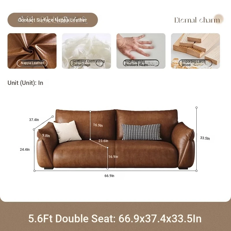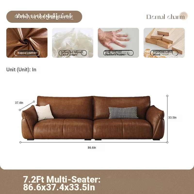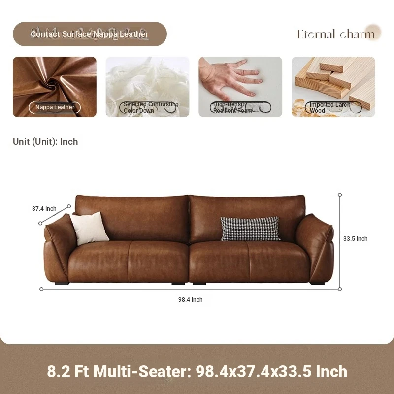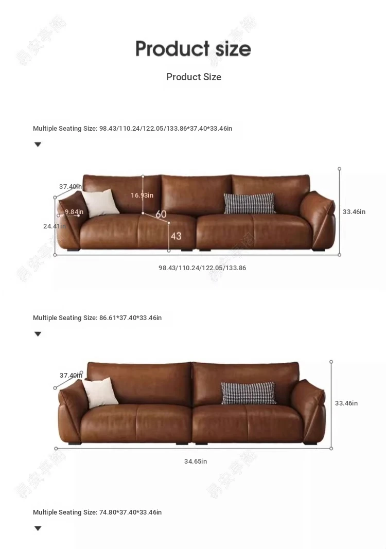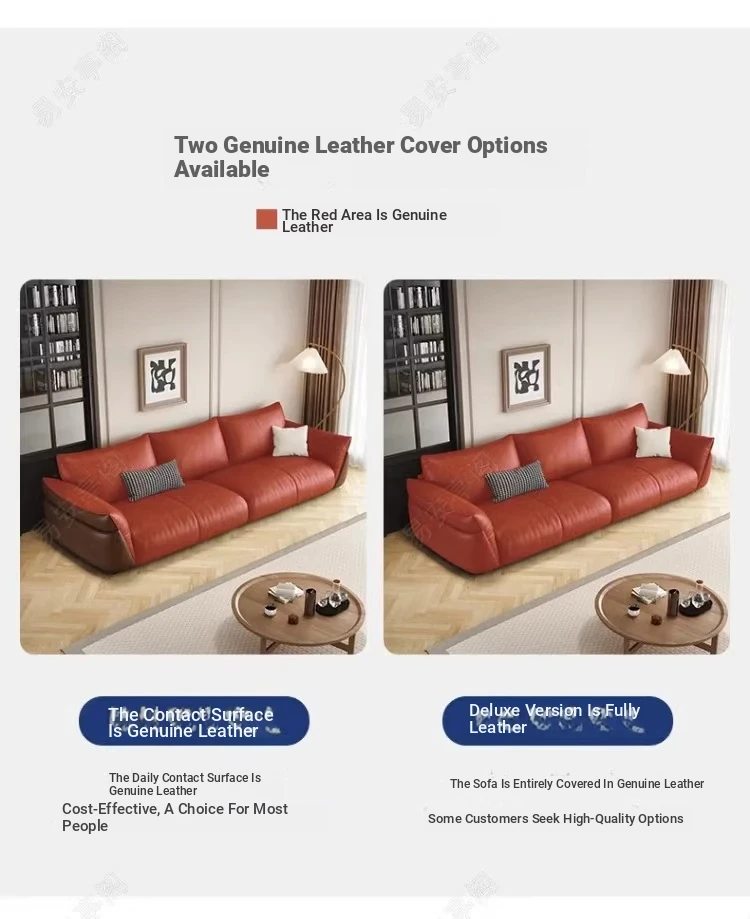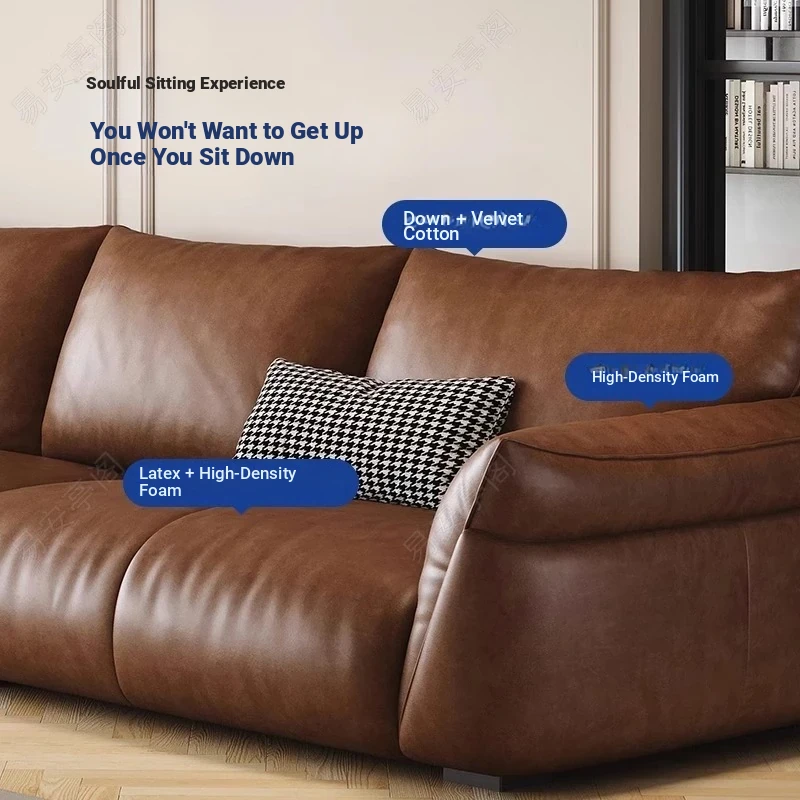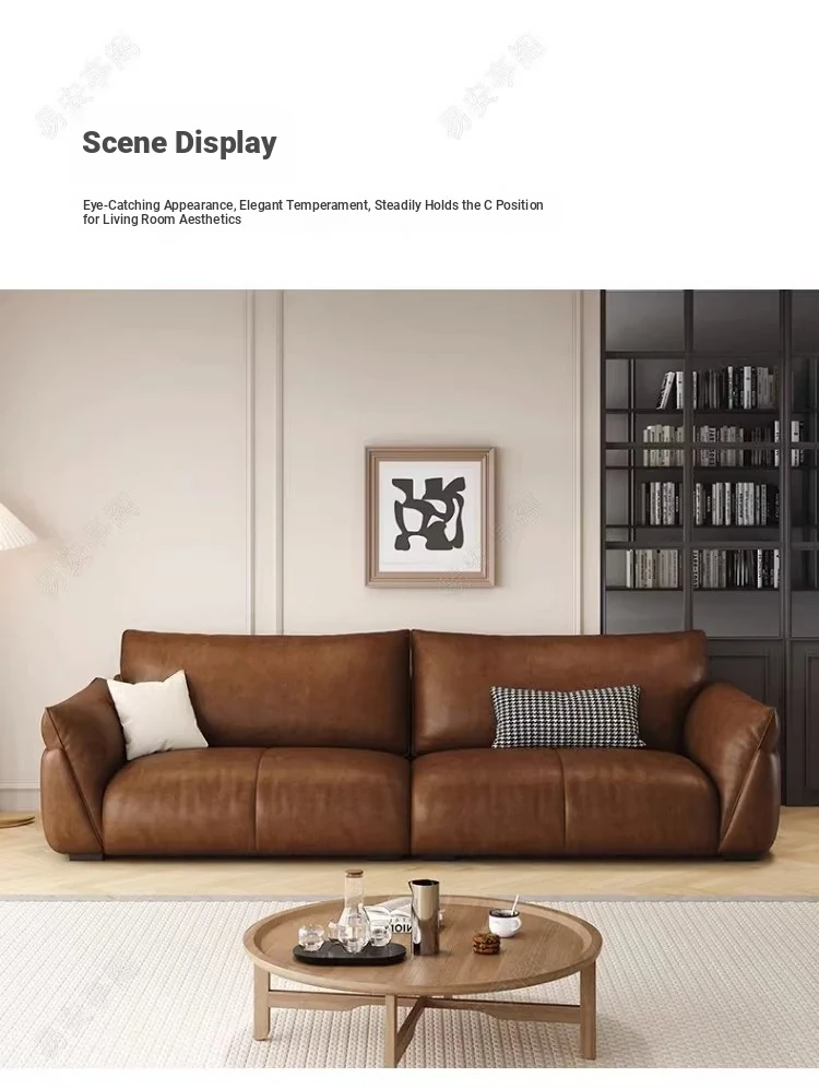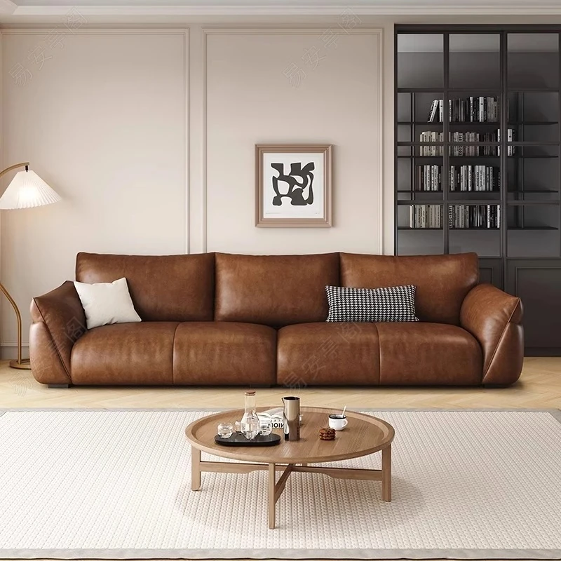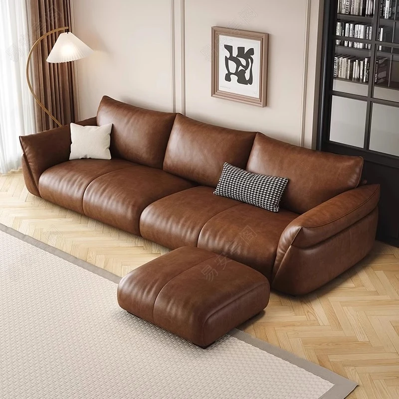 Italian Minimalist Genuine Leather Sofa for Small Spaces – Modern Black 3-4 Seater for Living Room, Perfect for Stylish and Compact Homes