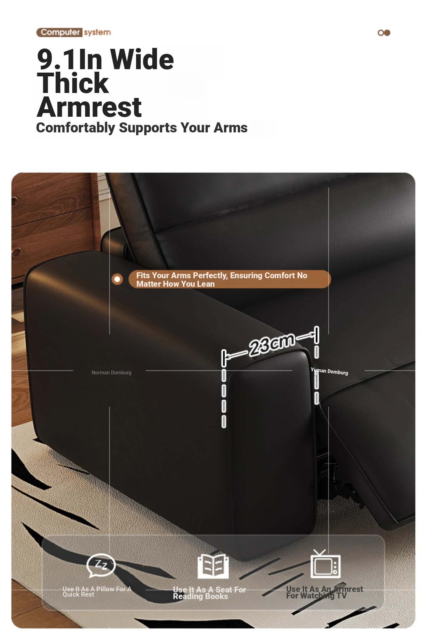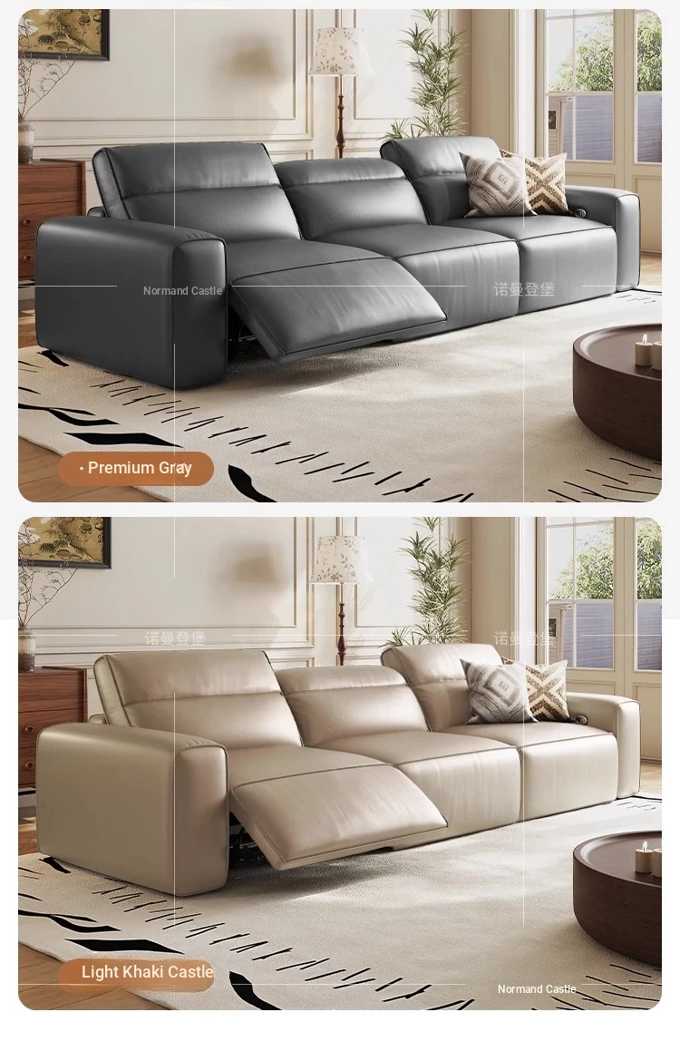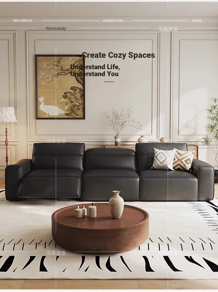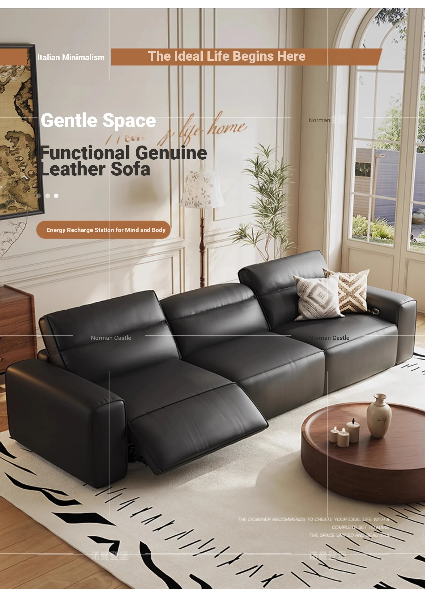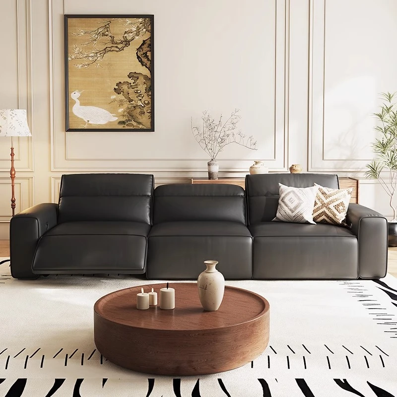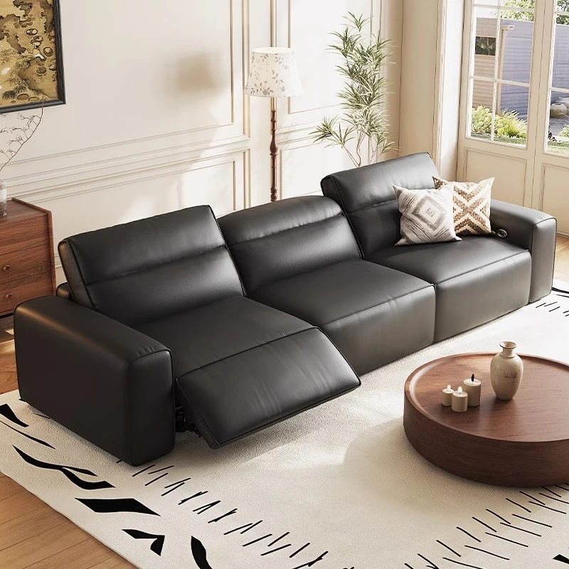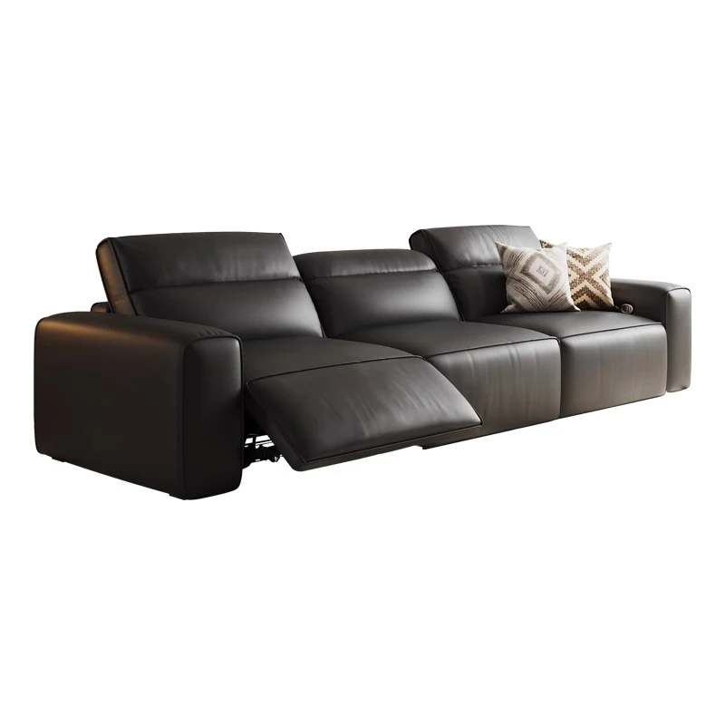 Italian Minimalist Leather Sofa with Electric Function - Luxurious Black Tofu Block Design for Your Living Room, Featuring Premium Genuine Leather and Spacious Layout for Ultimate Comfort