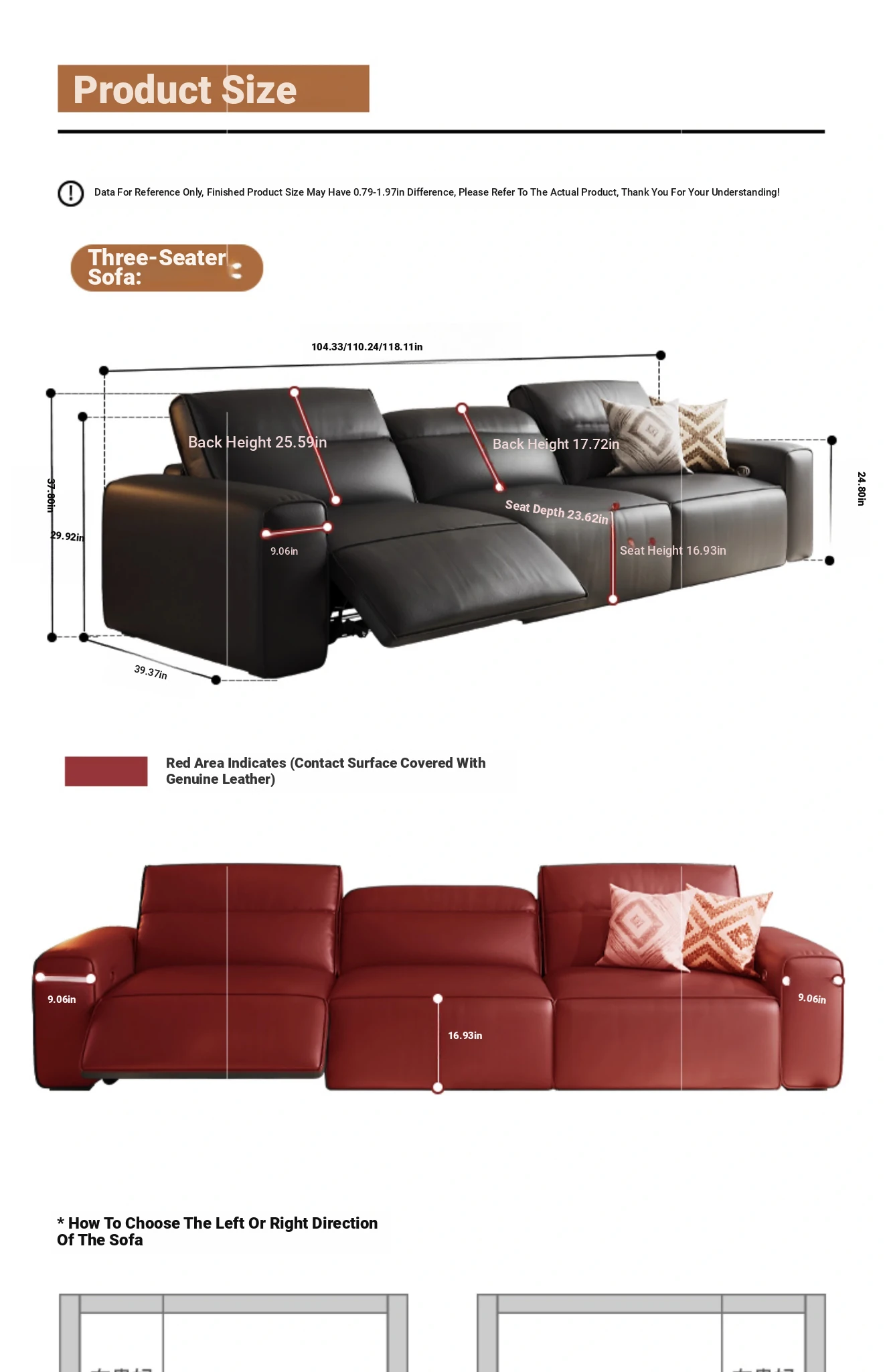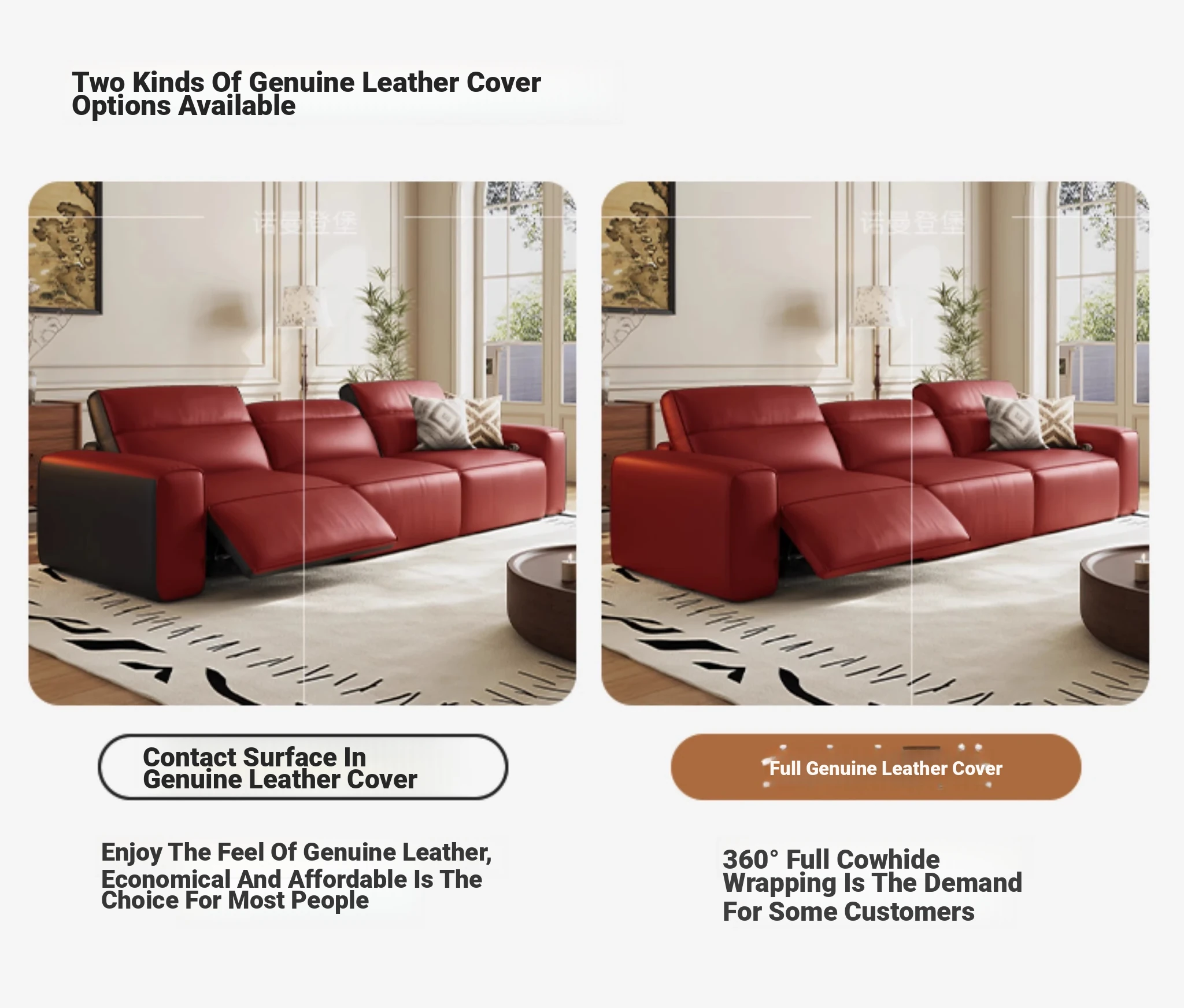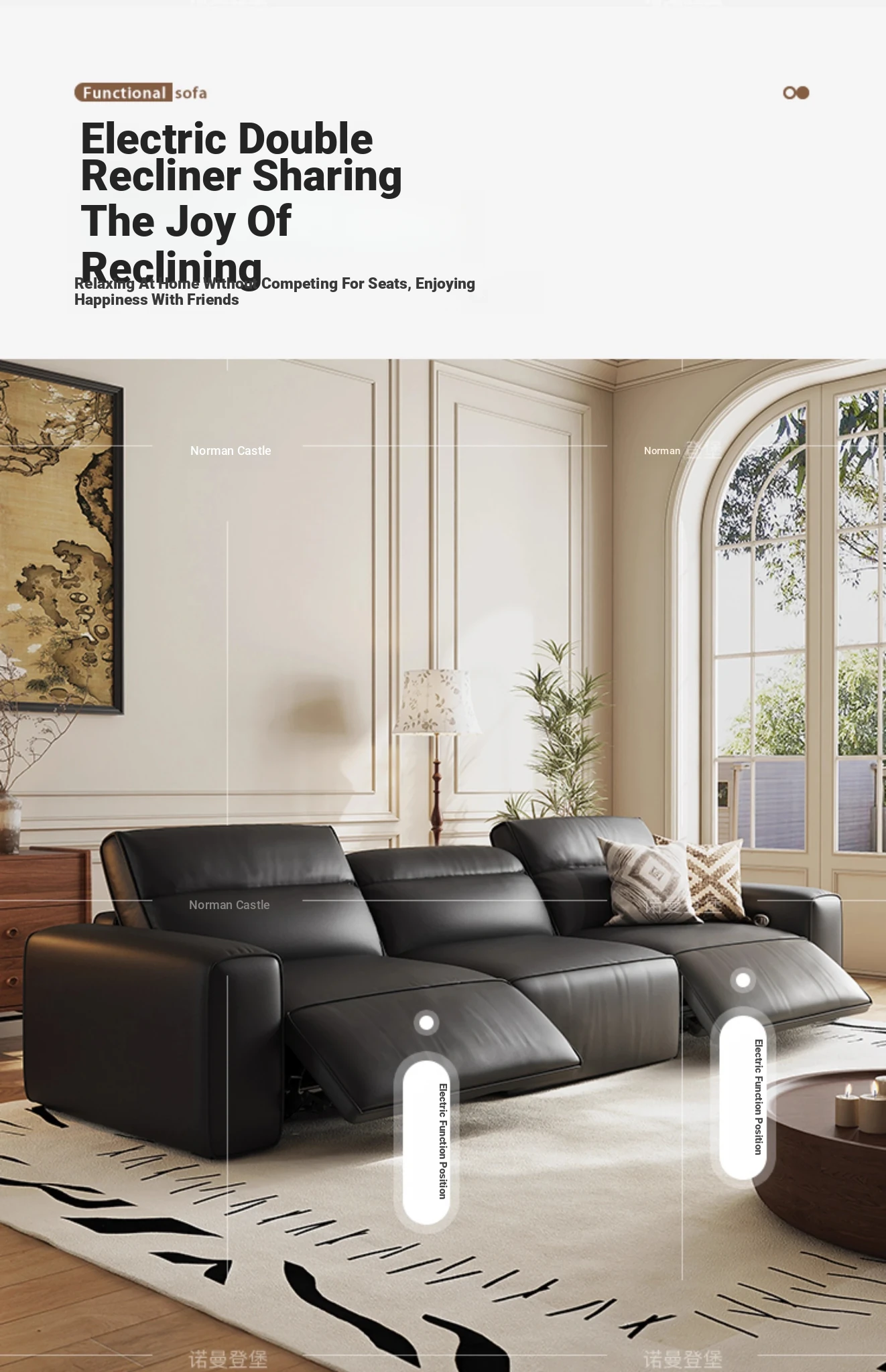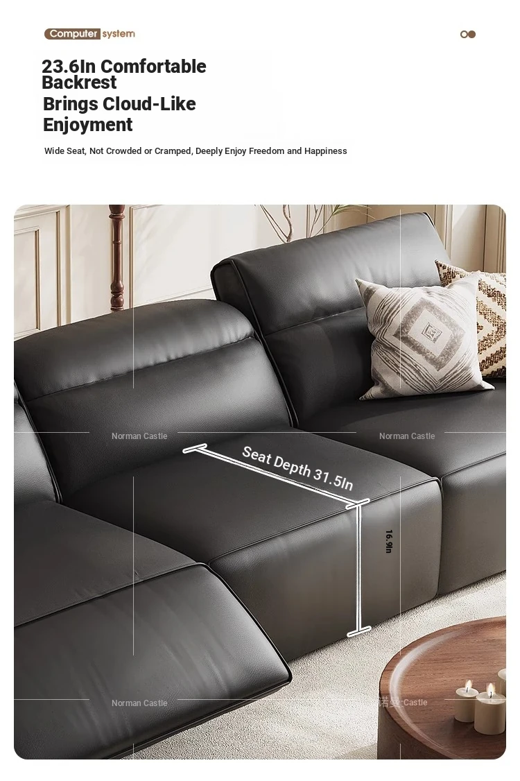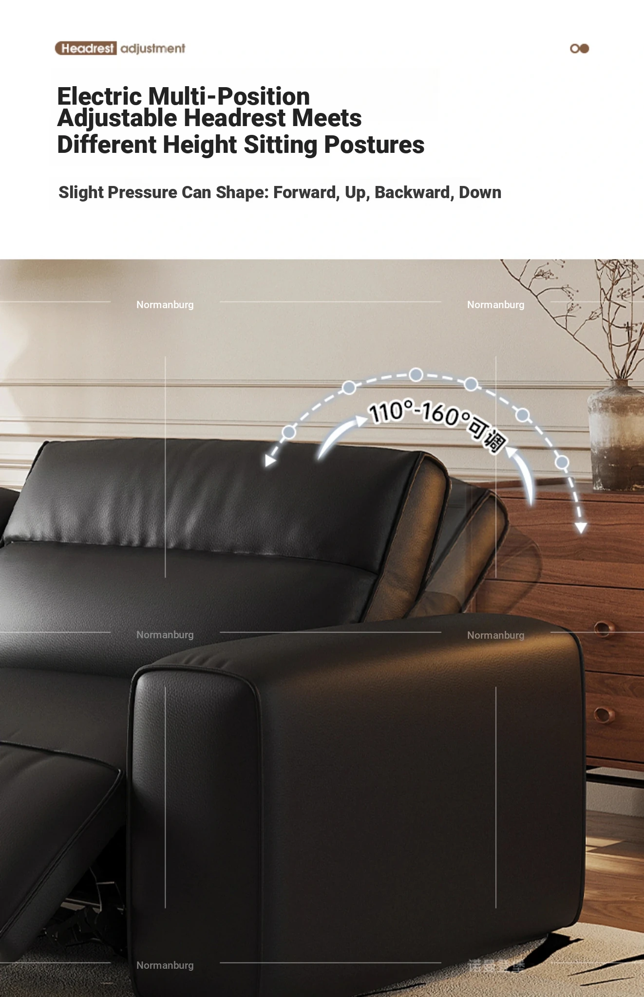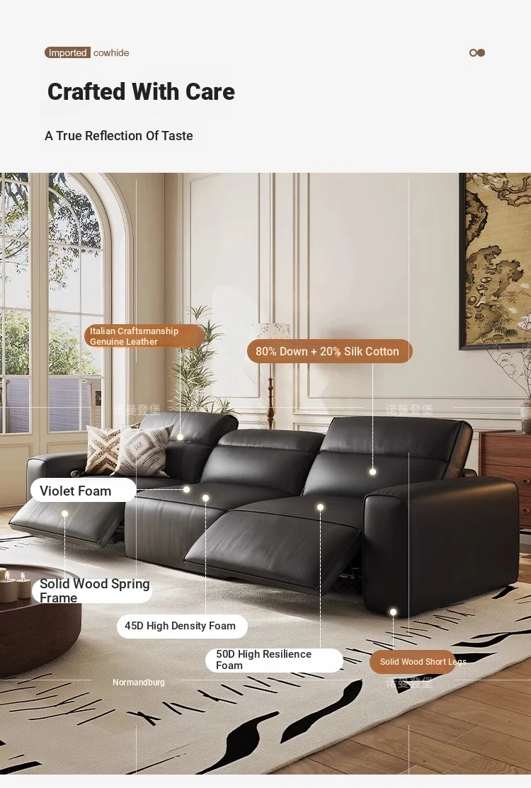 Italian Minimalist Leather Sofa with Electric Function - Luxurious Black Tofu Block Design for Your Living Room, Featuring Premium Genuine Leather and Spacious Layout for Ultimate Comfort