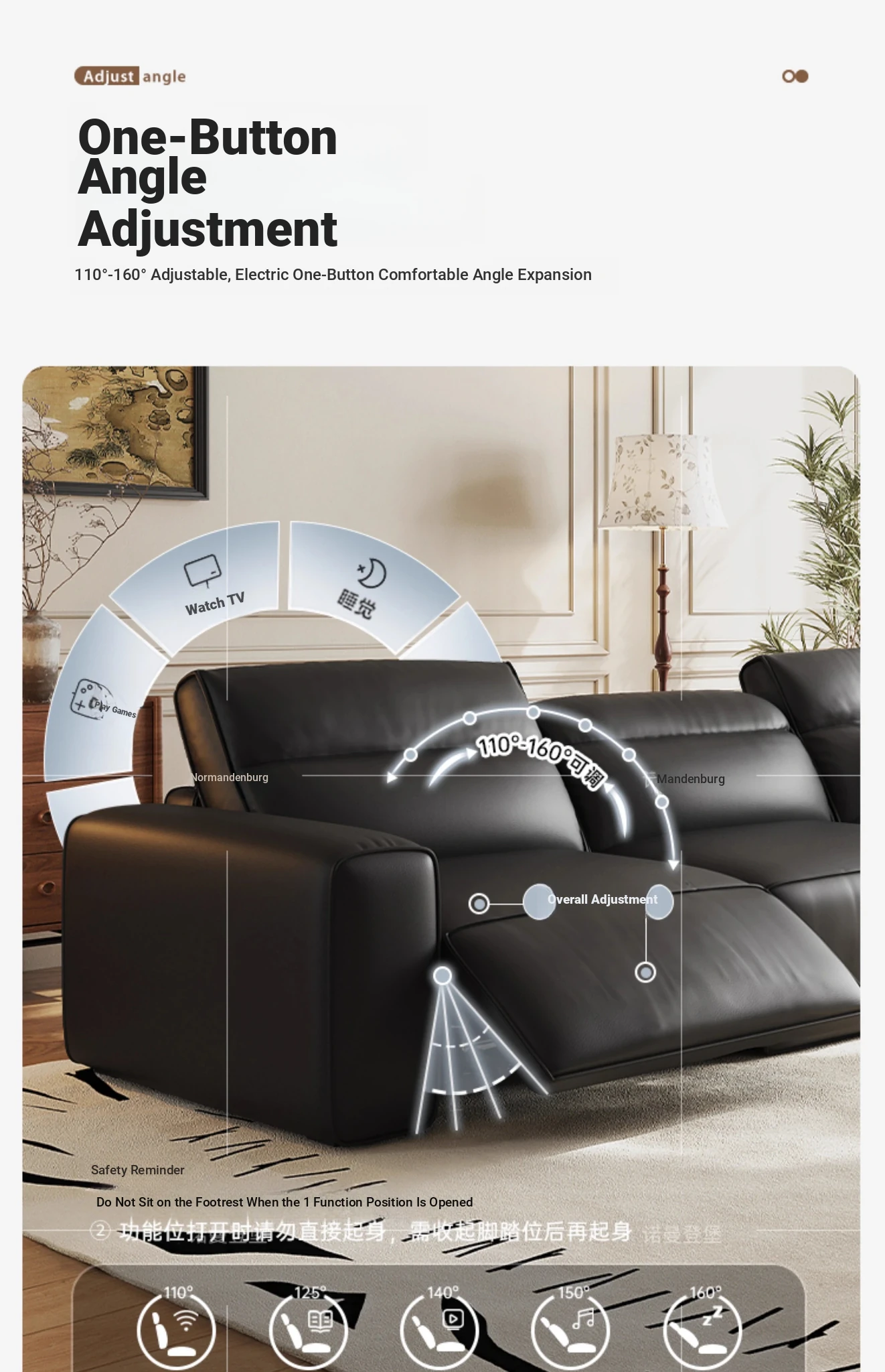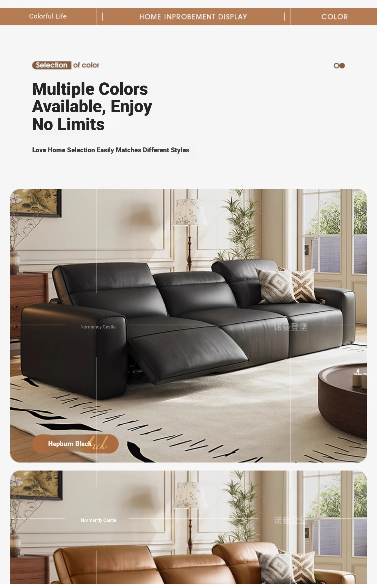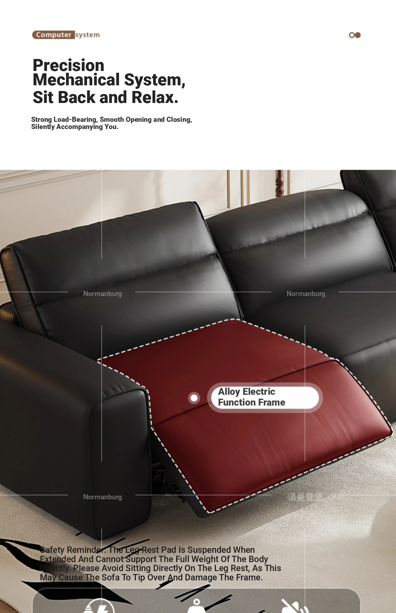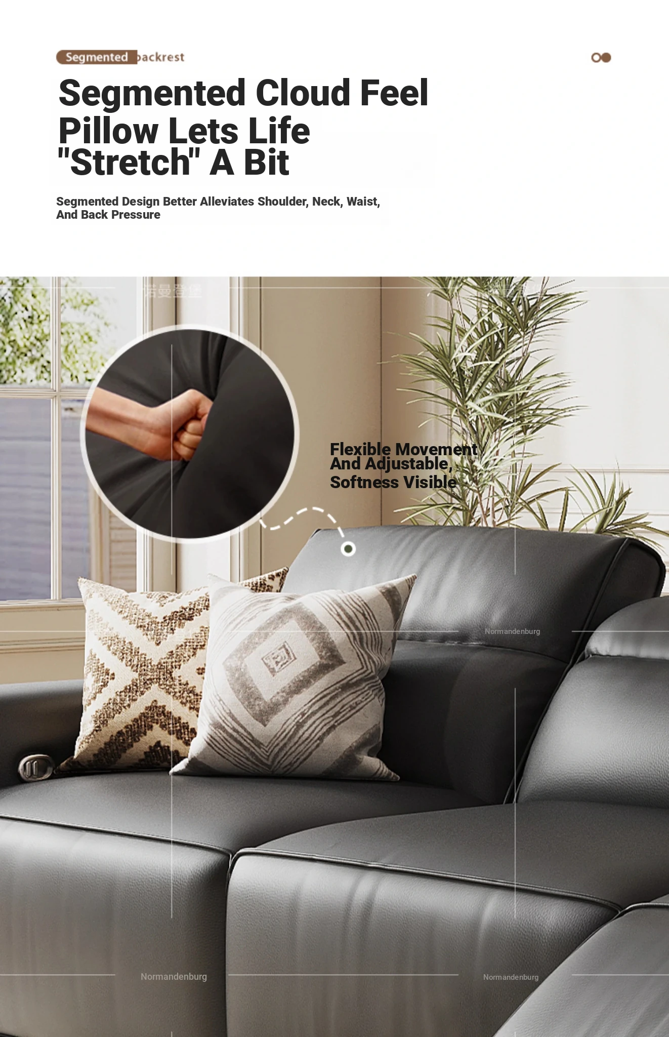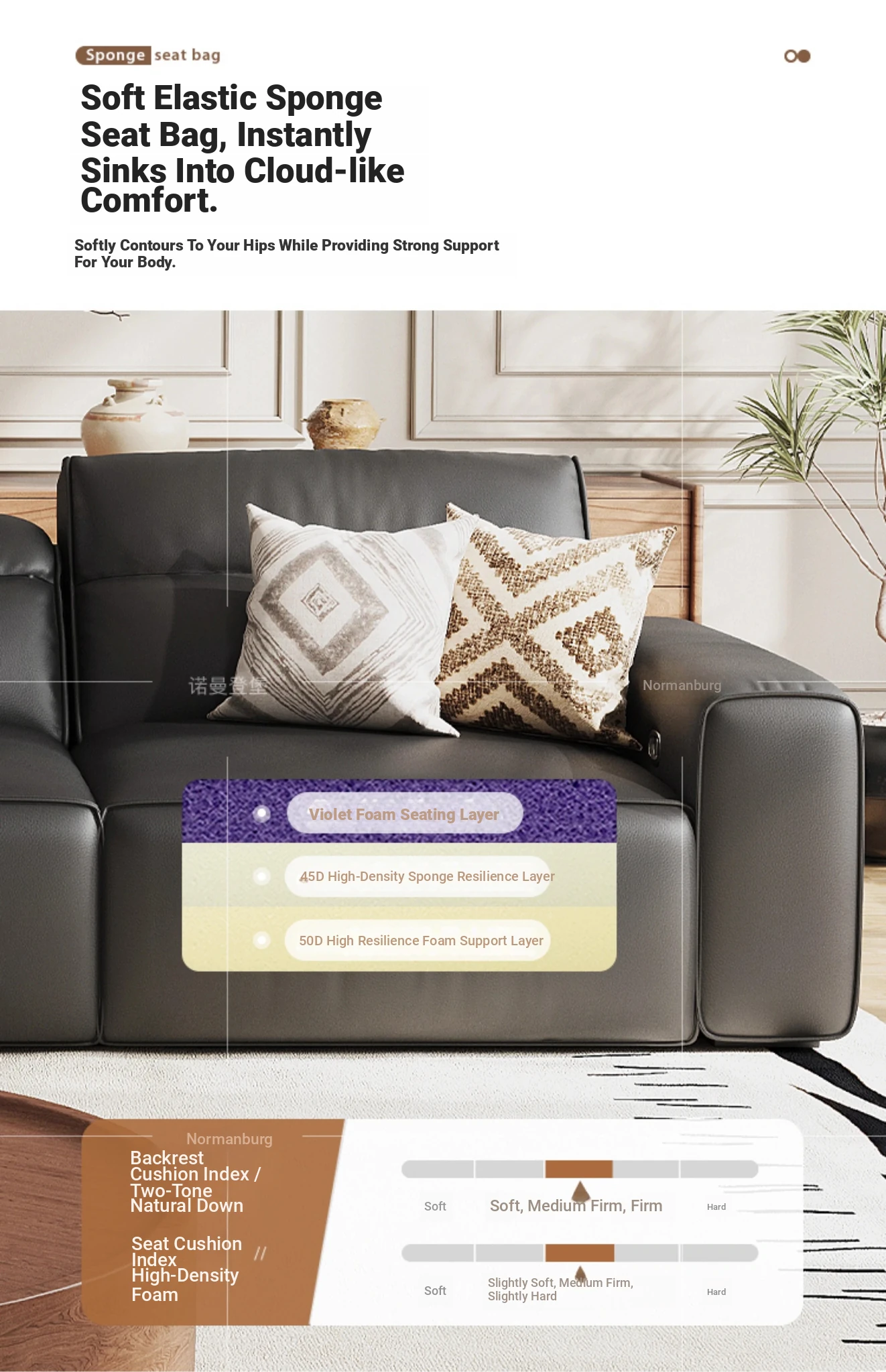 Italian Minimalist Leather Sofa with Electric Function - Luxurious Black Tofu Block Design for Your Living Room, Featuring Premium Genuine Leather and Spacious Layout for Ultimate Comfort
