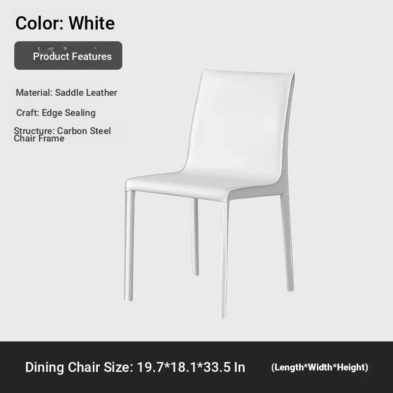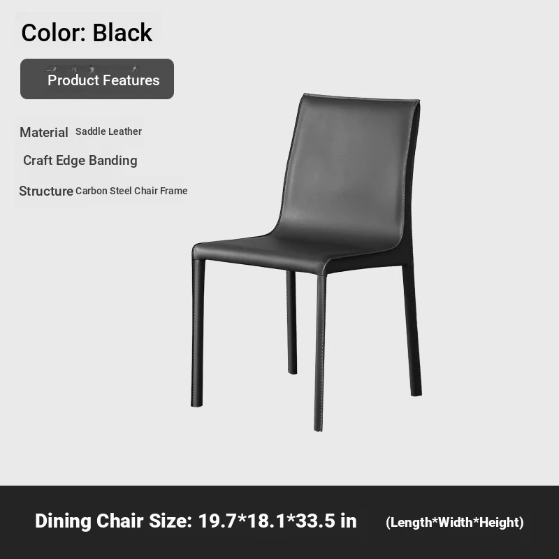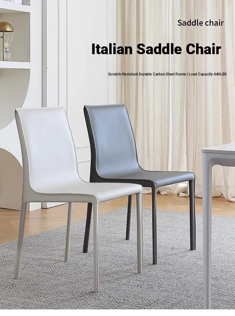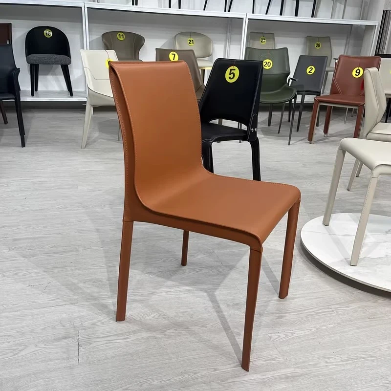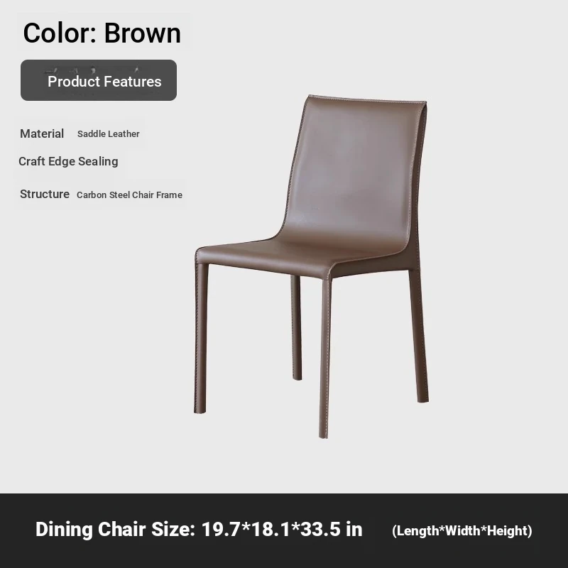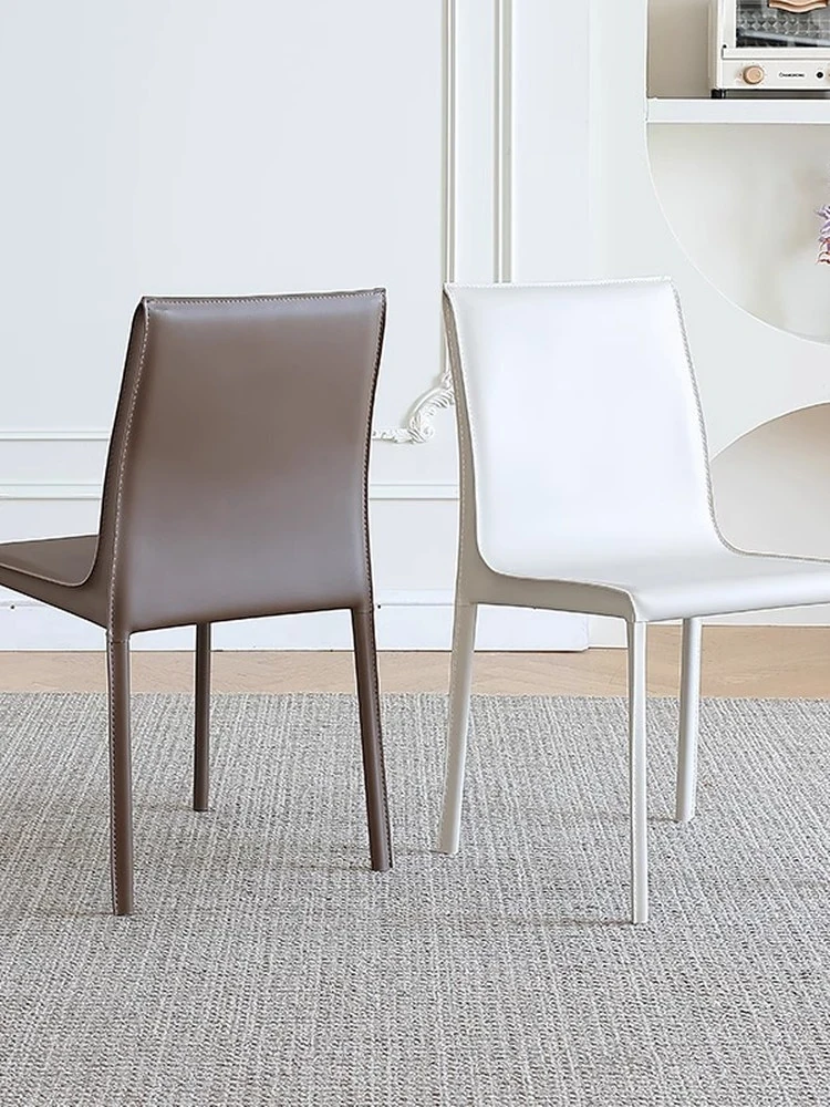 Italian Minimalist Saddle Leather Dining Chair - Stylish Home Dining & Lounge Chair with Backrest for Nordic-Inspired Interiors - Perfect for Dining Rooms and Study Spaces