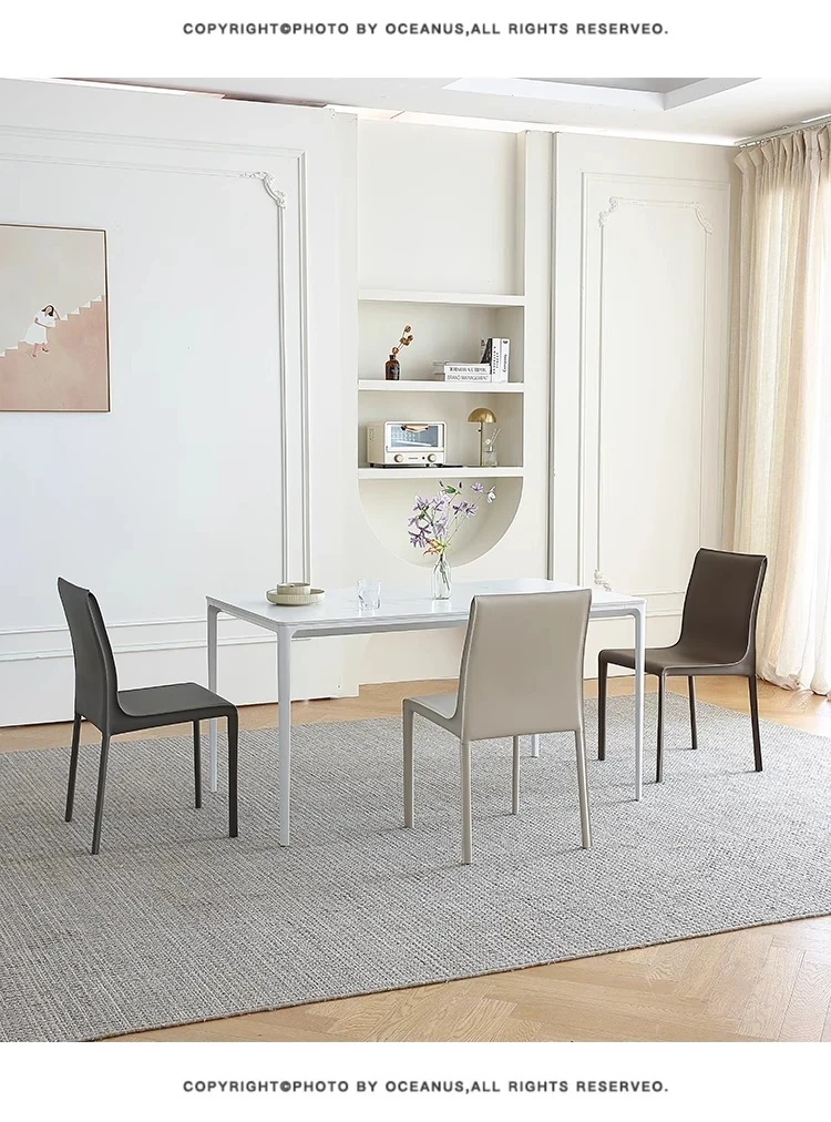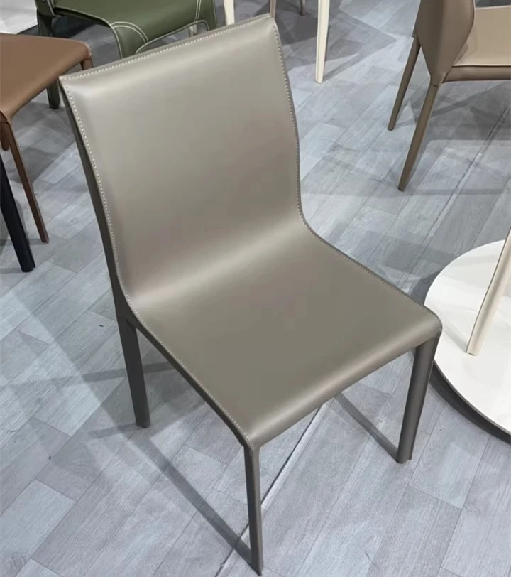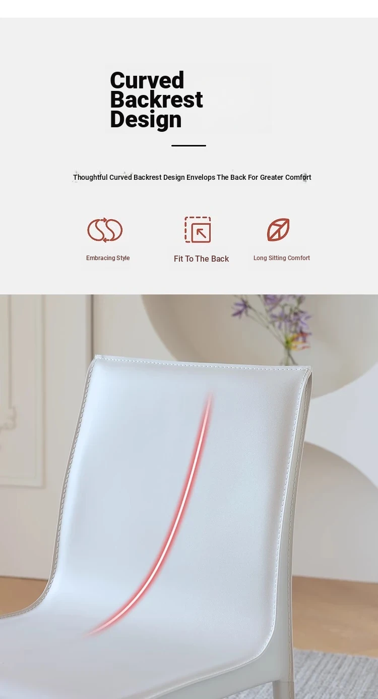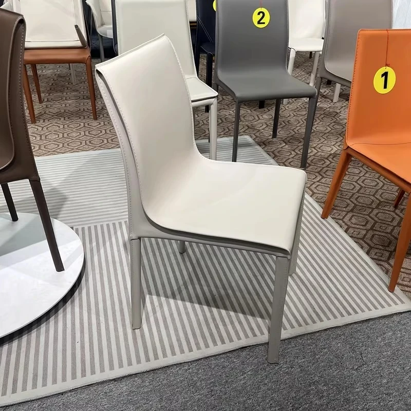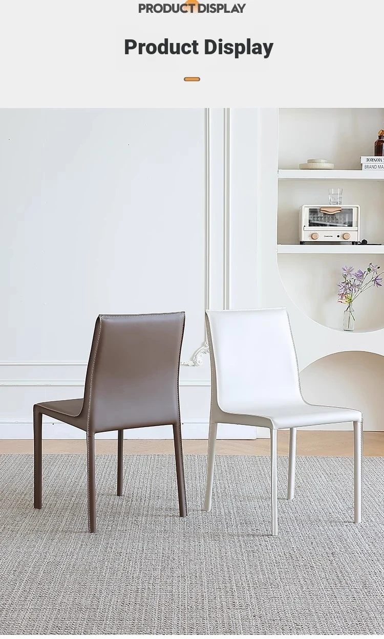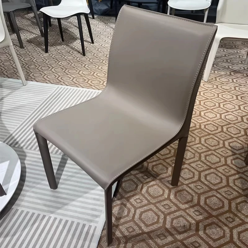 Italian Minimalist Saddle Leather Dining Chair - Stylish Home Dining & Lounge Chair with Backrest for Nordic-Inspired Interiors - Perfect for Dining Rooms and Study Spaces