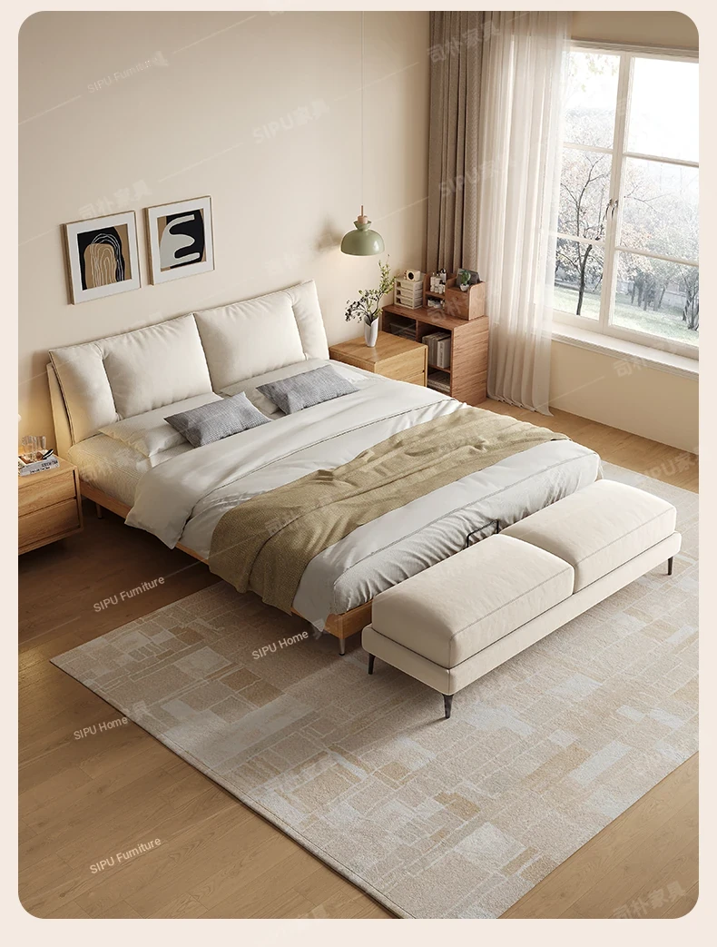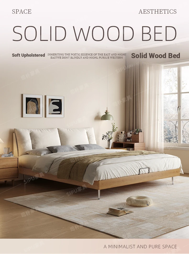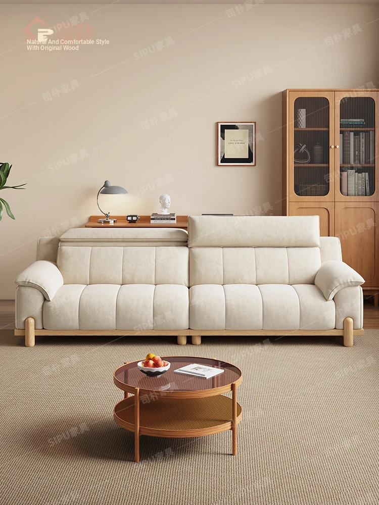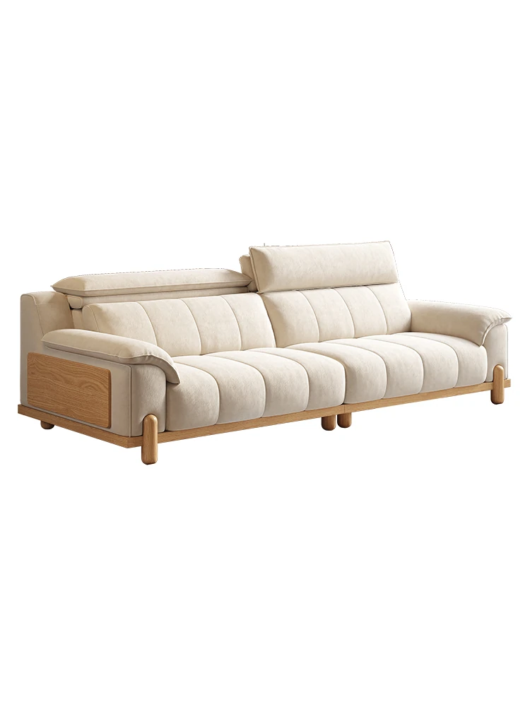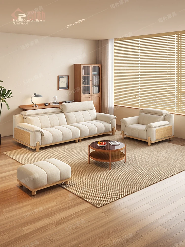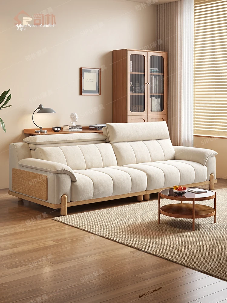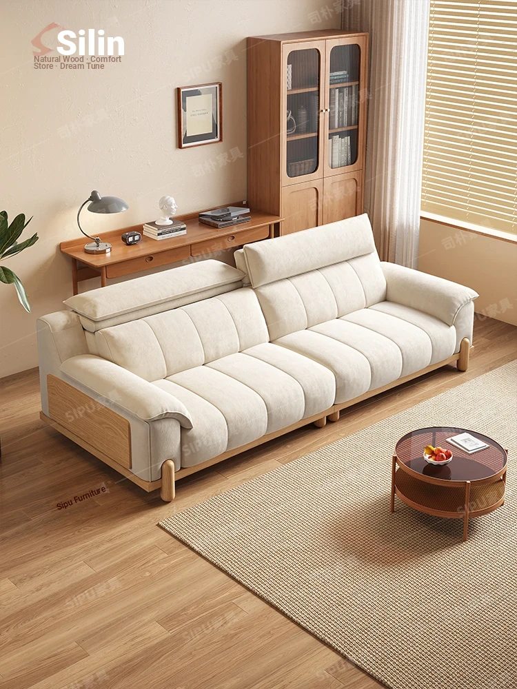 Japanese-Style Solid Wood Sofa with Cat Scratch Fabric - Three-Seat Cotton Linen Sofa in Natural Wood Grain Design, Perfect for Modern Living Spaces and Cat Lovers!