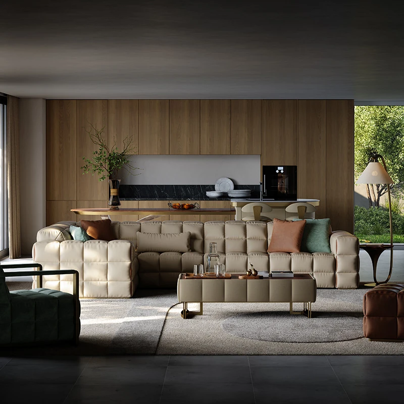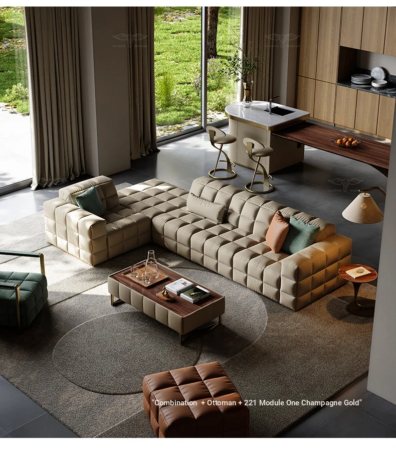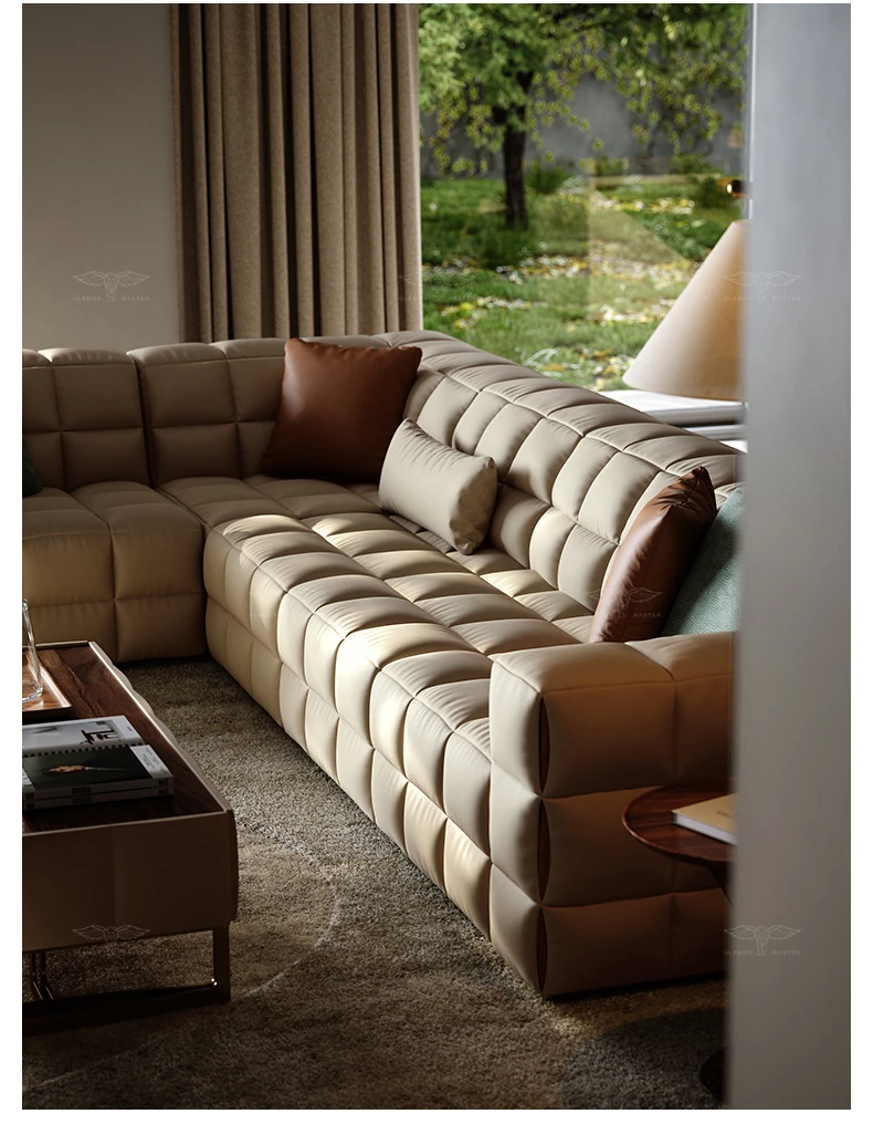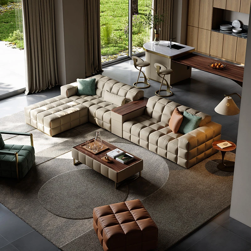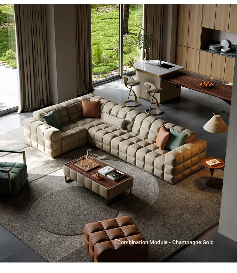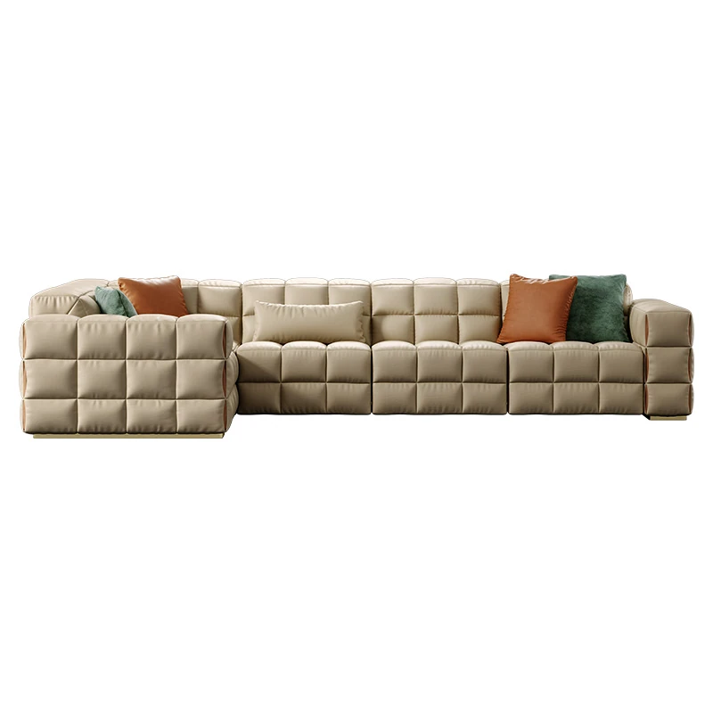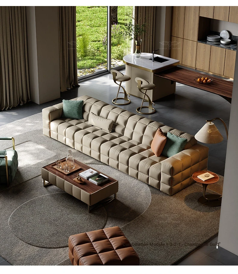 Luxurious Designer Leather Sofa Set for Spacious Villas - Stylish Modular Couch for Contemporary Living Rooms