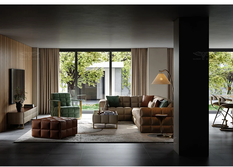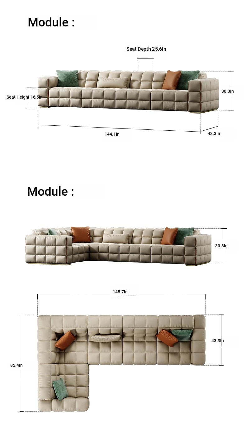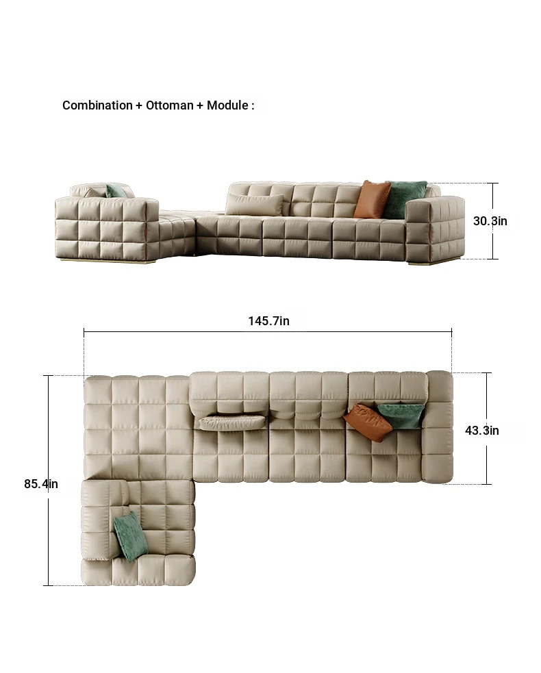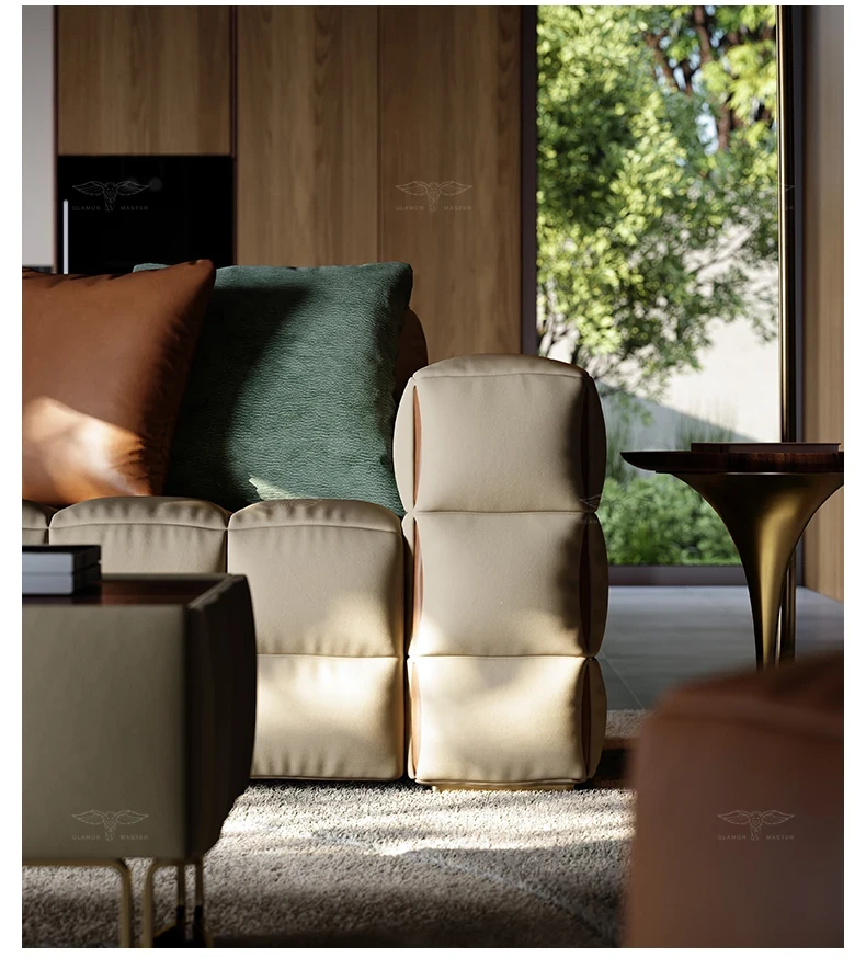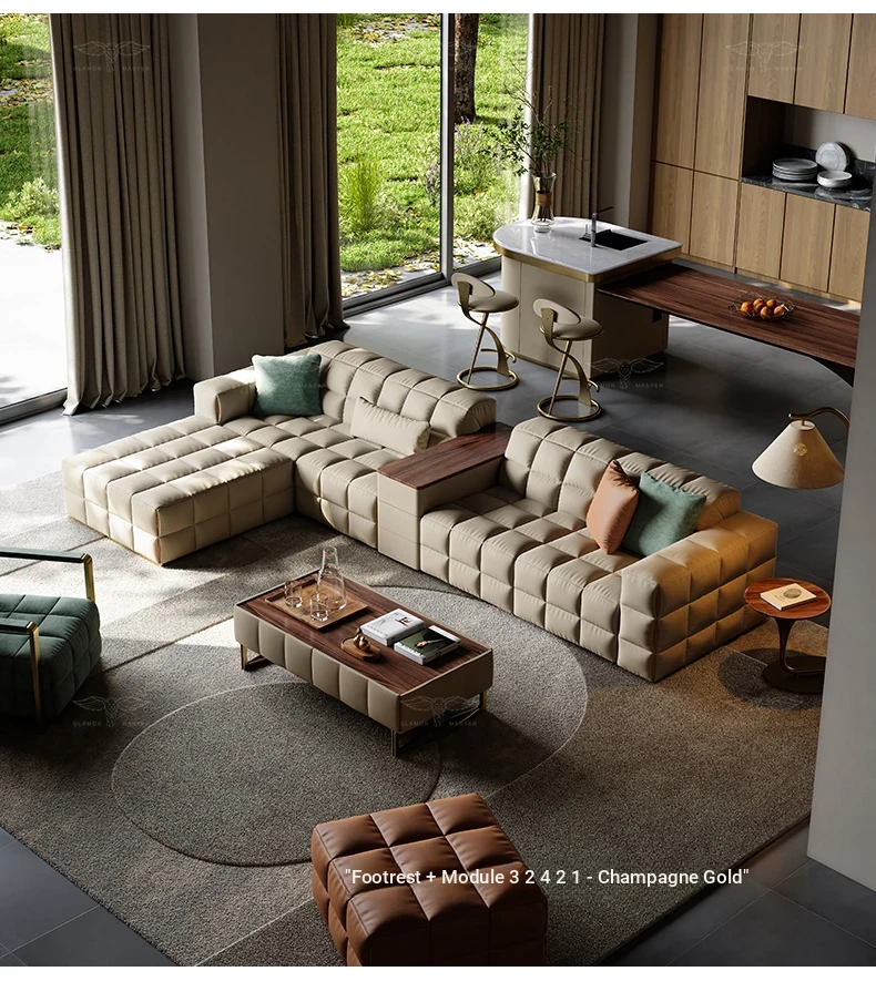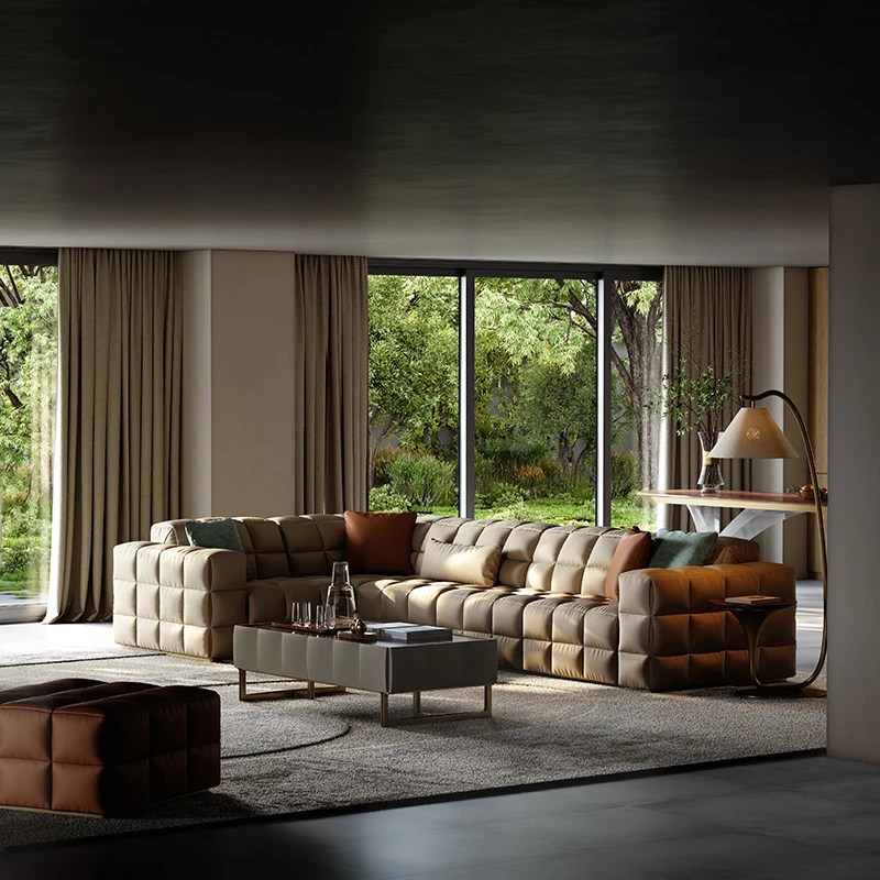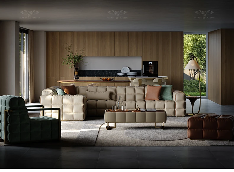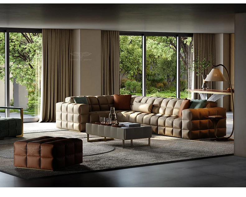 Luxurious Designer Leather Sofa Set for Spacious Villas - Stylish Modular Couch for Contemporary Living Rooms