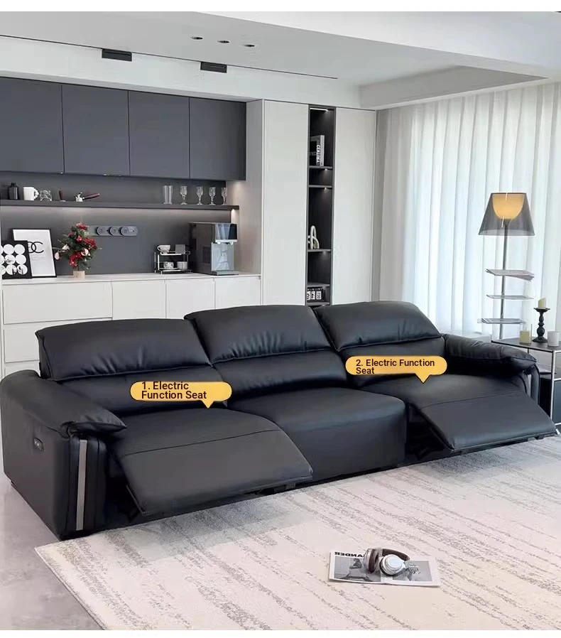 Luxury Italian Minimalist Electric Leather Sofa with Elephant Ear Design – Premium Top-Grain Cowhide for a First-Class Living Room Experience