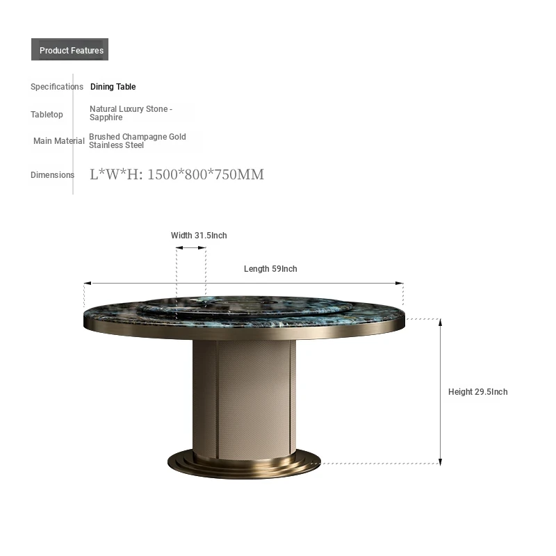 [Natural Luxury Stone Sapphire] 59.06 in Dining Table (Champagne Gold)