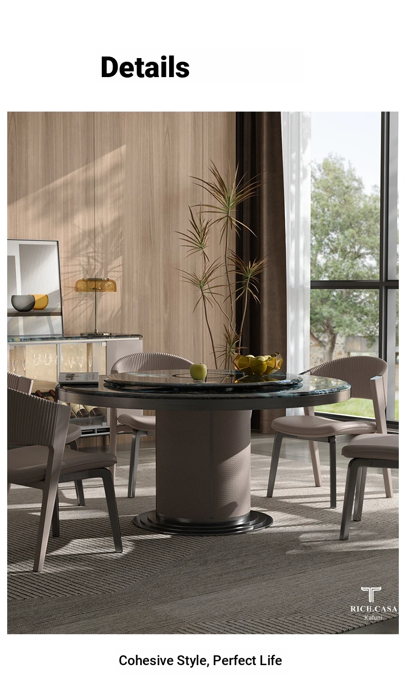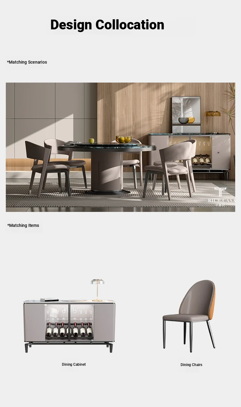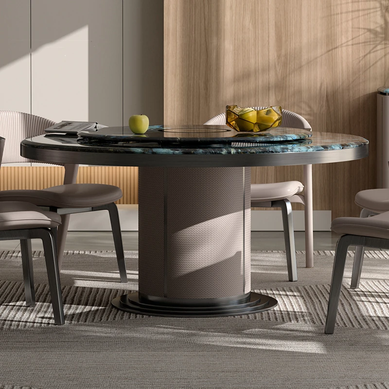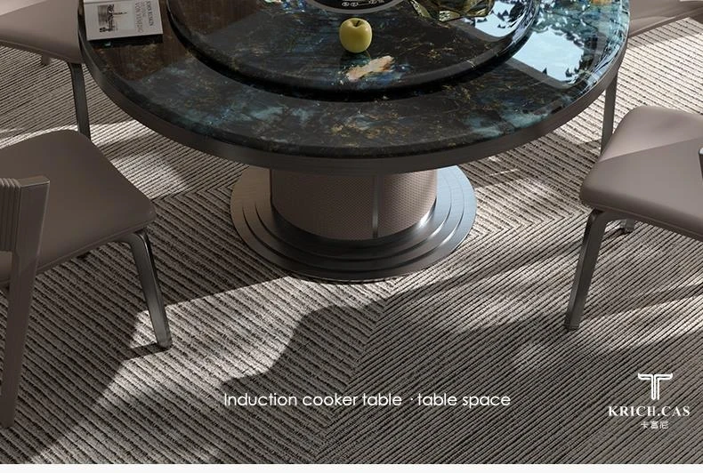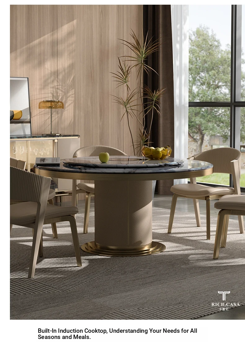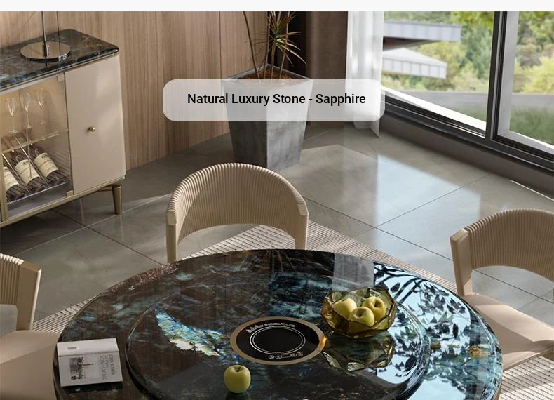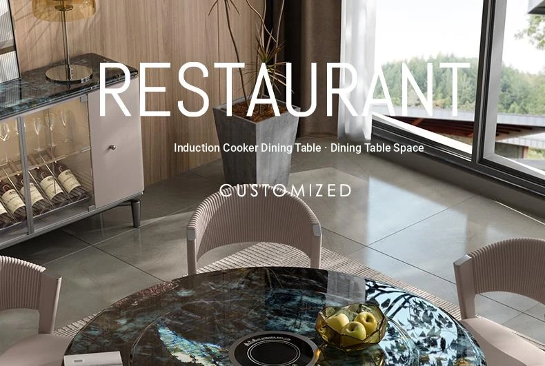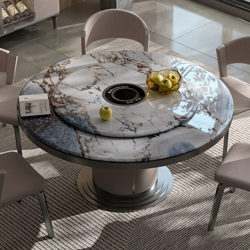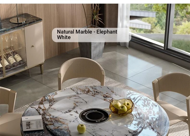 Luxury Natural Marble Dining Table and Chair Set with Rotating Electric Induction Round Table