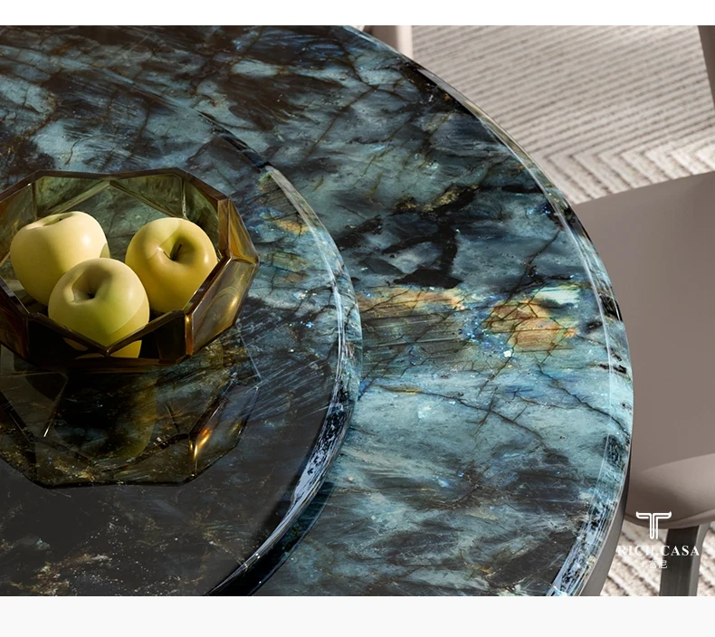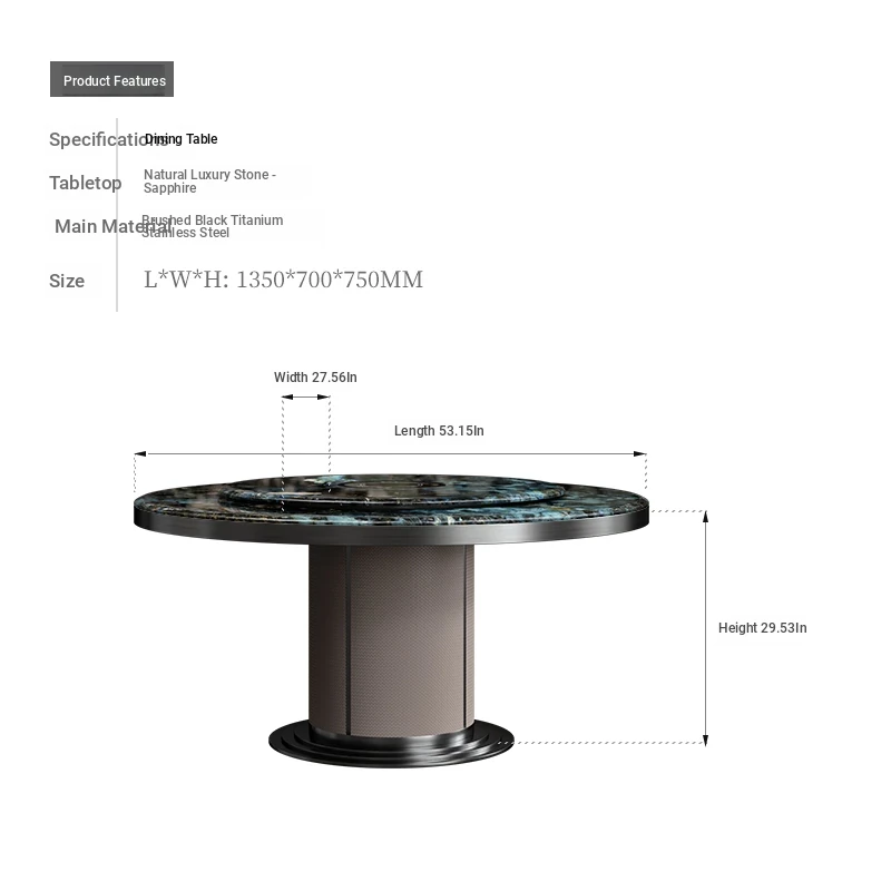 [Natural Luxury Stone Sapphire] 53.15 in Dining Table (Black Titanium Alloy)