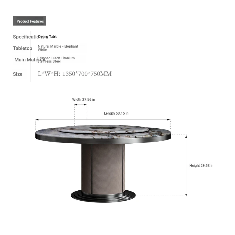 [Natural marble elephant White] 53.15 ins dining table (black titanium alloy)