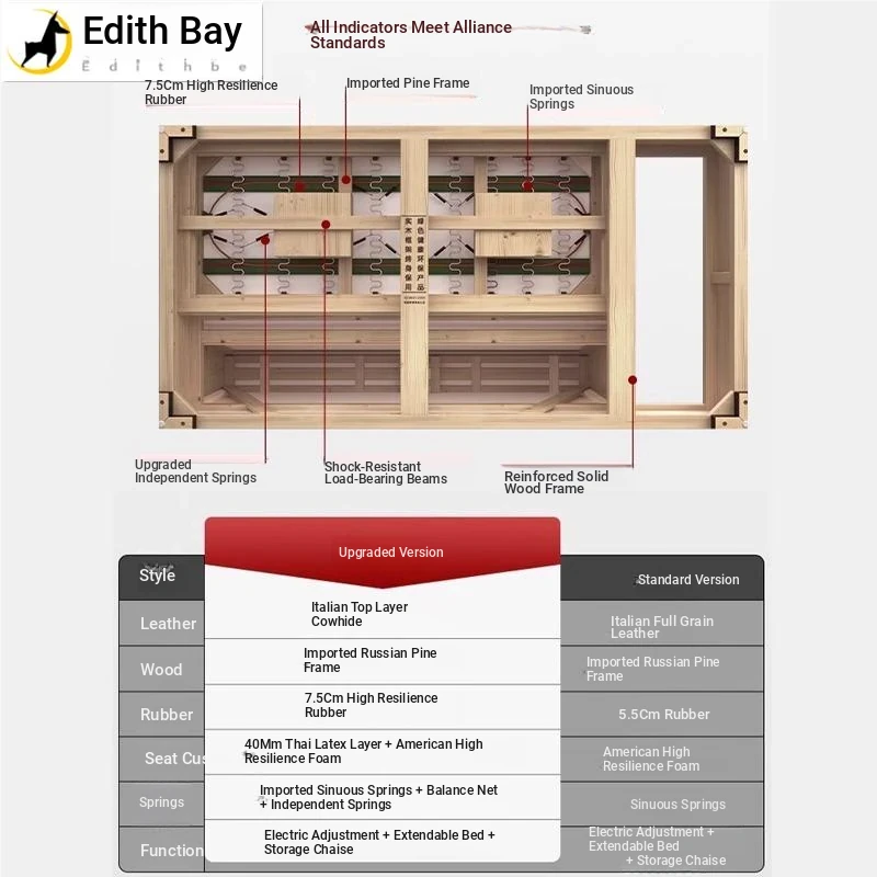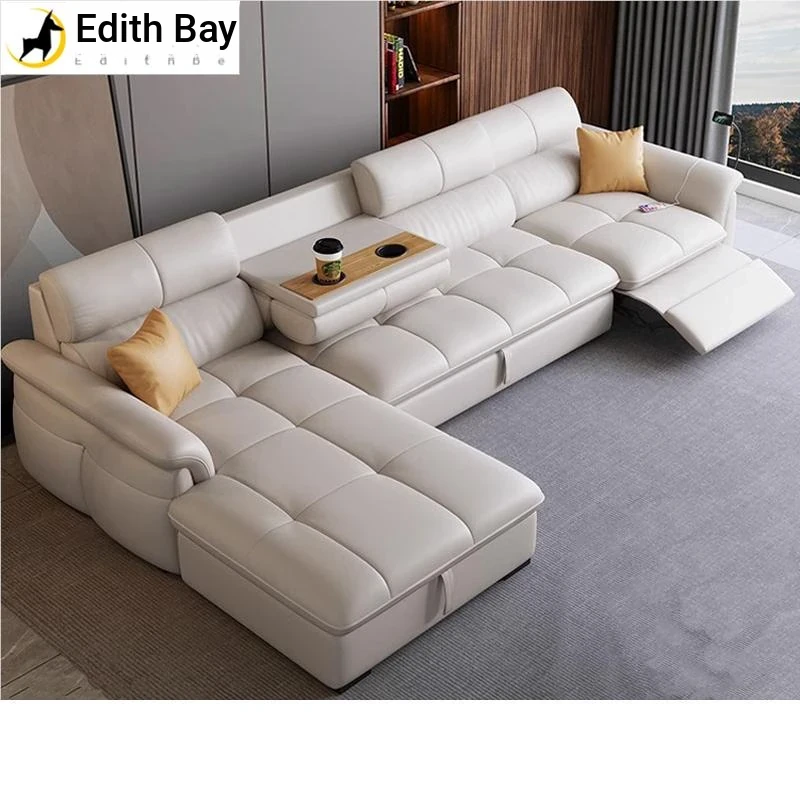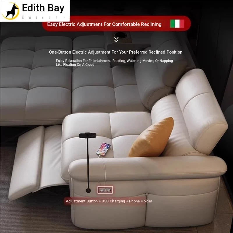 Luxury Smart Electric Chaise Lounge Sofa for Living Room - Premium Genuine Leather Home Theater Seating with Multi-Functional Features