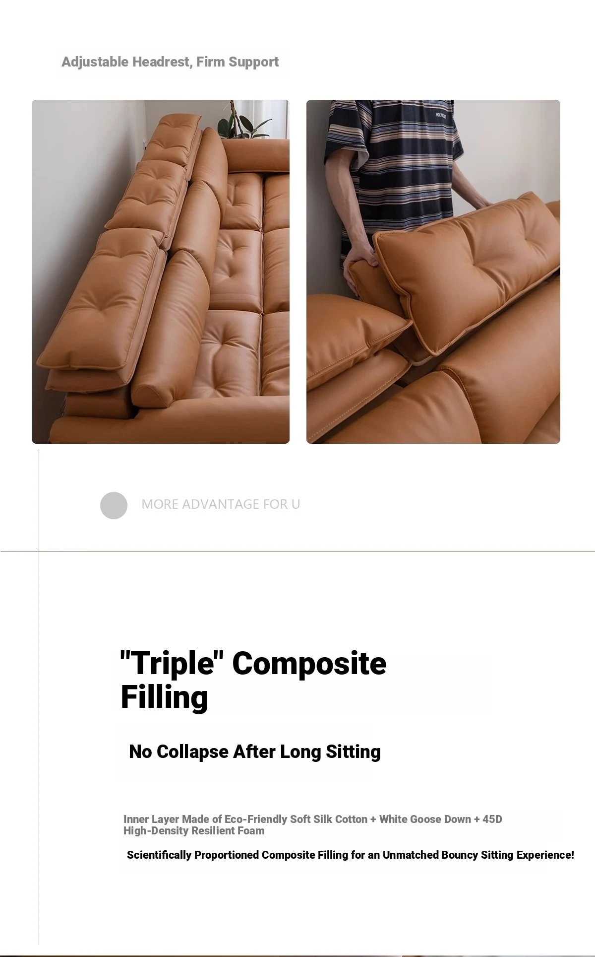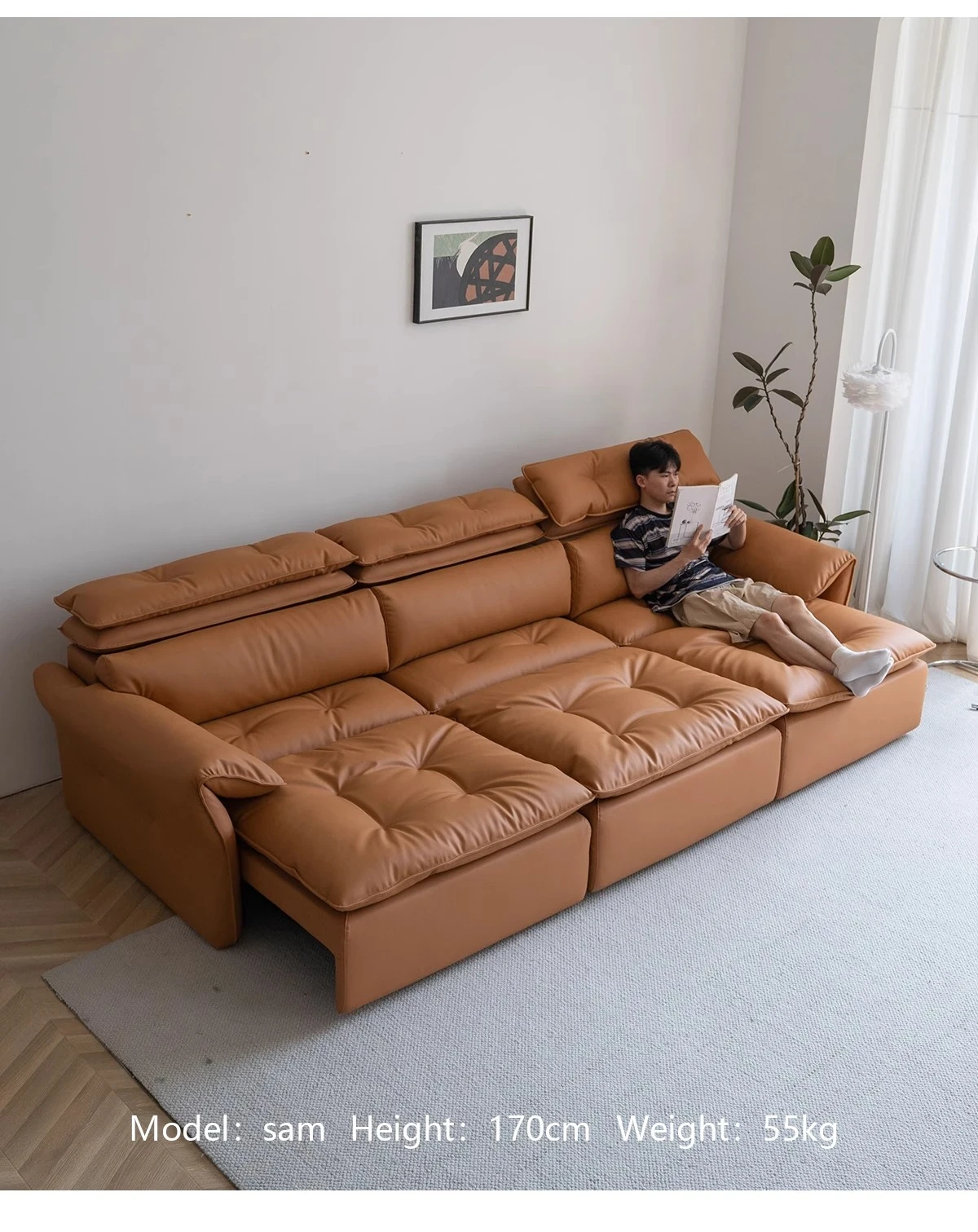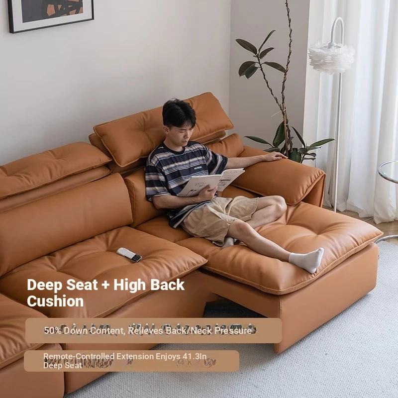 Modern Adjustable High-Back Electric Sofa with Zero Wall Clearance - Deep Seat, Stretchable Design, Crafted from Premium Top-Grain Leather for Your Living Room