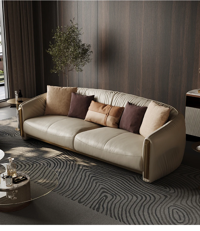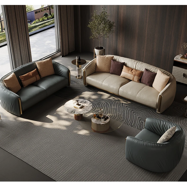 Modern Luxury Italian Leather Sofa for Villa Living Room – Stylish and Comfortable Home Sofa for Spacious Layouts