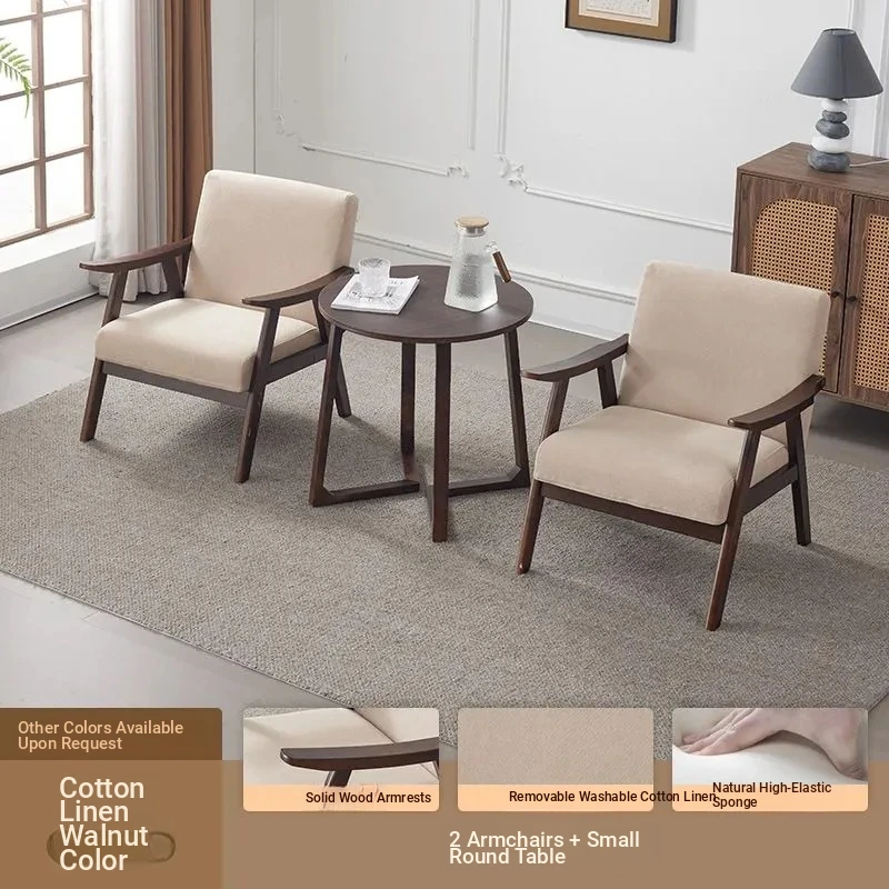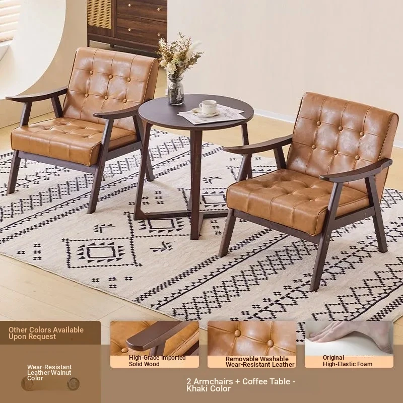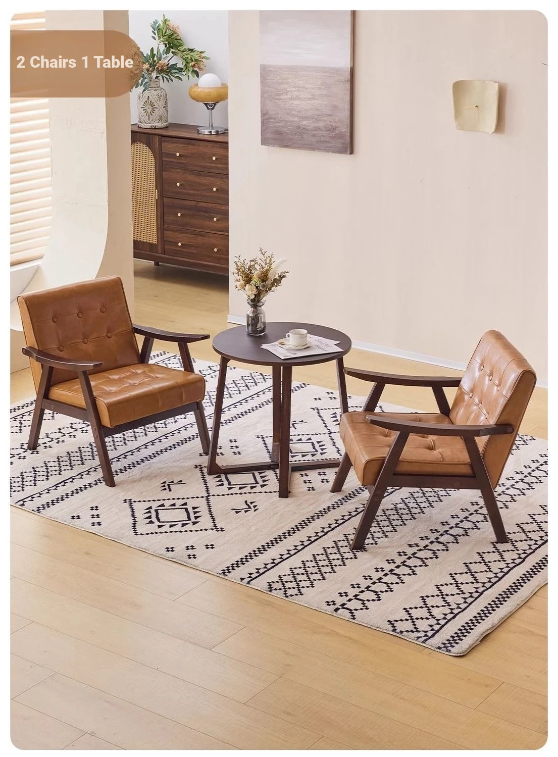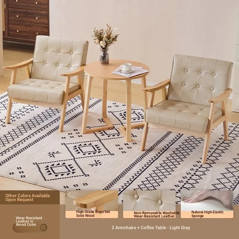 Modern Minimalist Balcony Tea Table and Chair Set - 3-Piece Solid Wood Furniture for Cozy Guest Rooms, Featuring 1 Table and 2 Stylish Chairs. Perfect for Relaxation and Enjoying Nature!