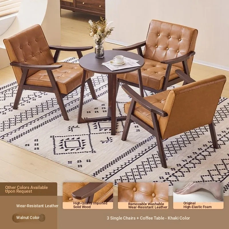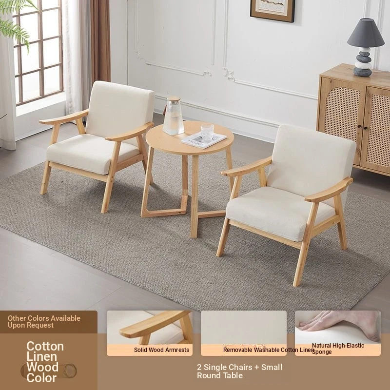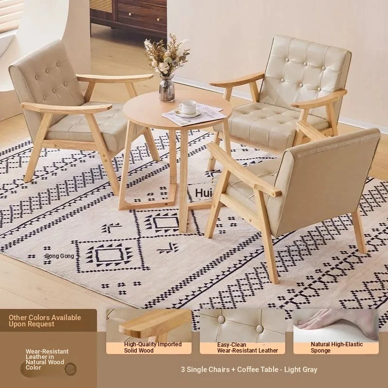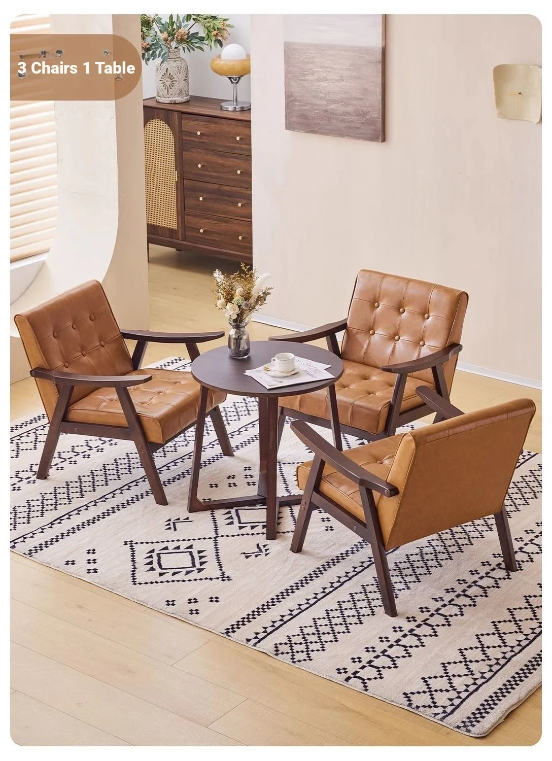 Modern Minimalist Balcony Tea Table and Chair Set - 3-Piece Solid Wood Furniture for Cozy Guest Rooms, Featuring 1 Table and 2 Stylish Chairs. Perfect for Relaxation and Enjoying Nature!